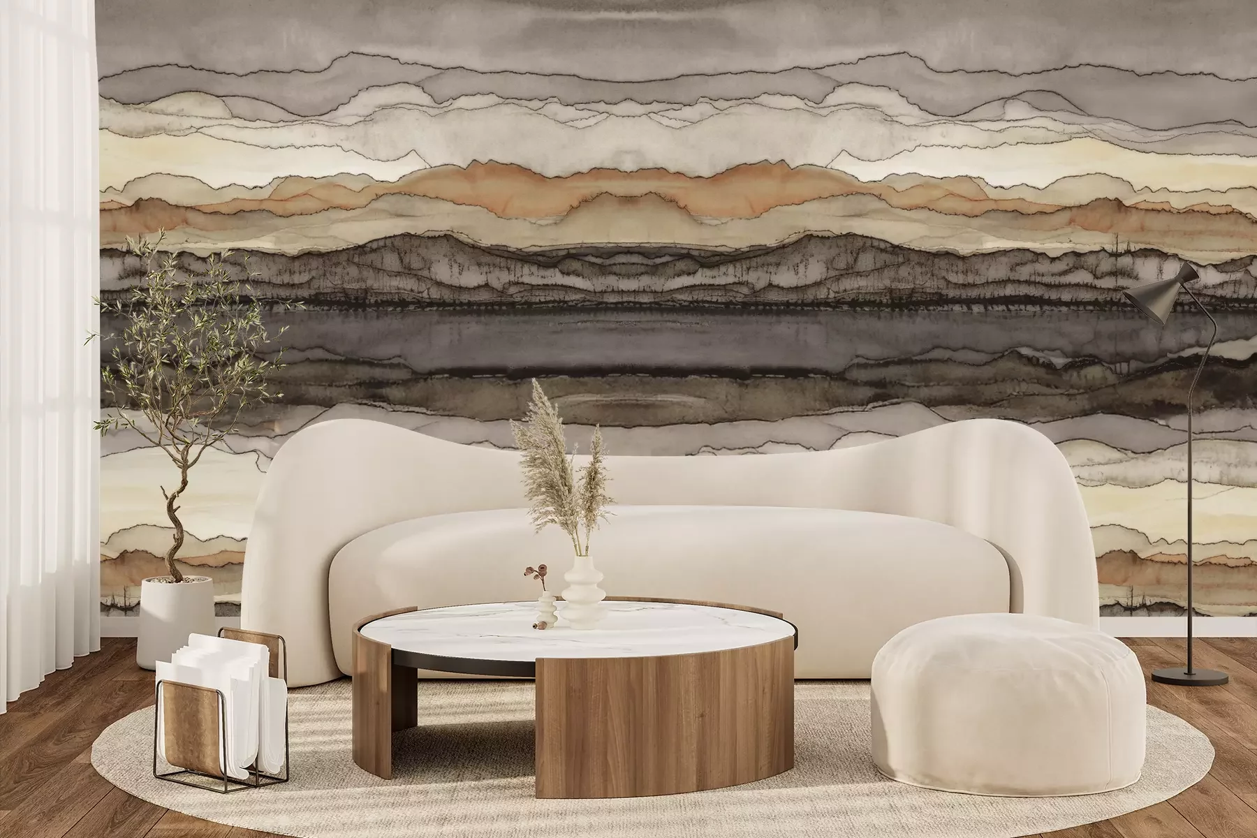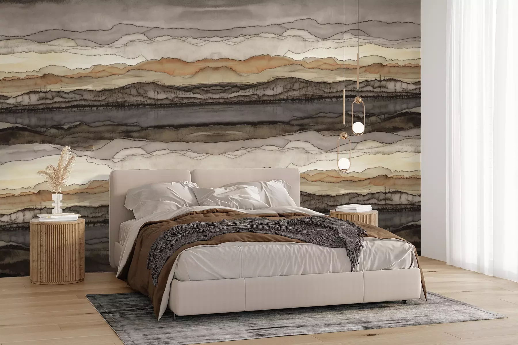Het materiaal Premium+ is een gestructureerd vinyl op vlies met een gewicht van 255 g/m², dat kleine oneffenheden in de muur effectief camoufleert. De subtiele structuur van fijn zand geeft het oppervlak een exclusieve uitstraling, terwijl de halfmatte afwerking de diepte van de kleuren benadrukt. Het materiaal is dampdoorlatend, waardoor het ook in de keuken en badkamer kan worden gebruikt. De maximale breedte van één baan bedraagt 100 cm – bij grotere afmetingen wordt het fotobehang in meerdere gelijke banen verdeeld. De lijm wordt direct op de muur aangebracht en het behang wordt rand-aan-rand geplakt, wat zorgt voor een esthetisch resultaat zonder zichtbare naden. Het oppervlak kan gemakkelijk worden schoongemaakt door het voorzichtig af te nemen met een vochtige doek.