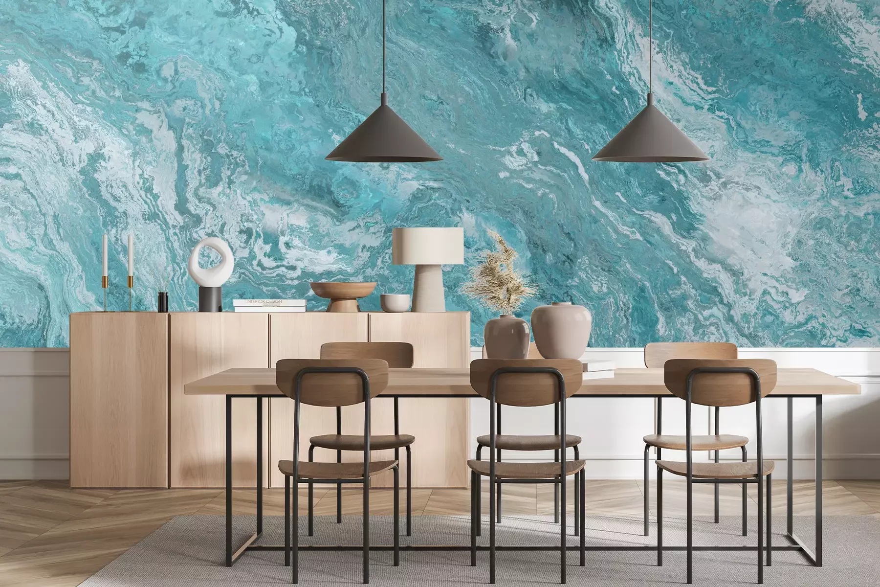 Het materiaal Premium+ is een gestructureerd vinyl op vlies met een gewicht van 255 g/m², dat kleine oneffenheden in de muur effectief camoufleert. De subtiele structuur van fijn zand geeft het oppervlak een exclusieve uitstraling, terwijl de halfmatte afwerking de diepte van de kleuren benadrukt. Het materiaal is dampdoorlatend, waardoor het ook in de keuken en badkamer kan worden gebruikt. De maximale breedte van één baan bedraagt 100 cm – bij grotere afmetingen wordt het fotobehang in meerdere gelijke banen verdeeld. De lijm wordt direct op de muur aangebracht en het behang wordt rand-aan-rand geplakt, wat zorgt voor een esthetisch resultaat zonder zichtbare naden. Het oppervlak kan gemakkelijk worden schoongemaakt door het voorzichtig af te nemen met een vochtige doek.