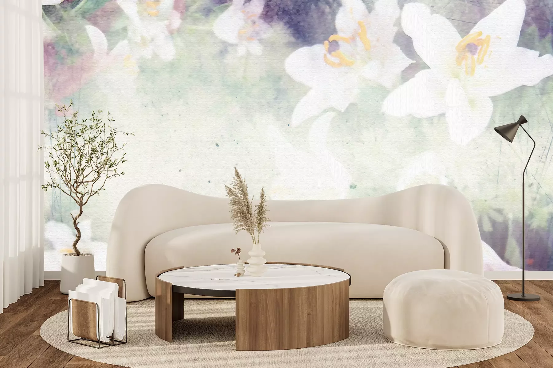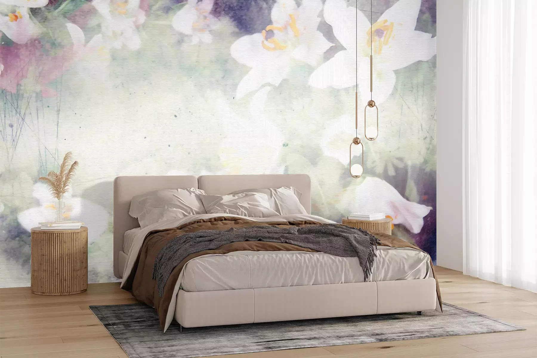Het materiaal Premium+ is een gestructureerd vinyl op vlies met een gewicht van 255 g/m², dat kleine oneffenheden in de muur effectief camoufleert. De subtiele structuur van fijn zand geeft het oppervlak een exclusieve uitstraling, terwijl de halfmatte afwerking de diepte van de kleuren benadrukt. Het materiaal is dampdoorlatend, waardoor het ook in de keuken en badkamer kan worden gebruikt. De maximale breedte van één baan bedraagt 100 cm – bij grotere afmetingen wordt het fotobehang in meerdere gelijke banen verdeeld. De lijm wordt direct op de muur aangebracht en het behang wordt rand-aan-rand geplakt, wat zorgt voor een esthetisch resultaat zonder zichtbare naden. Het oppervlak kan gemakkelijk worden schoongemaakt door het voorzichtig af te nemen met een vochtige doek.
