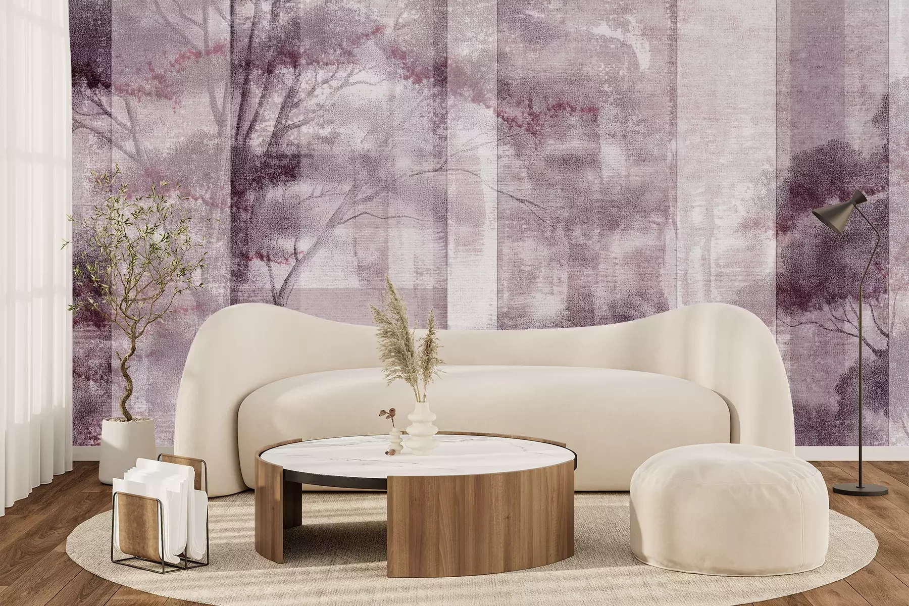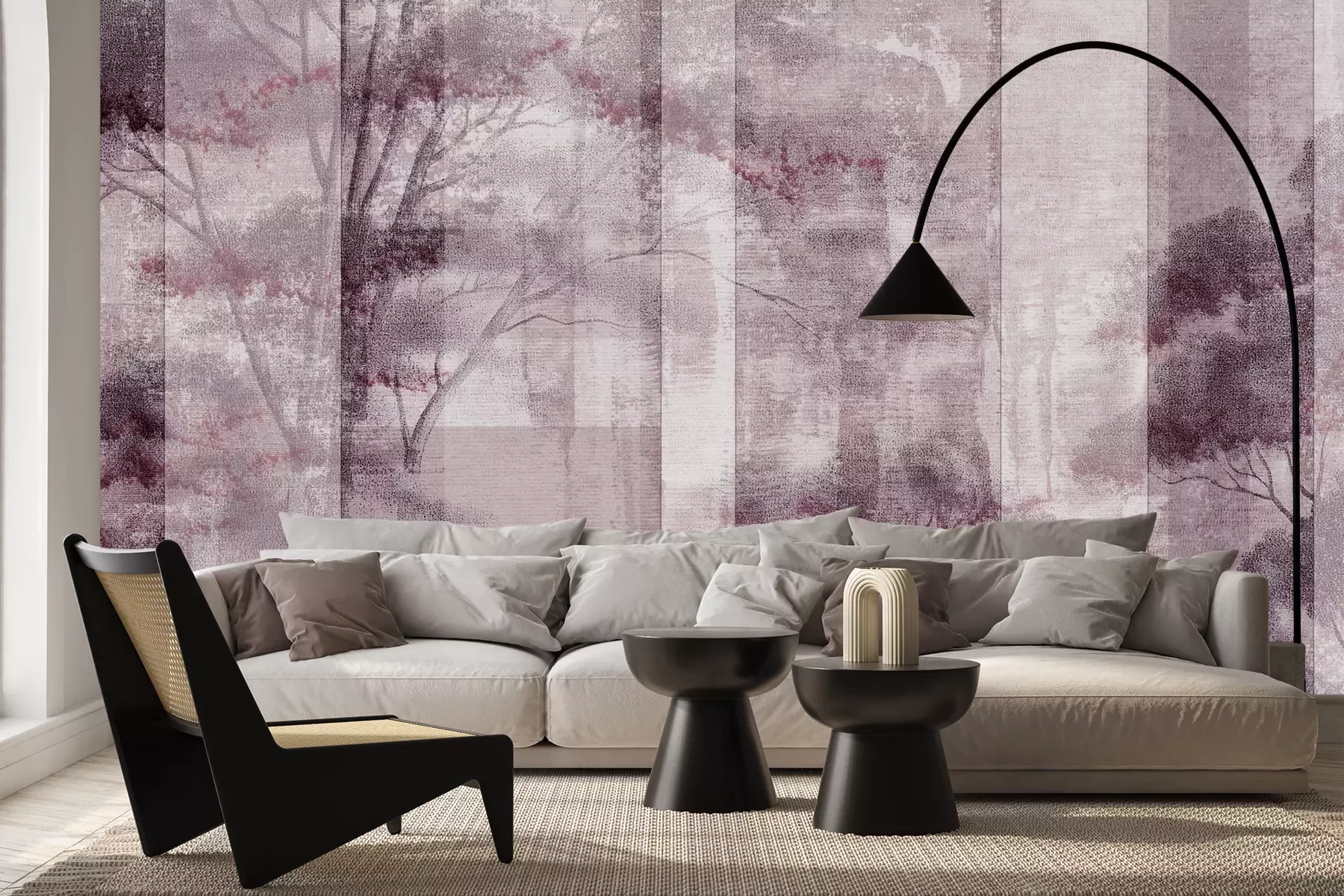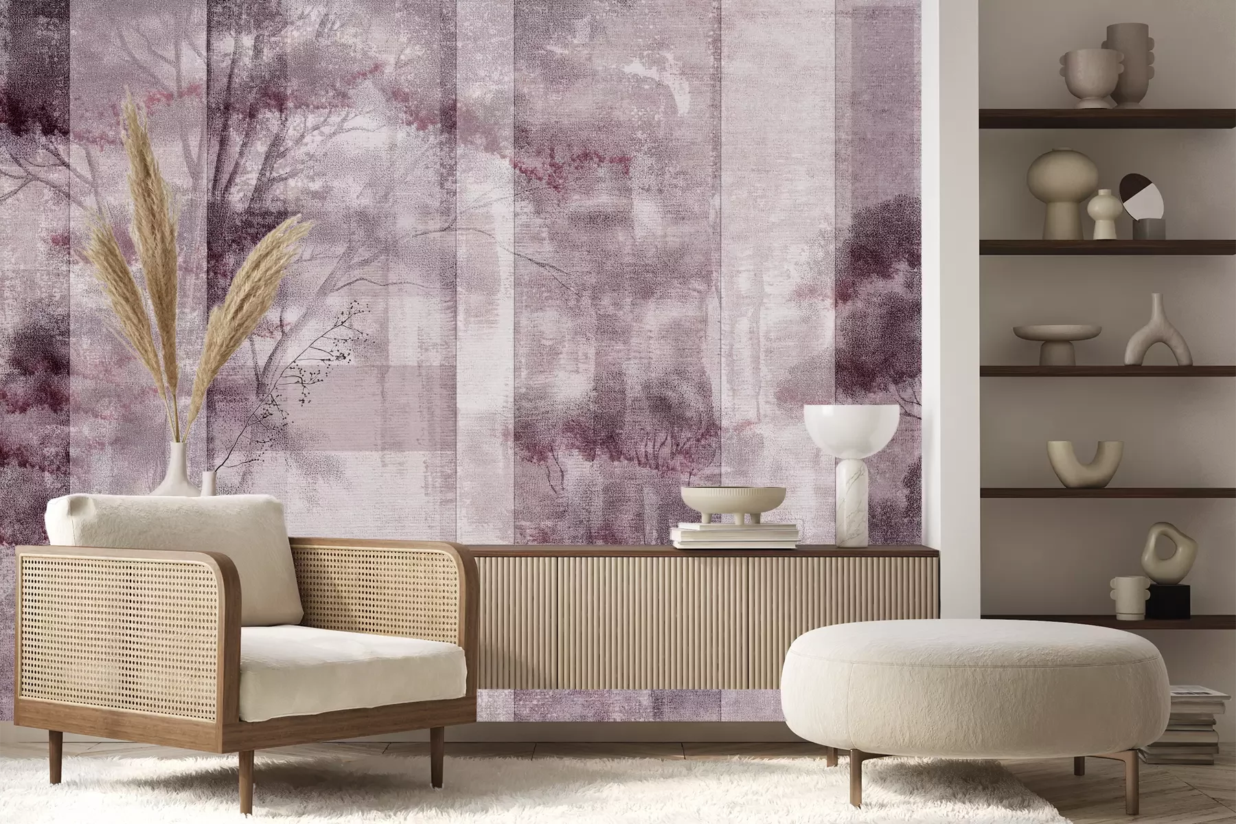 Het materiaal Premium+ is een gestructureerd vinyl op vlies met een gewicht van 255 g/m², dat kleine oneffenheden in de muur effectief camoufleert. De subtiele structuur van fijn zand geeft het oppervlak een exclusieve uitstraling, terwijl de halfmatte afwerking de diepte van de kleuren benadrukt. Het materiaal is dampdoorlatend, waardoor het ook in de keuken en badkamer kan worden gebruikt. De maximale breedte van één baan bedraagt 100 cm – bij grotere afmetingen wordt het fotobehang in meerdere gelijke banen verdeeld. De lijm wordt direct op de muur aangebracht en het behang wordt rand-aan-rand geplakt, wat zorgt voor een esthetisch resultaat zonder zichtbare naden. Het oppervlak kan gemakkelijk worden schoongemaakt door het voorzichtig af te nemen met een vochtige doek.