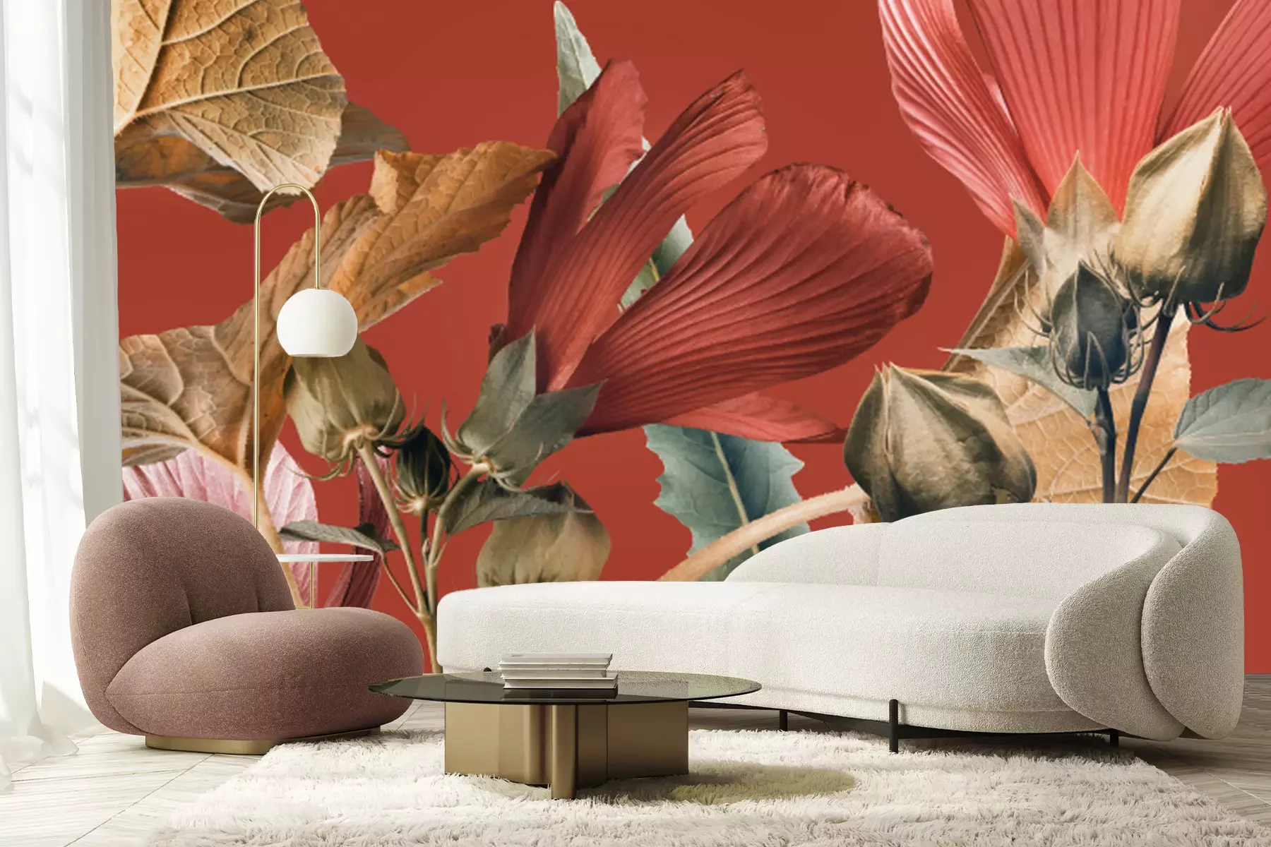 Fotobehang Abstracte compositie met rode bloemen