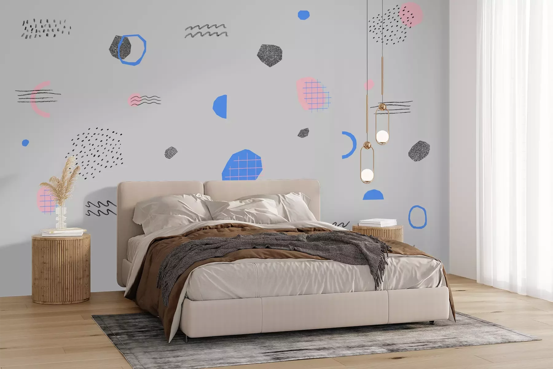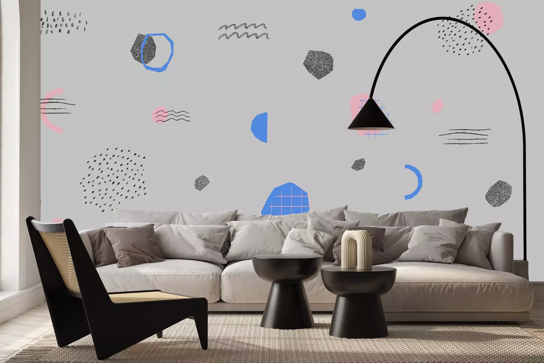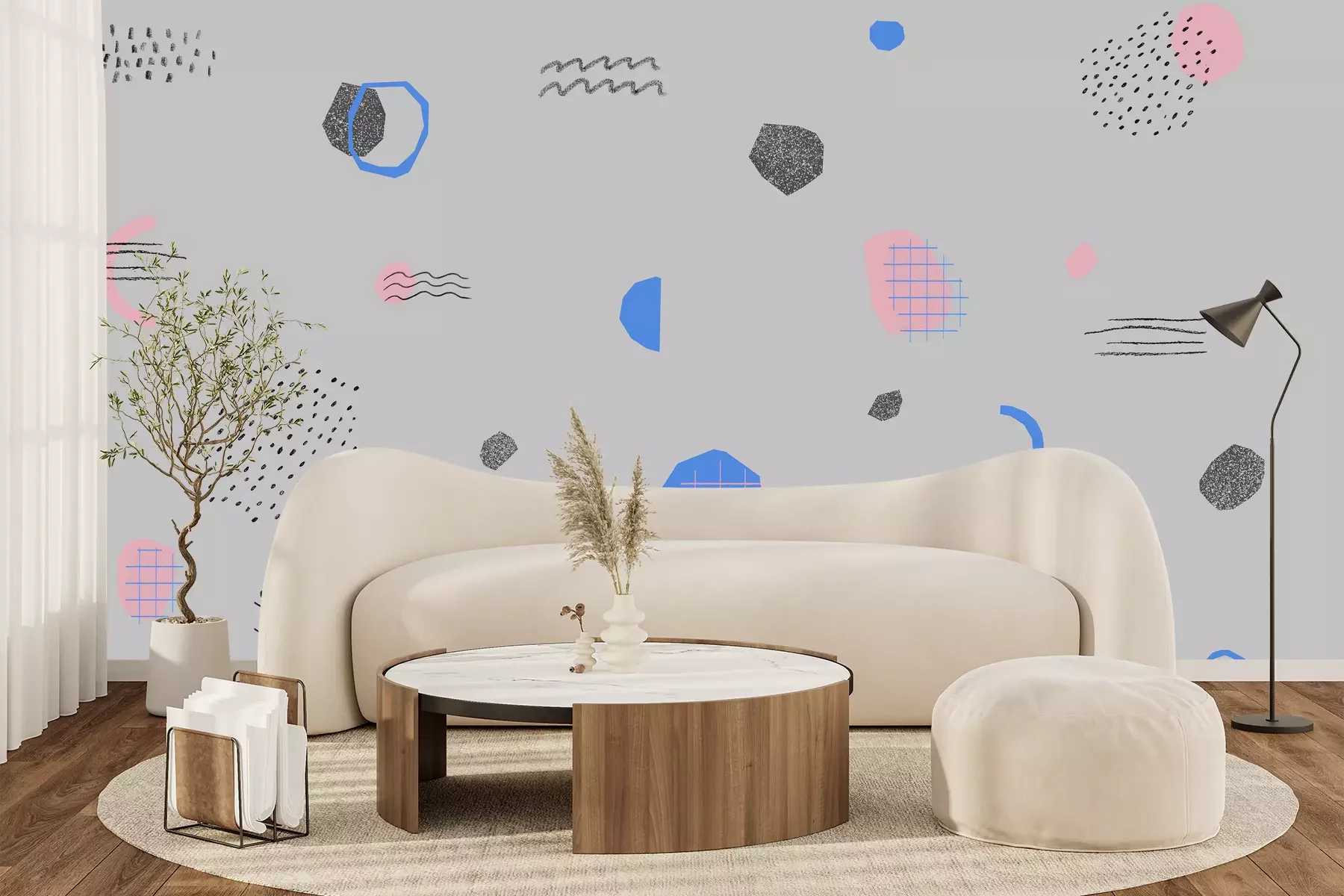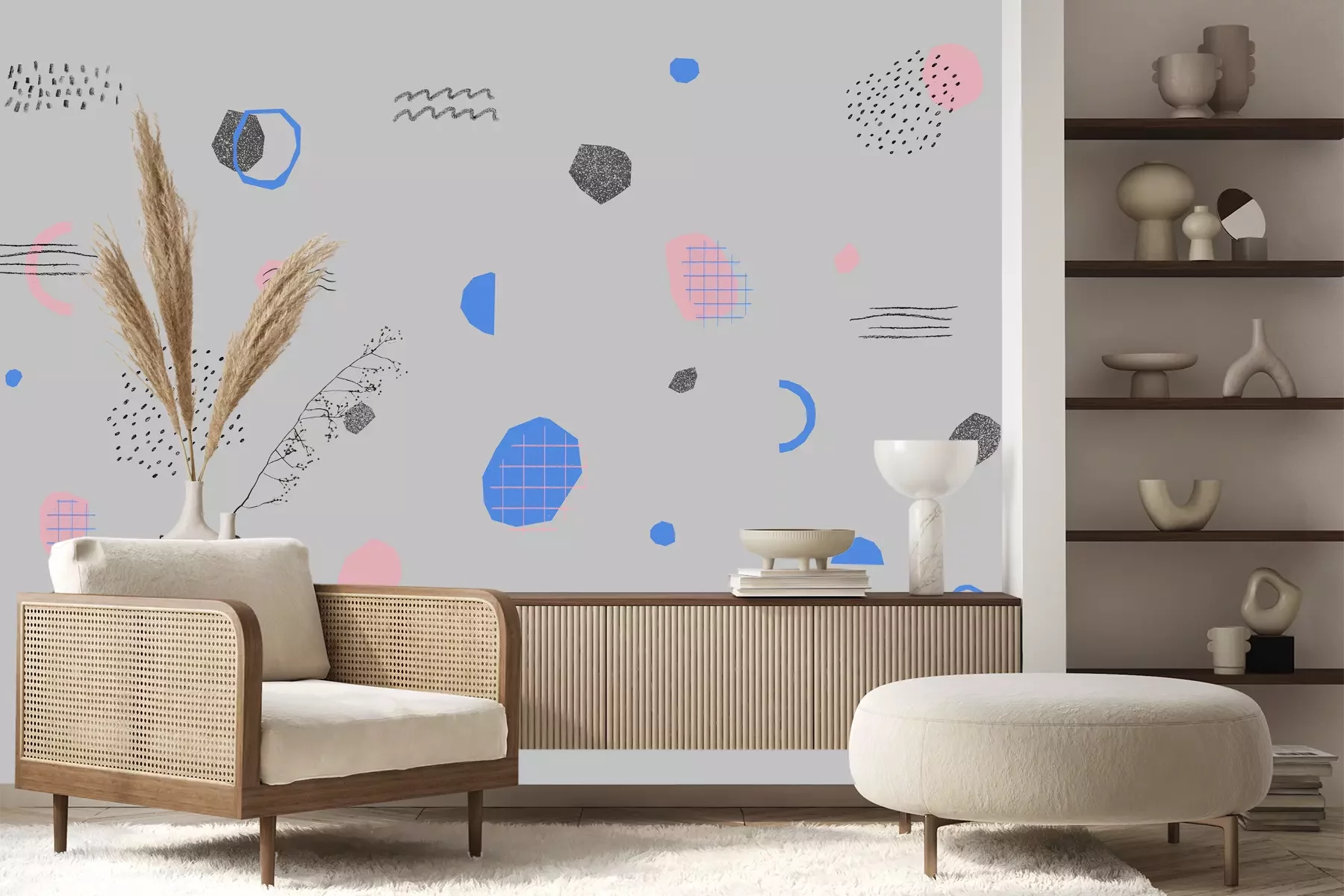 Abstracte compositie op grijze achtergrond