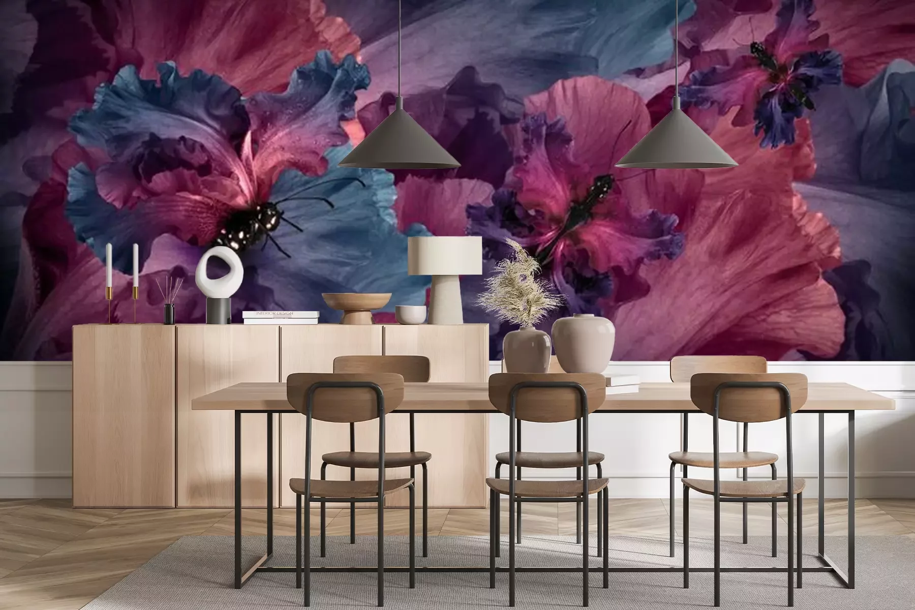 Het materiaal Standard is een hoogwaardig latexmateriaal met een glad, mat oppervlak. Dankzij de HP Latex-printtechnologie zijn de kleuren intens, duurzaam en UV-bestendig, waardoor het patroon jarenlang een onberispelijke uitstraling behoudt. Vervuilde oppervlakken kunnen voorzichtig worden afgeveegd met een droge doek. De maximale breedte van één baan bedraagt 95 cm of 105 cm – afhankelijk van de bestelde fotobehangbreedte. Bij grotere afmetingen wordt het patroon verdeeld over meerdere gelijkmatige banen. Het fotobehang wordt rand-aan-randaangebracht, wat vrijwel onzichtbare naden mogelijk maakt.
