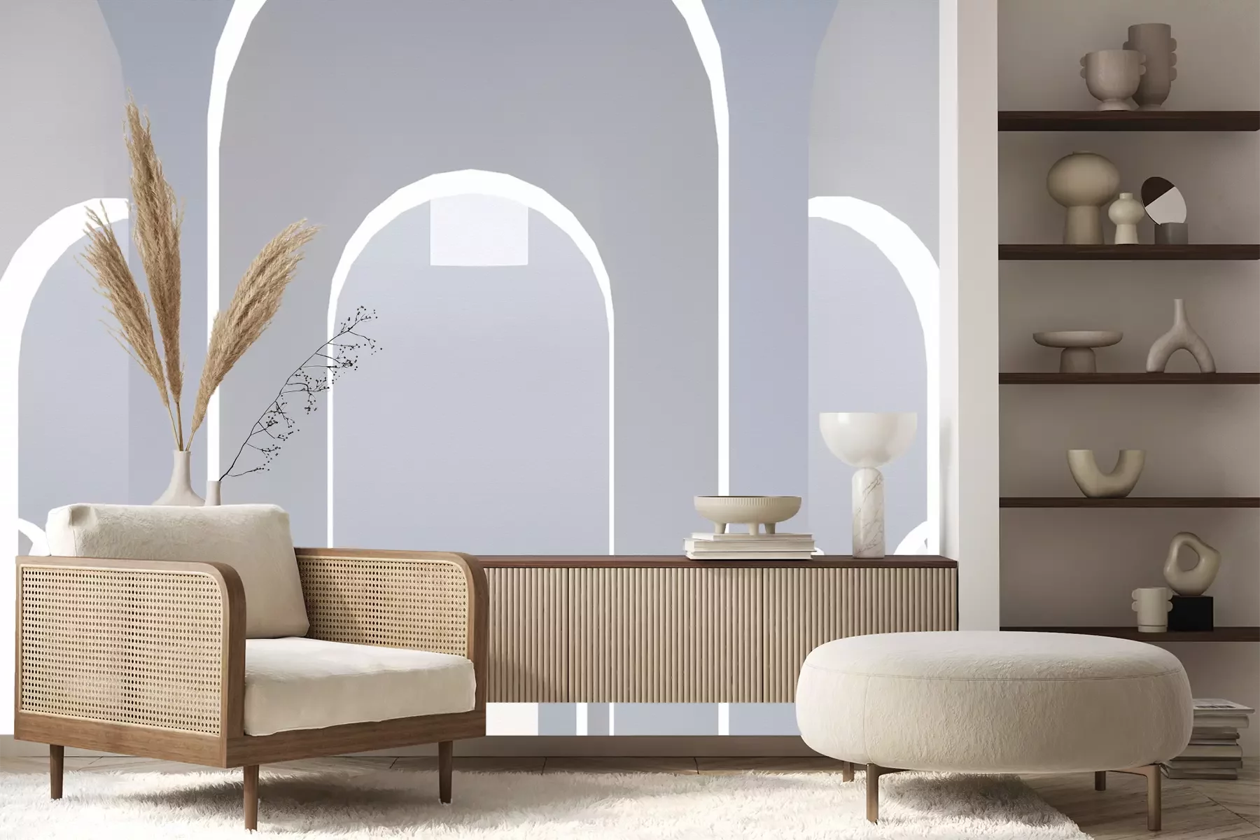 Het materiaal Premium+ is een gestructureerd vinyl op vlies met een gewicht van 255 g/m², dat kleine oneffenheden in de muur effectief camoufleert. De subtiele structuur van fijn zand geeft het oppervlak een exclusieve uitstraling, terwijl de halfmatte afwerking de diepte van de kleuren benadrukt. Het materiaal is dampdoorlatend, waardoor het ook in de keuken en badkamer kan worden gebruikt. De maximale breedte van één baan bedraagt 100 cm – bij grotere afmetingen wordt het fotobehang in meerdere gelijke banen verdeeld. De lijm wordt direct op de muur aangebracht en het behang wordt rand-aan-rand geplakt, wat zorgt voor een esthetisch resultaat zonder zichtbare naden. Het oppervlak kan gemakkelijk worden schoongemaakt door het voorzichtig af te nemen met een vochtige doek.