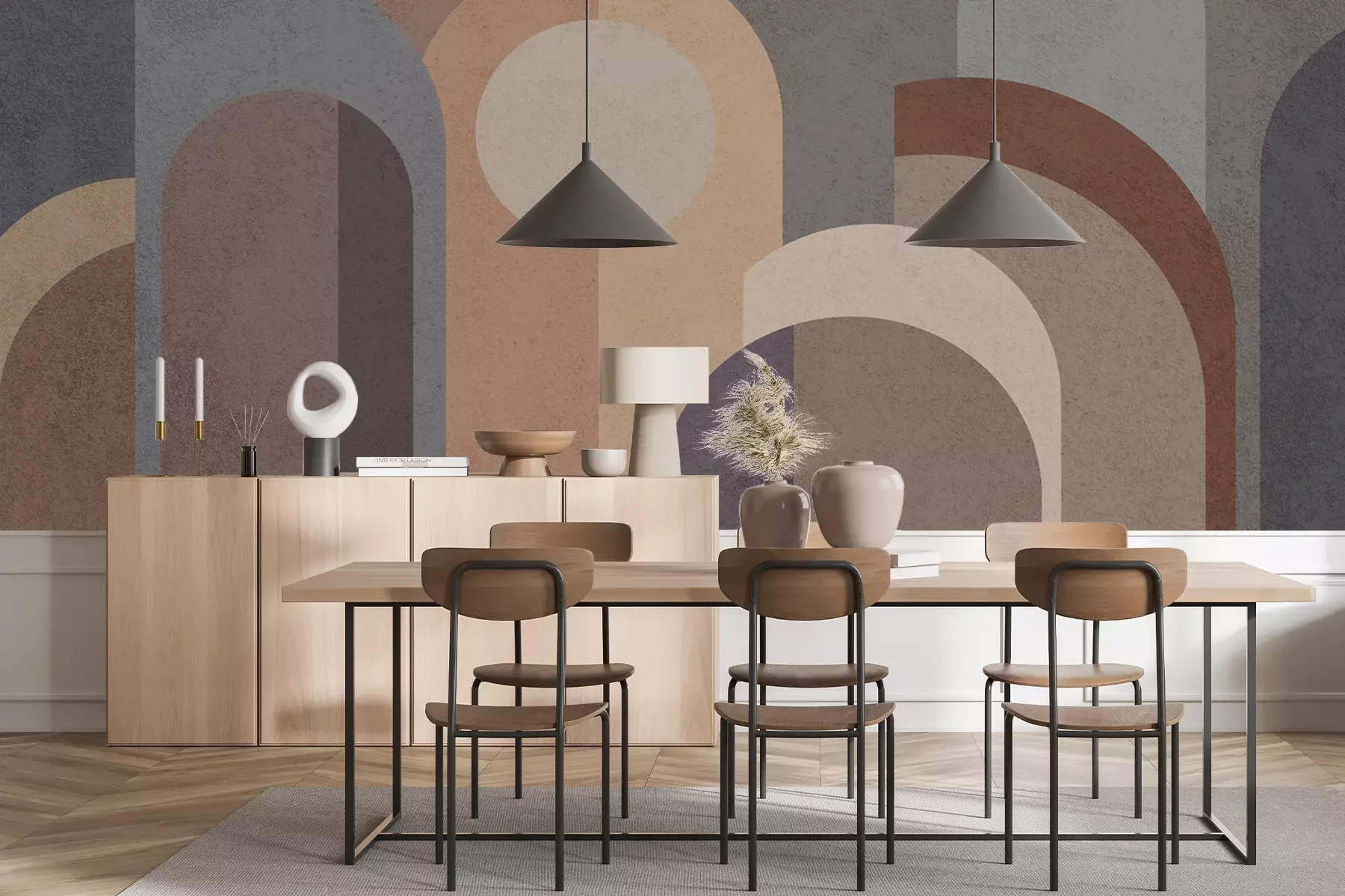 Het materiaal Standard is een hoogwaardig latexmateriaal met een glad, mat oppervlak. Dankzij de HP Latex-printtechnologie zijn de kleuren intens, duurzaam en UV-bestendig, waardoor het patroon jarenlang een onberispelijke uitstraling behoudt. Vervuilde oppervlakken kunnen voorzichtig worden afgeveegd met een droge doek. De maximale breedte van één baan bedraagt 95 cm of 105 cm – afhankelijk van de bestelde fotobehangbreedte. Bij grotere afmetingen wordt het patroon verdeeld over meerdere gelijkmatige banen. Het fotobehang wordt rand-aan-randaangebracht, wat vrijwel onzichtbare naden mogelijk maakt.