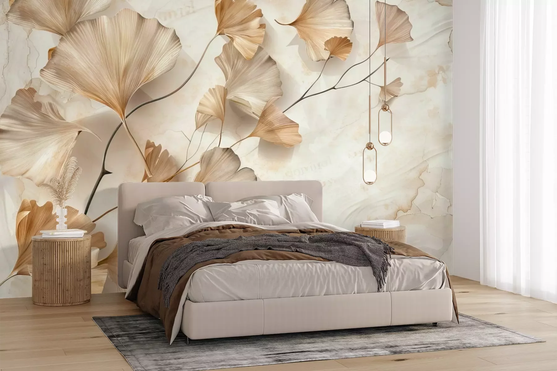 Het materiaal Premium+ is een gestructureerd vinyl op vlies met een gewicht van 255 g/m², dat kleine oneffenheden in de muur effectief camoufleert. De subtiele structuur van fijn zand geeft het oppervlak een exclusieve uitstraling, terwijl de halfmatte afwerking de diepte van de kleuren benadrukt. Het materiaal is dampdoorlatend, waardoor het ook in de keuken en badkamer kan worden gebruikt. De maximale breedte van één baan bedraagt 100 cm – bij grotere afmetingen wordt het fotobehang in meerdere gelijke banen verdeeld. De lijm wordt direct op de muur aangebracht en het behang wordt rand-aan-rand geplakt, wat zorgt voor een esthetisch resultaat zonder zichtbare naden. Het oppervlak kan gemakkelijk worden schoongemaakt door het voorzichtig af te nemen met een vochtige doek.