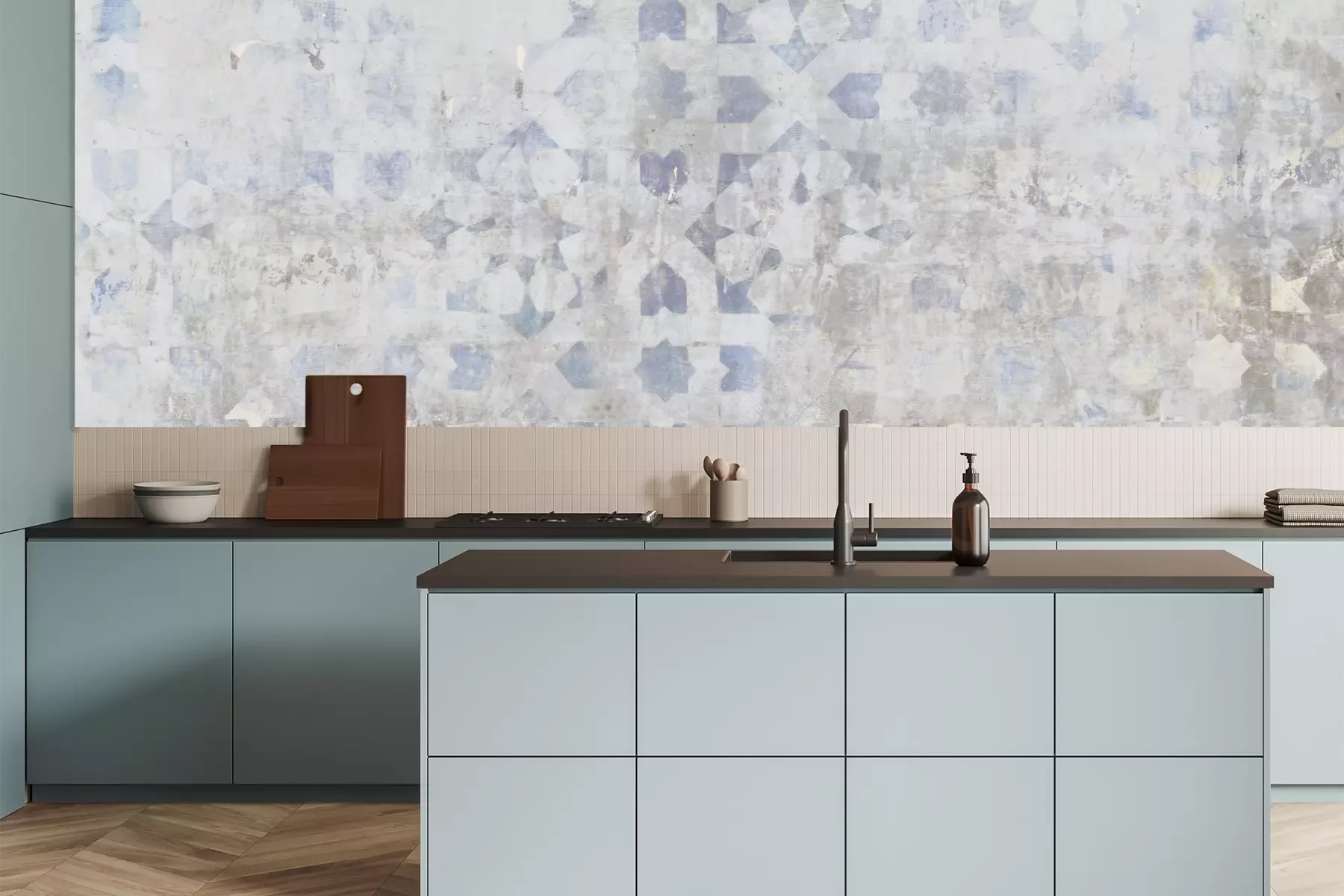Het materiaal Premium is een glad vinyl op vlies, dat bestand is tegen uitrekken en vervorming. Het is dampdoorlatend – de muren kunnen vrij ademen – waardoor het geschikt is voor gebruik in de keuken en badkamer. Bij vervuiling kan het materiaal worden afgenomen met een vochtige doek. De maximale breedte van één baan bedraagt 95 of 105 cm, afhankelijk van de beschikbaarheid. Montage vindt plaats met de rand-aan-rand methode, wat een esthetisch resultaat zonder zichtbare naden oplevert. Omdat de lijm rechtstreeks op de muur wordt aangebracht, verloopt de installatie van het fotobehang snel en eenvoudig.