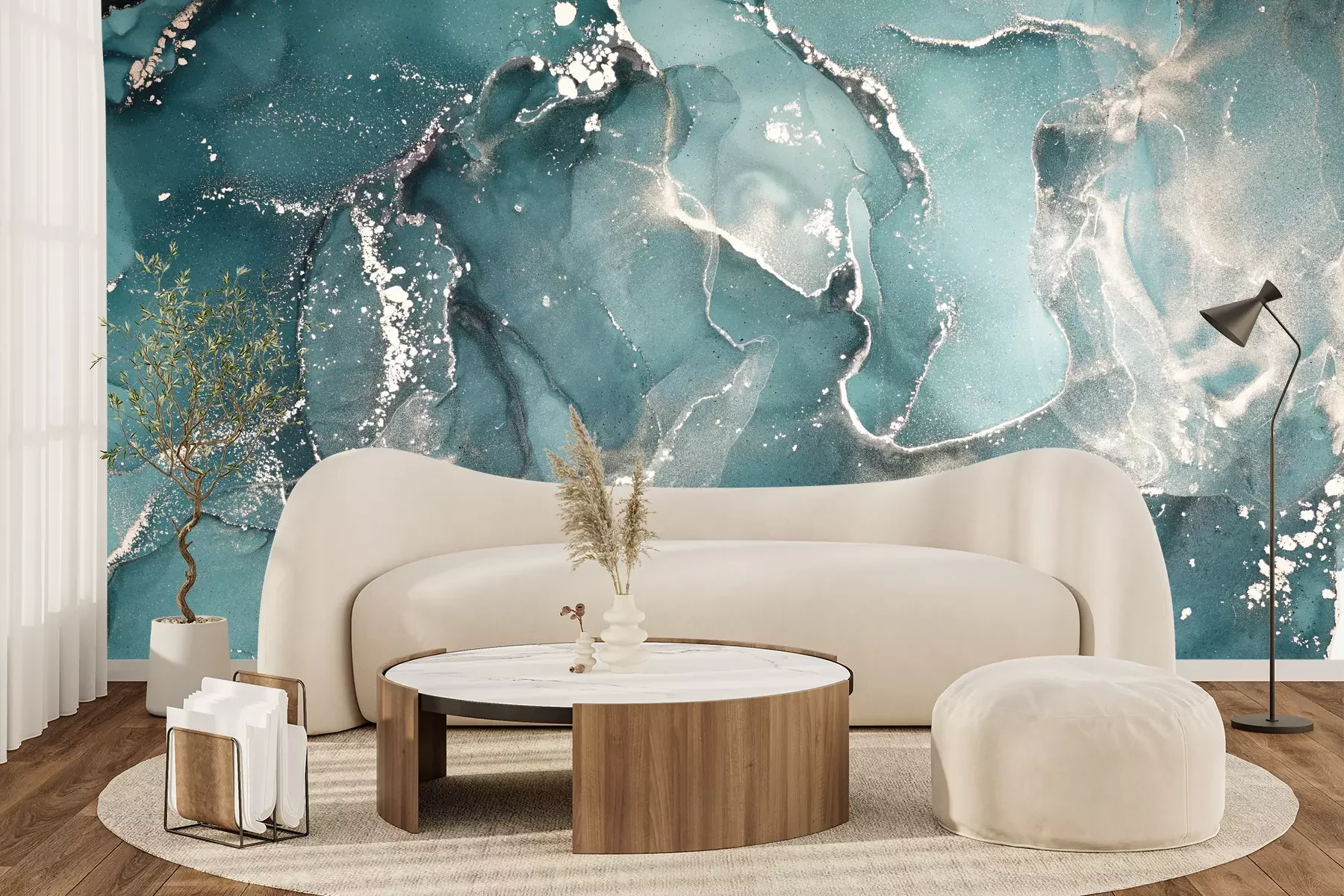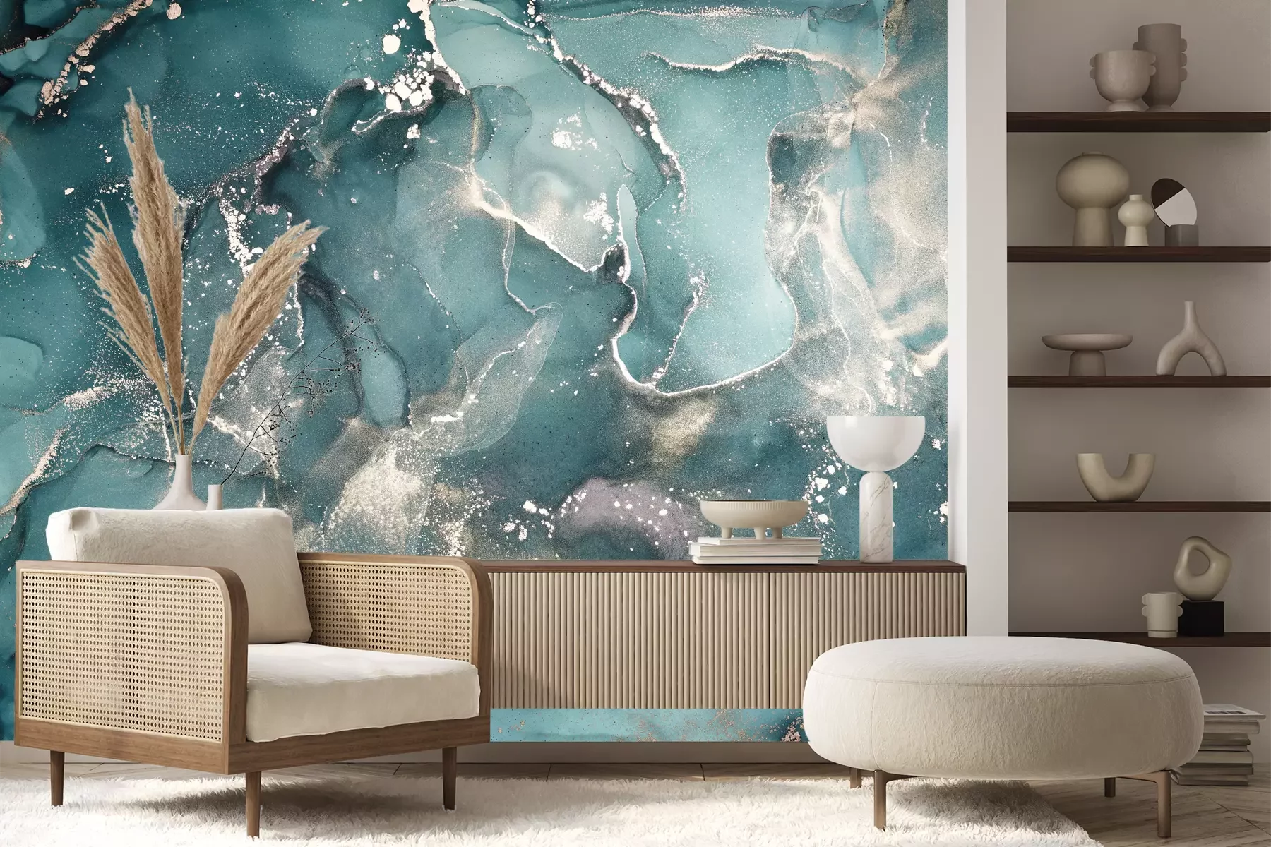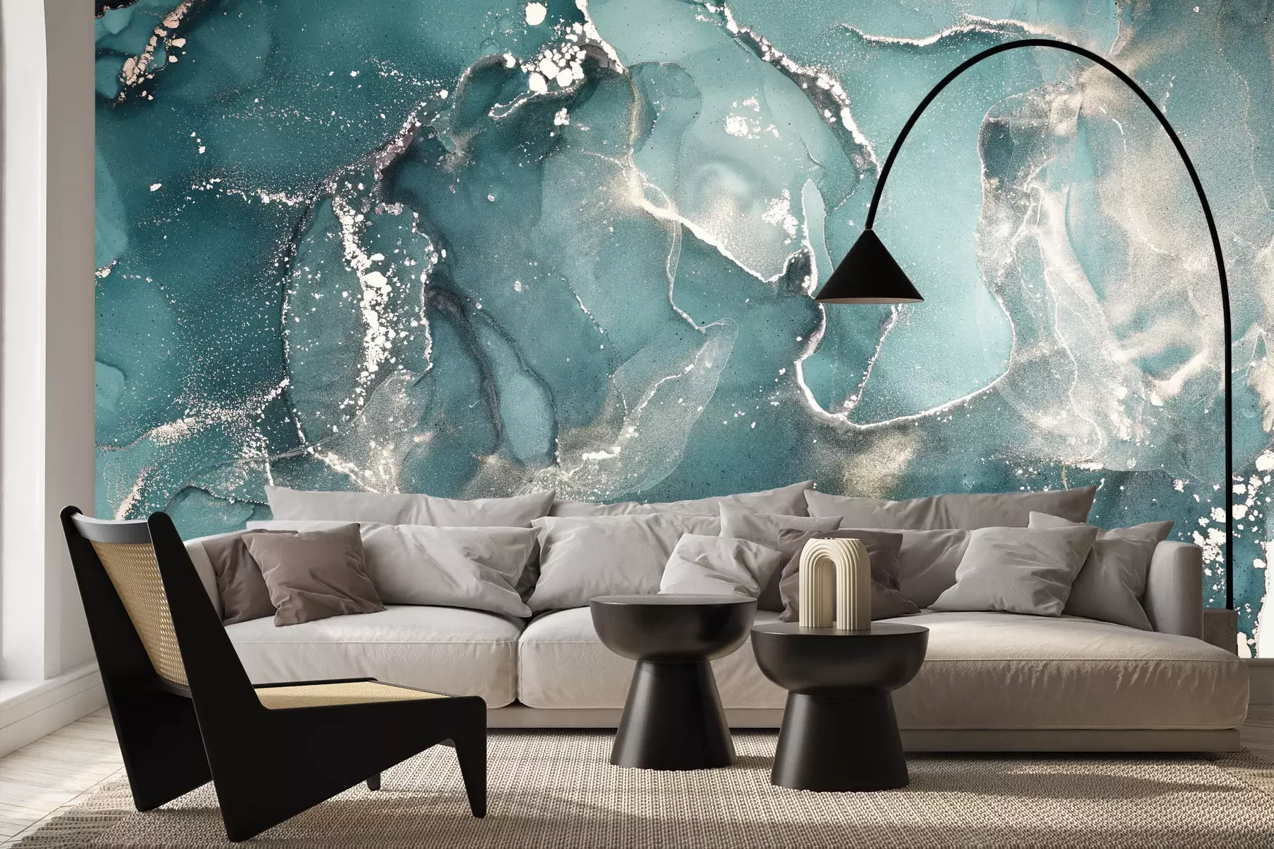 Het materiaal Premium+ is een gestructureerd vinyl op vlies met een gewicht van 255 g/m², dat kleine oneffenheden in de muur effectief camoufleert. De subtiele structuur van fijn zand geeft het oppervlak een exclusieve uitstraling, terwijl de halfmatte afwerking de diepte van de kleuren benadrukt. Het materiaal is dampdoorlatend, waardoor het ook in de keuken en badkamer kan worden gebruikt. De maximale breedte van één baan bedraagt 100 cm – bij grotere afmetingen wordt het fotobehang in meerdere gelijke banen verdeeld. De lijm wordt direct op de muur aangebracht en het behang wordt rand-aan-rand geplakt, wat zorgt voor een esthetisch resultaat zonder zichtbare naden. Het oppervlak kan gemakkelijk worden schoongemaakt door het voorzichtig af te nemen met een vochtige doek.