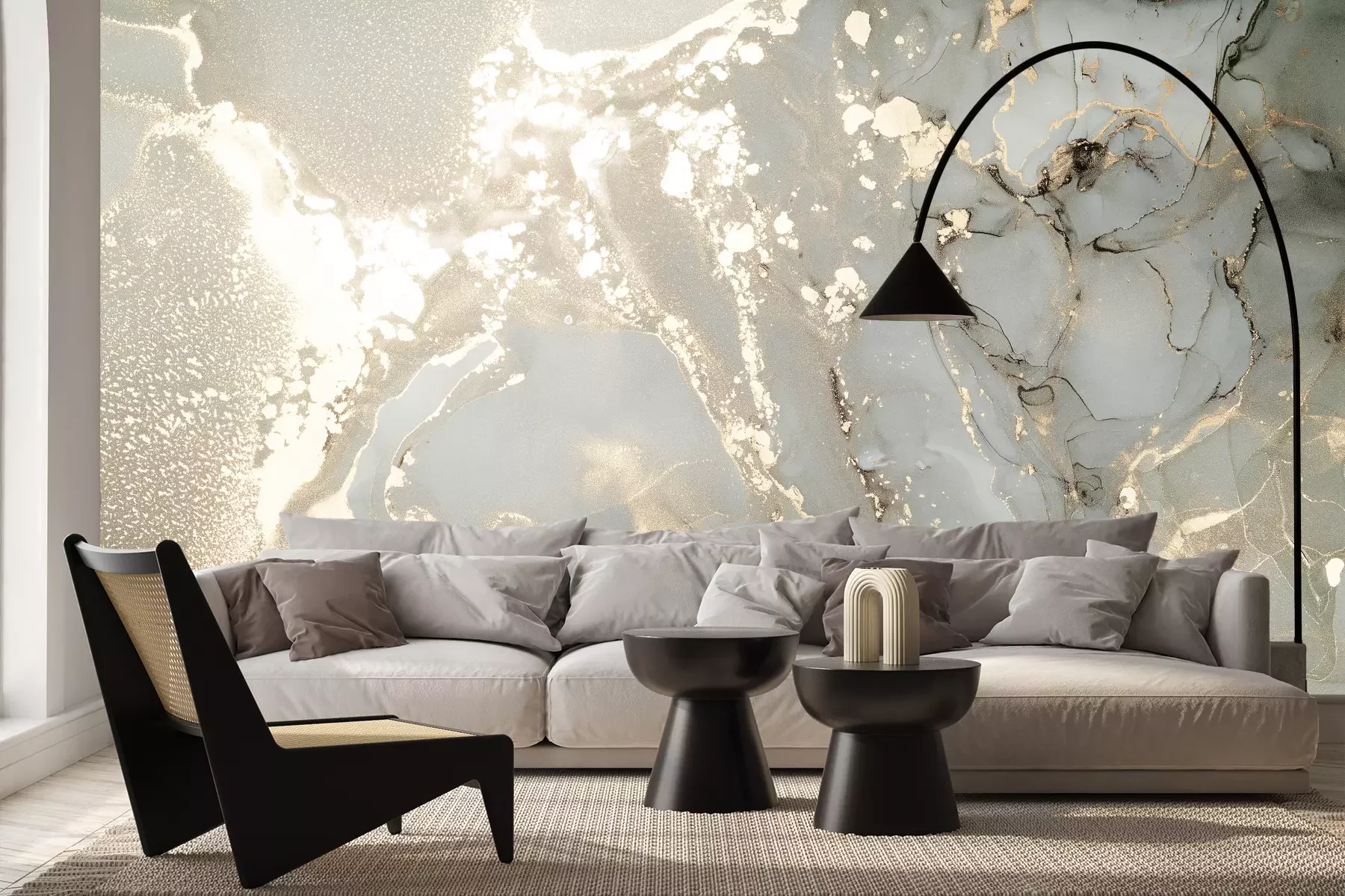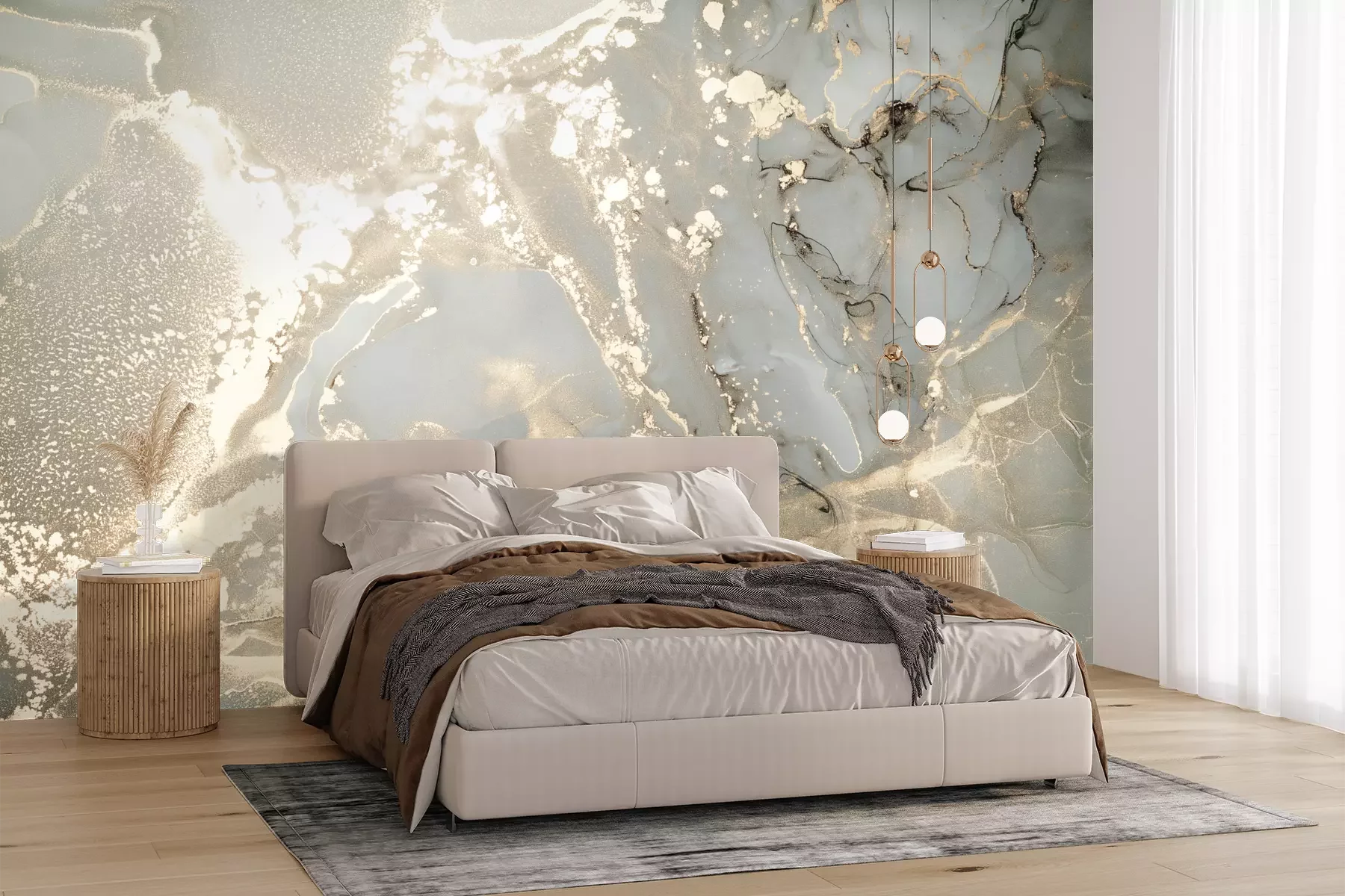 Het materiaal Premium+ is een gestructureerd vinyl op vlies met een gewicht van 255 g/m², dat kleine oneffenheden in de muur effectief camoufleert. De subtiele structuur van fijn zand geeft het oppervlak een exclusieve uitstraling, terwijl de halfmatte afwerking de diepte van de kleuren benadrukt. Het materiaal is dampdoorlatend, waardoor het ook in de keuken en badkamer kan worden gebruikt. De maximale breedte van één baan bedraagt 100 cm – bij grotere afmetingen wordt het fotobehang in meerdere gelijke banen verdeeld. De lijm wordt direct op de muur aangebracht en het behang wordt rand-aan-rand geplakt, wat zorgt voor een esthetisch resultaat zonder zichtbare naden. Het oppervlak kan gemakkelijk worden schoongemaakt door het voorzichtig af te nemen met een vochtige doek.