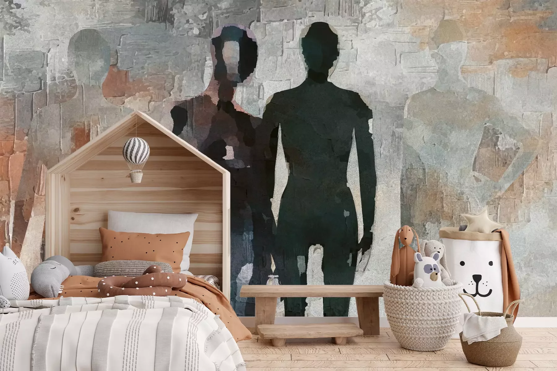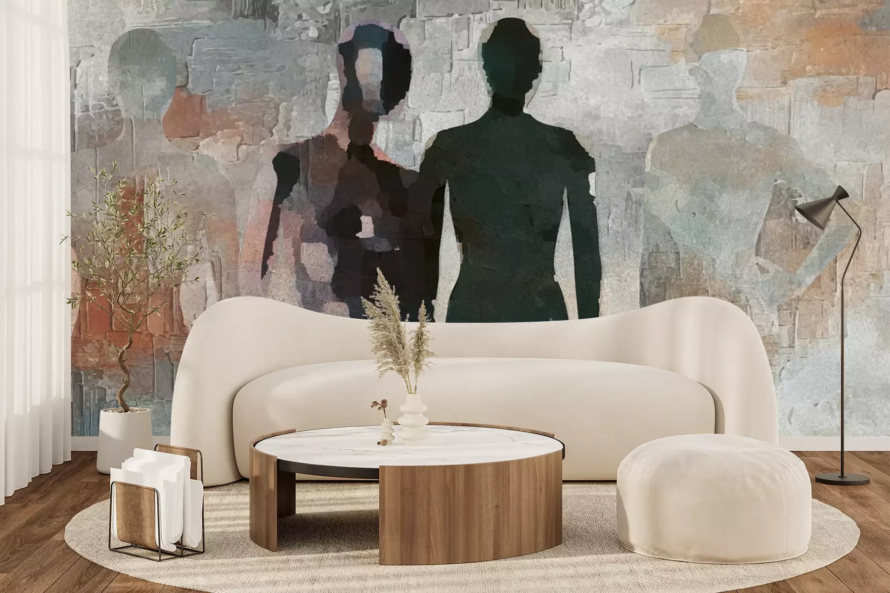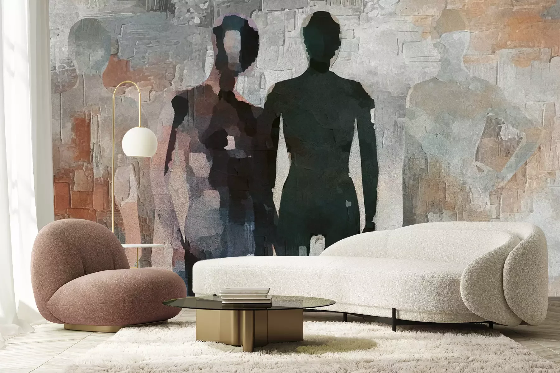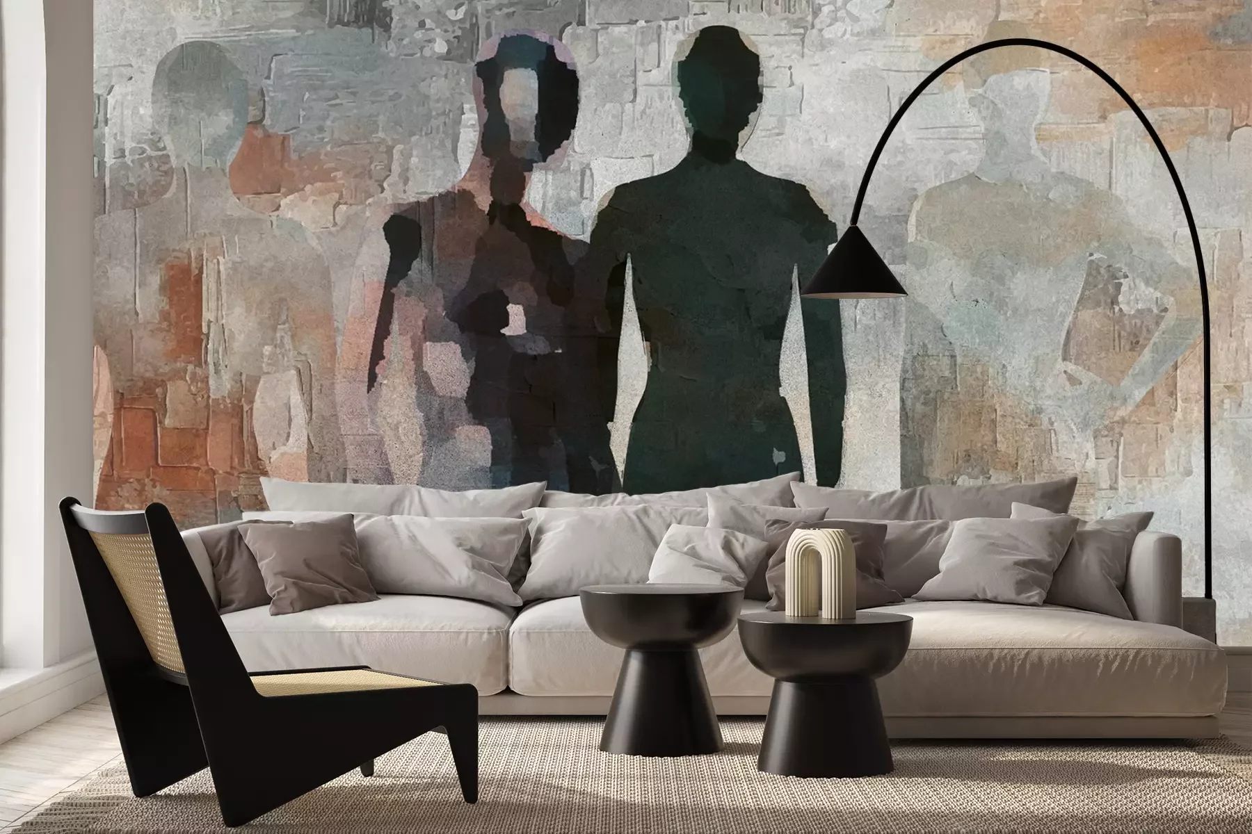 Abstracte menselijke silhouetten op een geschilderde achtergrond - modern motief