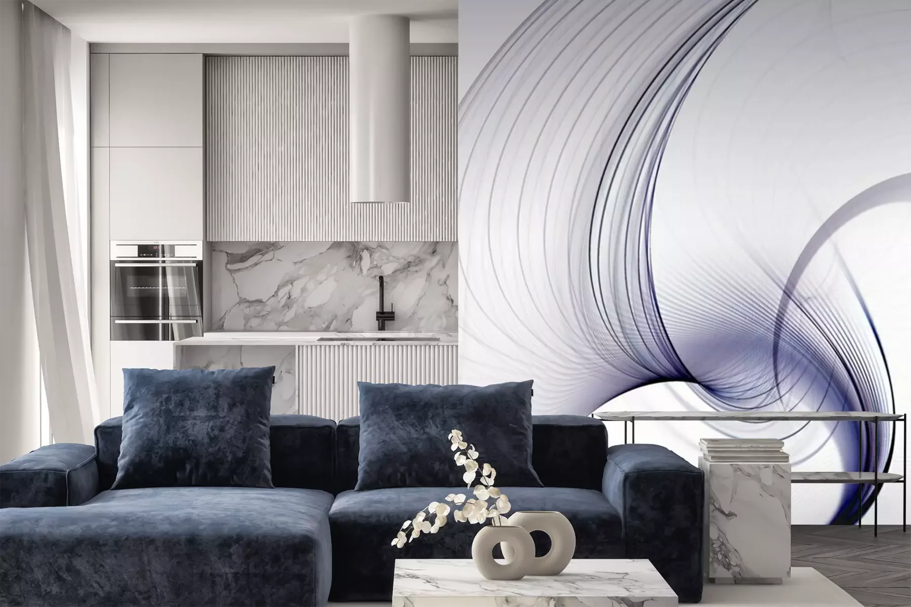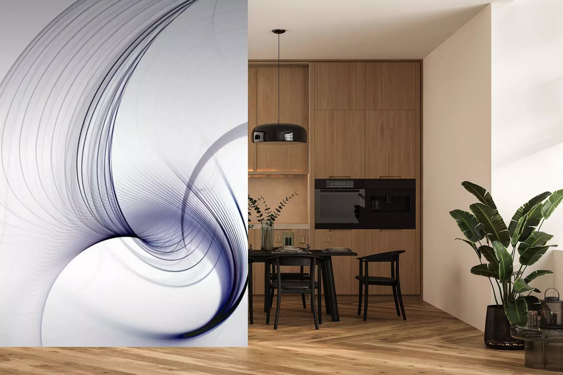 Het materiaal Premium+ is een gestructureerd vinyl op vlies met een gewicht van 255 g/m², dat kleine oneffenheden in de muur effectief camoufleert. De subtiele structuur van fijn zand geeft het oppervlak een exclusieve uitstraling, terwijl de halfmatte afwerking de diepte van de kleuren benadrukt. Het materiaal is dampdoorlatend, waardoor het ook in de keuken en badkamer kan worden gebruikt. De maximale breedte van één baan bedraagt 100 cm – bij grotere afmetingen wordt het fotobehang in meerdere gelijke banen verdeeld. De lijm wordt direct op de muur aangebracht en het behang wordt rand-aan-rand geplakt, wat zorgt voor een esthetisch resultaat zonder zichtbare naden. Het oppervlak kan gemakkelijk worden schoongemaakt door het voorzichtig af te nemen met een vochtige doek.