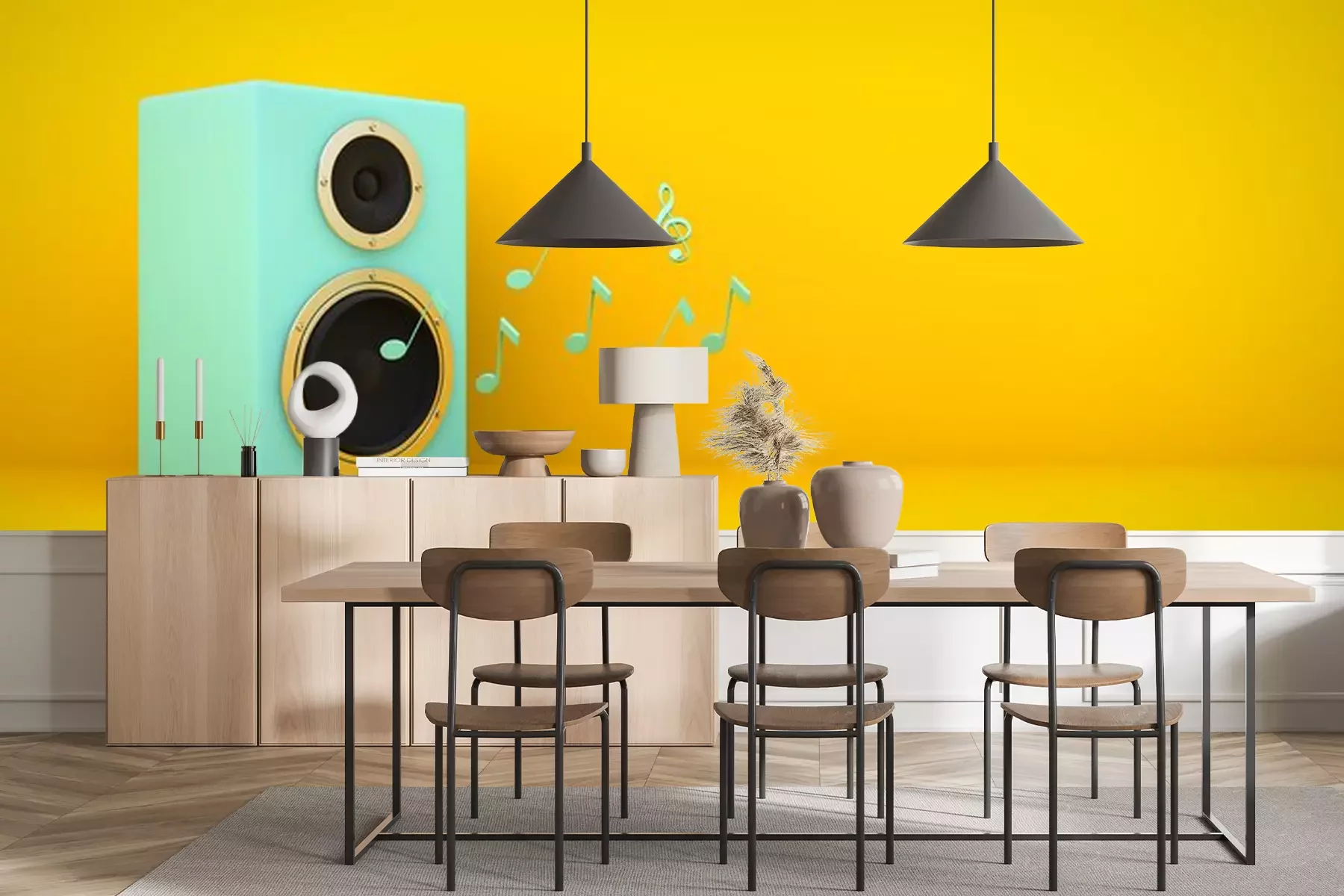 Fotobehang Abstracte noten uit luidspreker