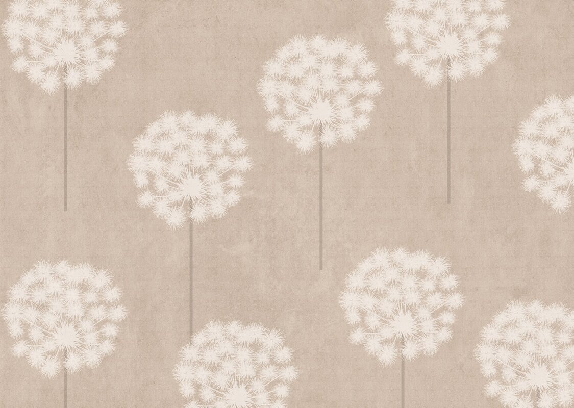 Fotobehang: Abstracte paardenbloembloemen op een beige achtergrond