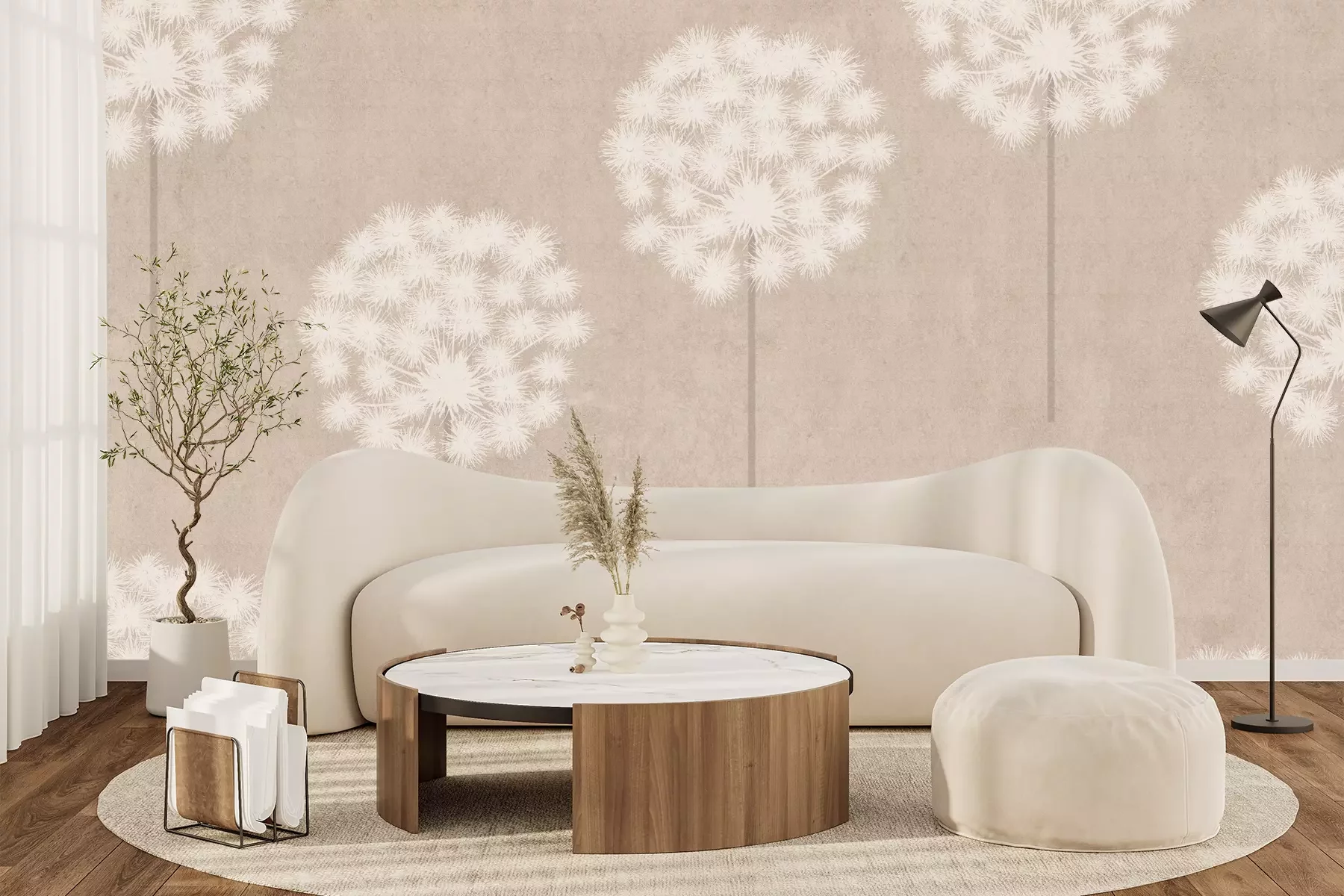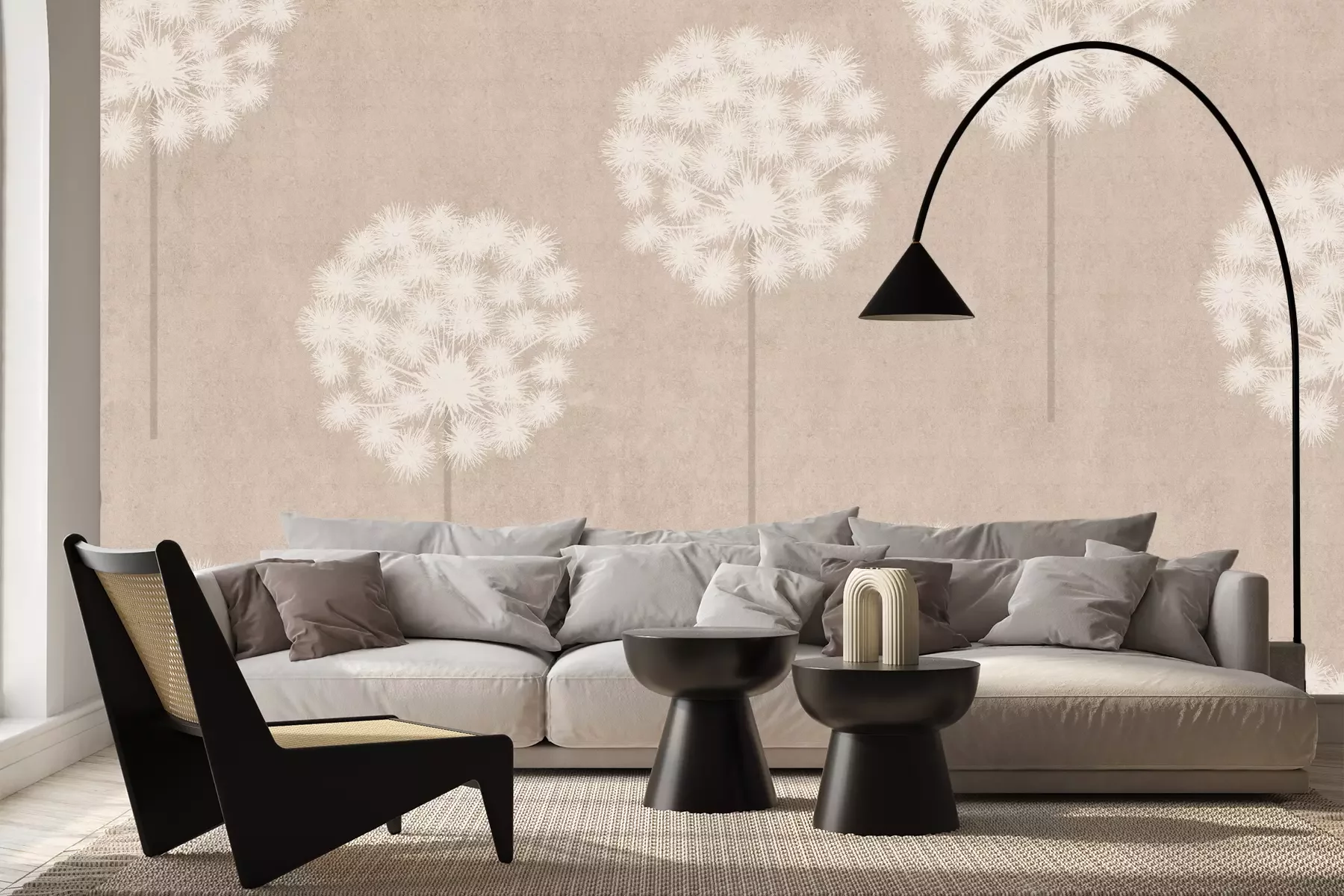 Het materiaal Premium+ is een gestructureerd vinyl op vlies met een gewicht van 255 g/m², dat kleine oneffenheden in de muur effectief camoufleert. De subtiele structuur van fijn zand geeft het oppervlak een exclusieve uitstraling, terwijl de halfmatte afwerking de diepte van de kleuren benadrukt. Het materiaal is dampdoorlatend, waardoor het ook in de keuken en badkamer kan worden gebruikt. De maximale breedte van één baan bedraagt 100 cm – bij grotere afmetingen wordt het fotobehang in meerdere gelijke banen verdeeld. De lijm wordt direct op de muur aangebracht en het behang wordt rand-aan-rand geplakt, wat zorgt voor een esthetisch resultaat zonder zichtbare naden. Het oppervlak kan gemakkelijk worden schoongemaakt door het voorzichtig af te nemen met een vochtige doek.