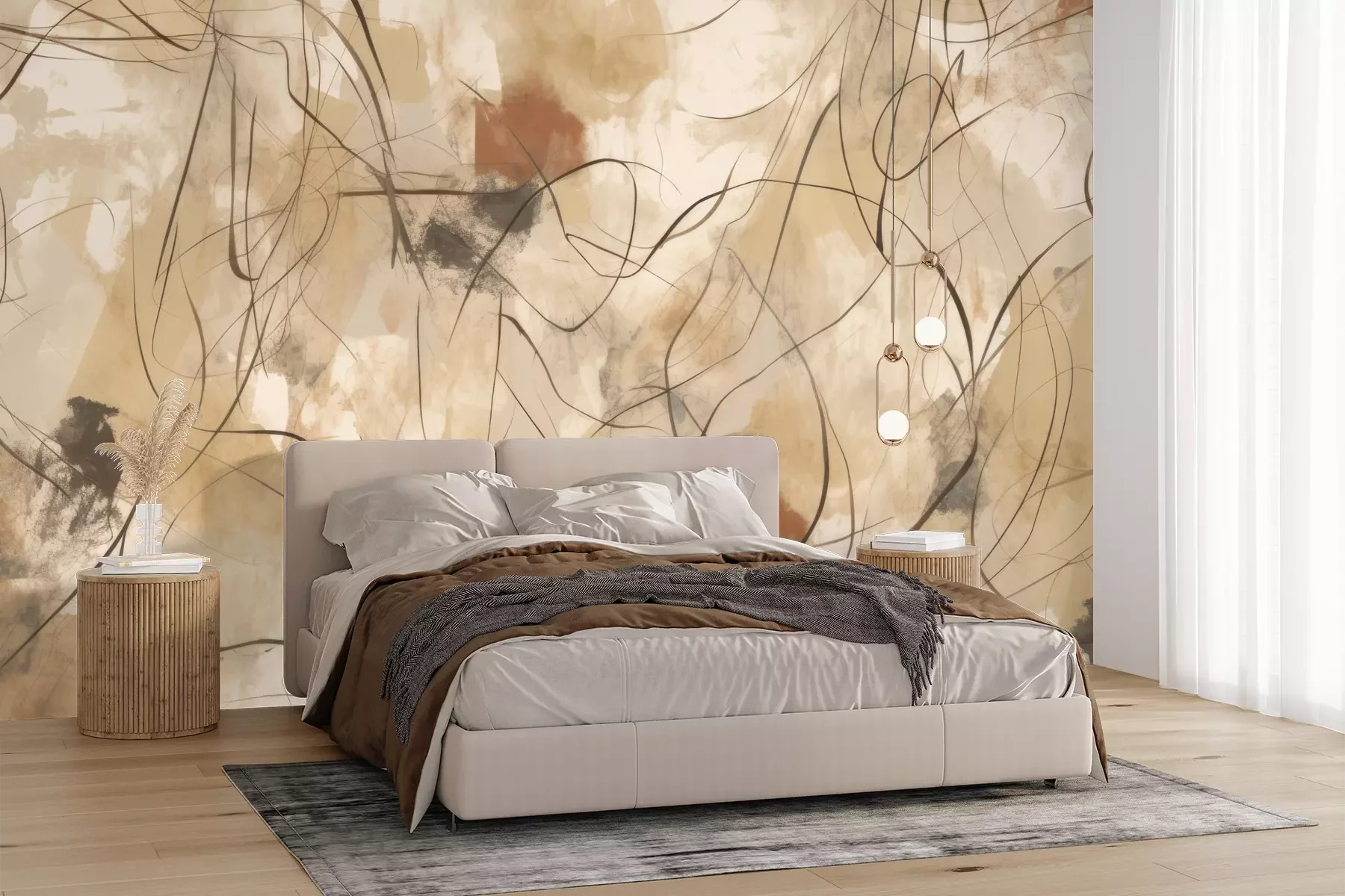 Het materiaal Premium+ is een gestructureerd vinyl op vlies met een gewicht van 255 g/m², dat kleine oneffenheden in de muur effectief camoufleert. De subtiele structuur van fijn zand geeft het oppervlak een exclusieve uitstraling, terwijl de halfmatte afwerking de diepte van de kleuren benadrukt. Het materiaal is dampdoorlatend, waardoor het ook in de keuken en badkamer kan worden gebruikt. De maximale breedte van één baan bedraagt 100 cm – bij grotere afmetingen wordt het fotobehang in meerdere gelijke banen verdeeld. De lijm wordt direct op de muur aangebracht en het behang wordt rand-aan-rand geplakt, wat zorgt voor een esthetisch resultaat zonder zichtbare naden. Het oppervlak kan gemakkelijk worden schoongemaakt door het voorzichtig af te nemen met een vochtige doek.