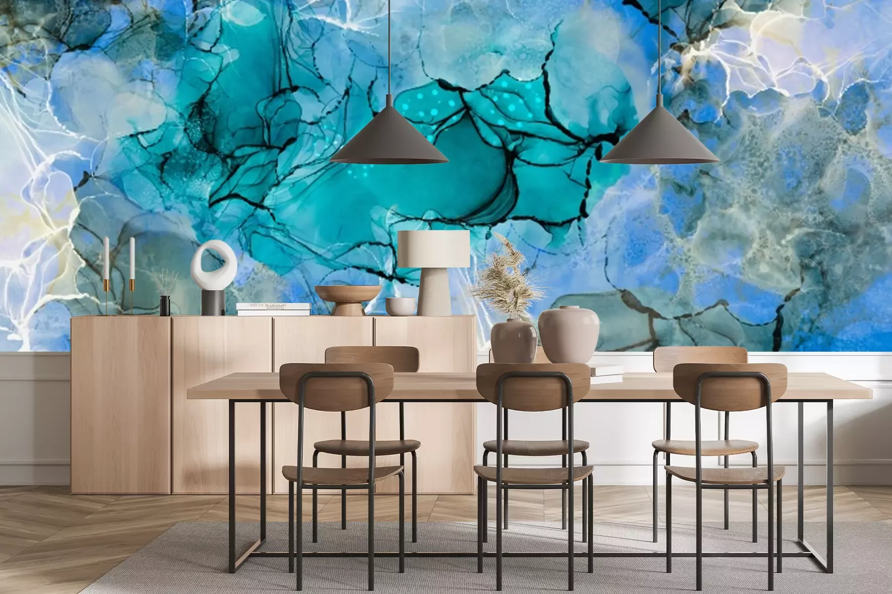 Fotobehang Abstracte turquoise achtergrond geschilderd met waterverf