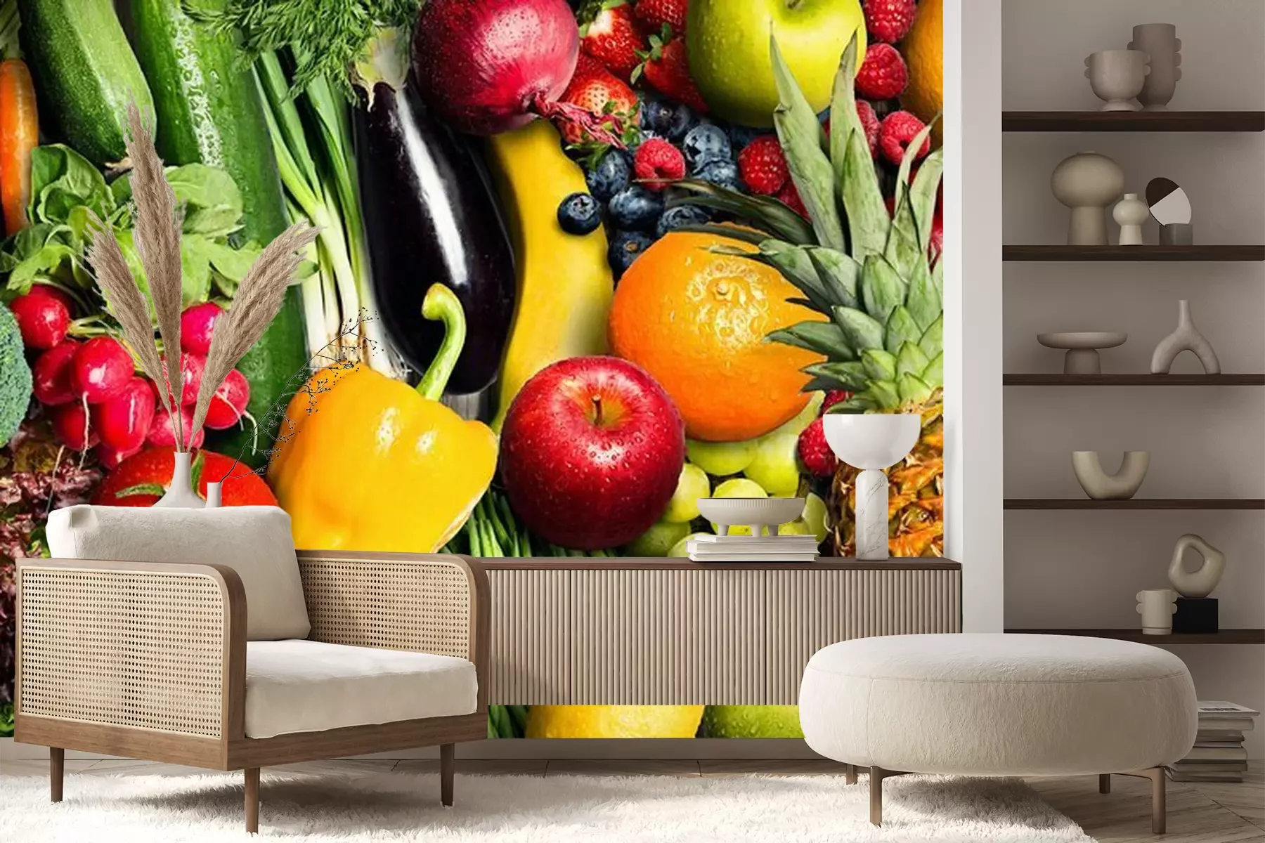Het materiaal Standard is een hoogwaardig latexmateriaal met een glad, mat oppervlak. Dankzij de HP Latex-printtechnologie zijn de kleuren intens, duurzaam en UV-bestendig, waardoor het patroon jarenlang een onberispelijke uitstraling behoudt. Vervuilde oppervlakken kunnen voorzichtig worden afgeveegd met een droge doek. De maximale breedte van één baan bedraagt 95 cm of 105 cm – afhankelijk van de bestelde fotobehangbreedte. Bij grotere afmetingen wordt het patroon verdeeld over meerdere gelijkmatige banen. Het fotobehang wordt rand-aan-randaangebracht, wat vrijwel onzichtbare naden mogelijk maakt.