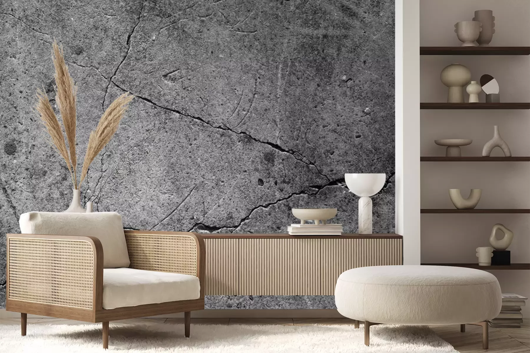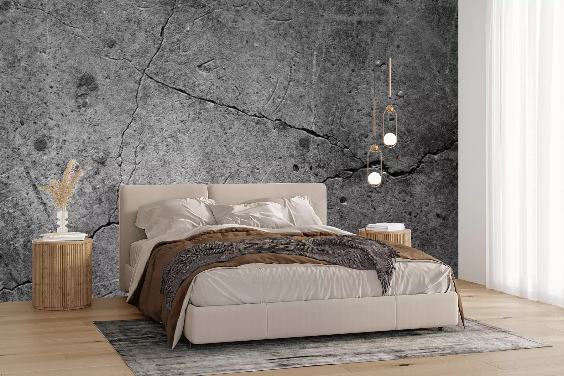 Het materiaal Premium+ is een gestructureerd vinyl op vlies met een gewicht van 255 g/m², dat kleine oneffenheden in de muur effectief camoufleert. De subtiele structuur van fijn zand geeft het oppervlak een exclusieve uitstraling, terwijl de halfmatte afwerking de diepte van de kleuren benadrukt. Het materiaal is dampdoorlatend, waardoor het ook in de keuken en badkamer kan worden gebruikt. De maximale breedte van één baan bedraagt 100 cm – bij grotere afmetingen wordt het fotobehang in meerdere gelijke banen verdeeld. De lijm wordt direct op de muur aangebracht en het behang wordt rand-aan-rand geplakt, wat zorgt voor een esthetisch resultaat zonder zichtbare naden. Het oppervlak kan gemakkelijk worden schoongemaakt door het voorzichtig af te nemen met een vochtige doek.