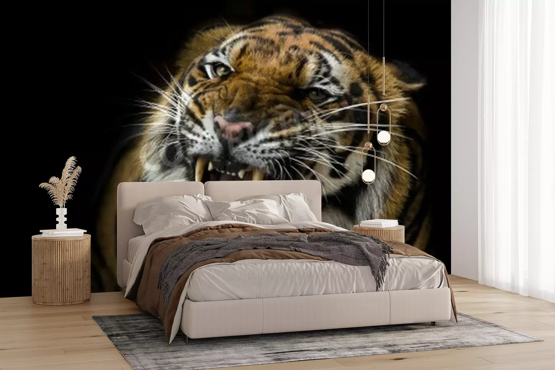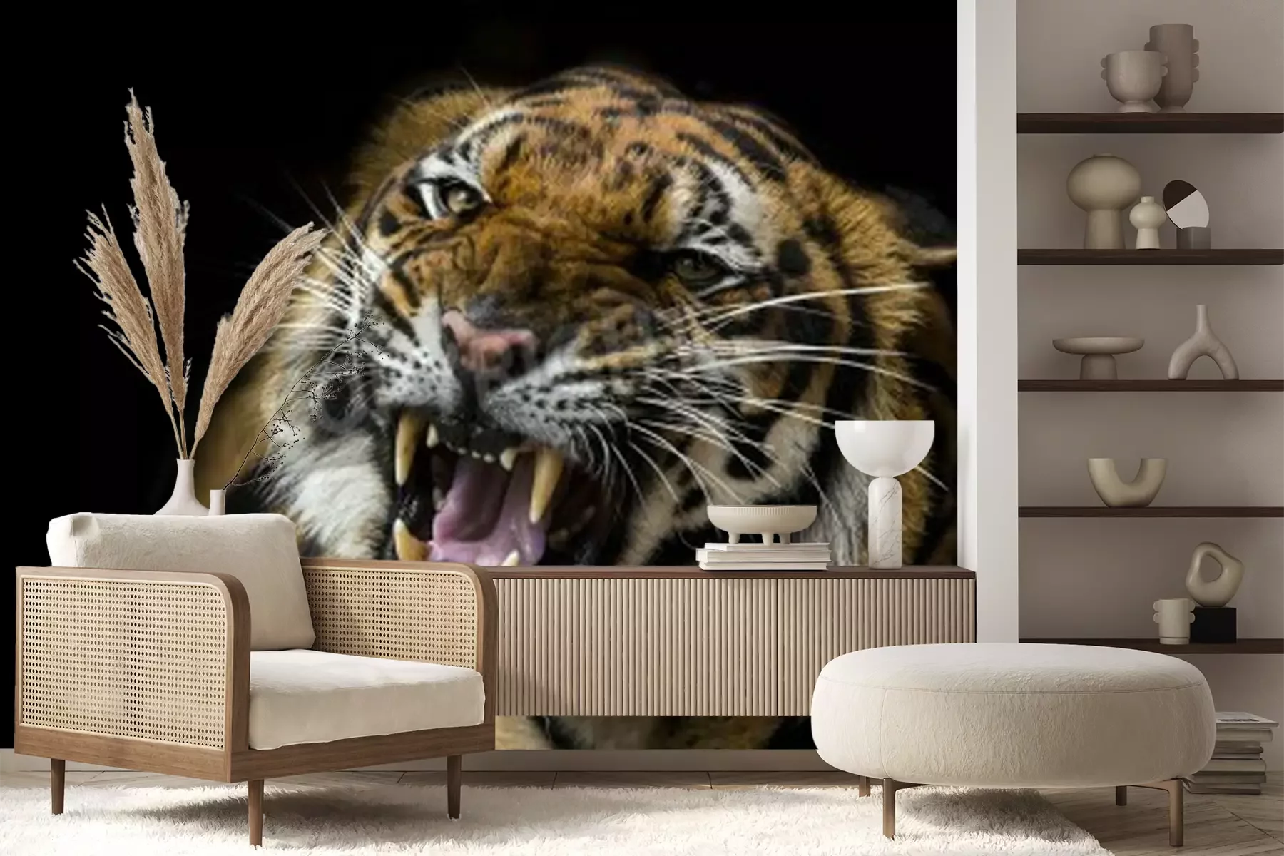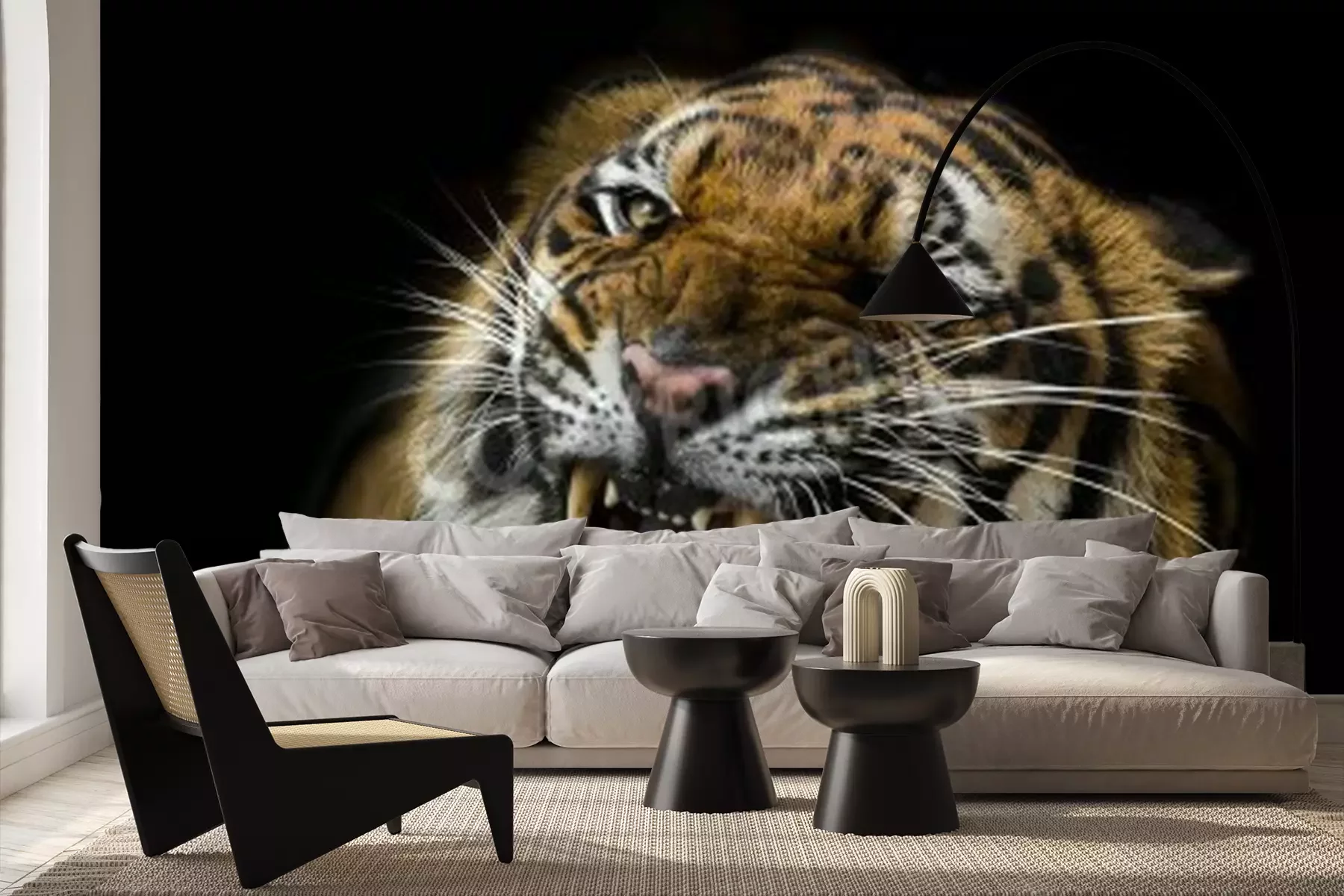 Fotobehang Afrikaanse tijger op een zwarte achtergrond