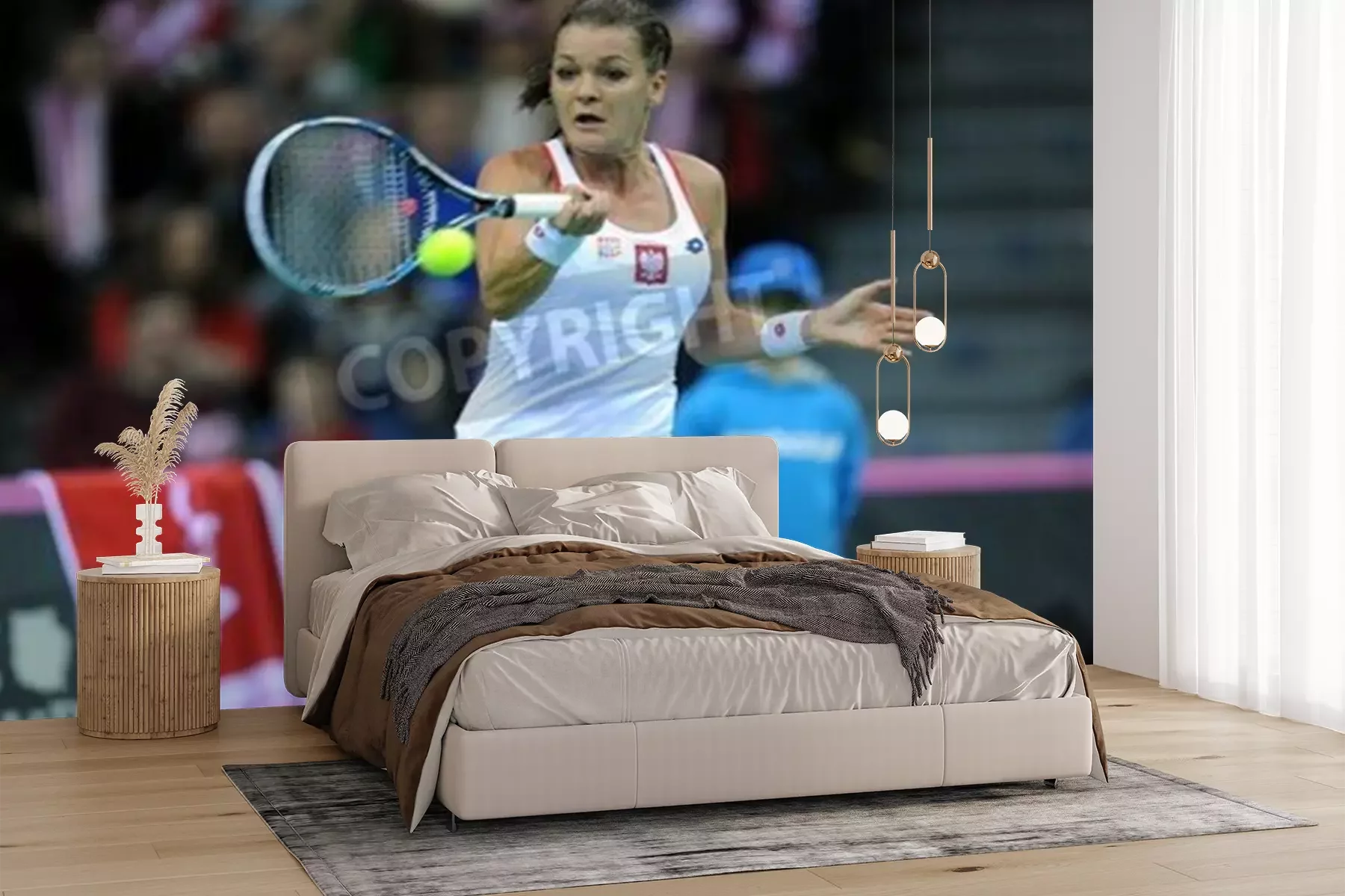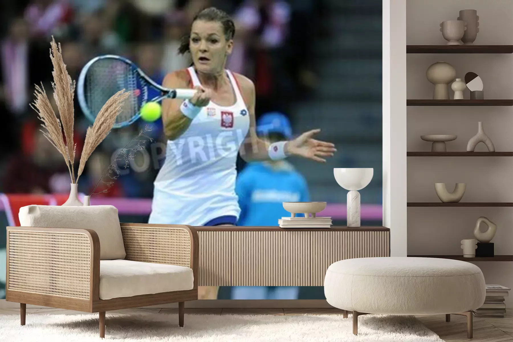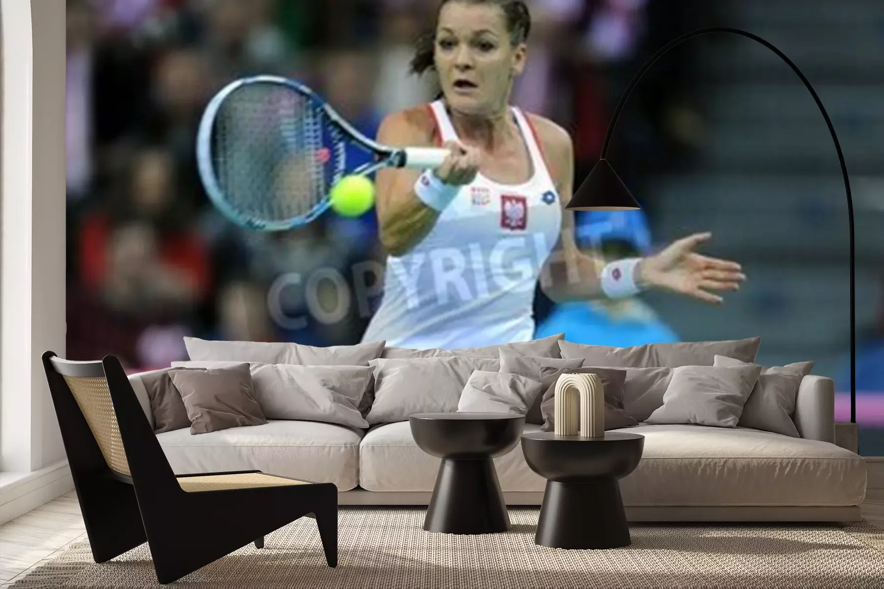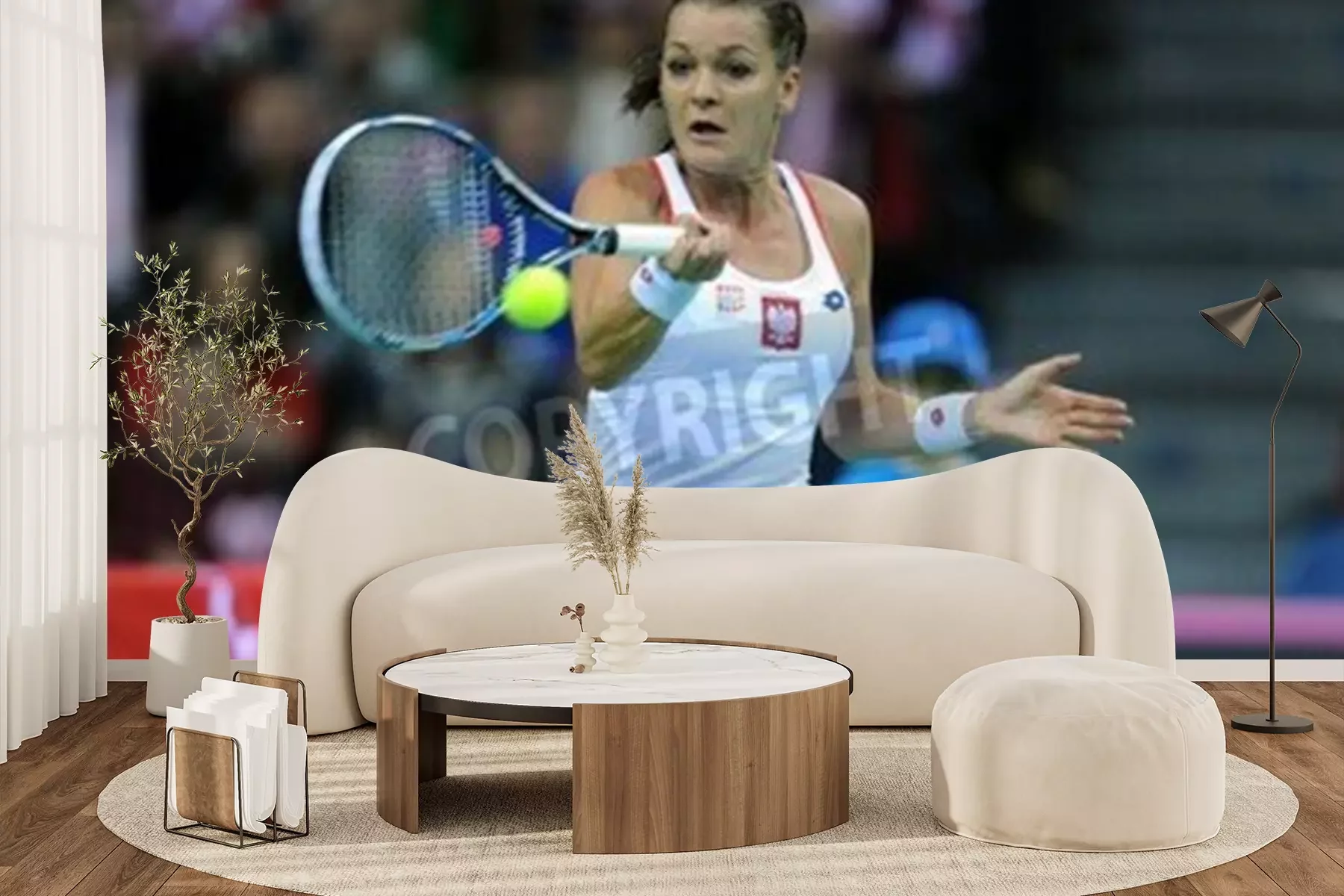 Fotobehang Agnieszka Radwańska slaat de bal