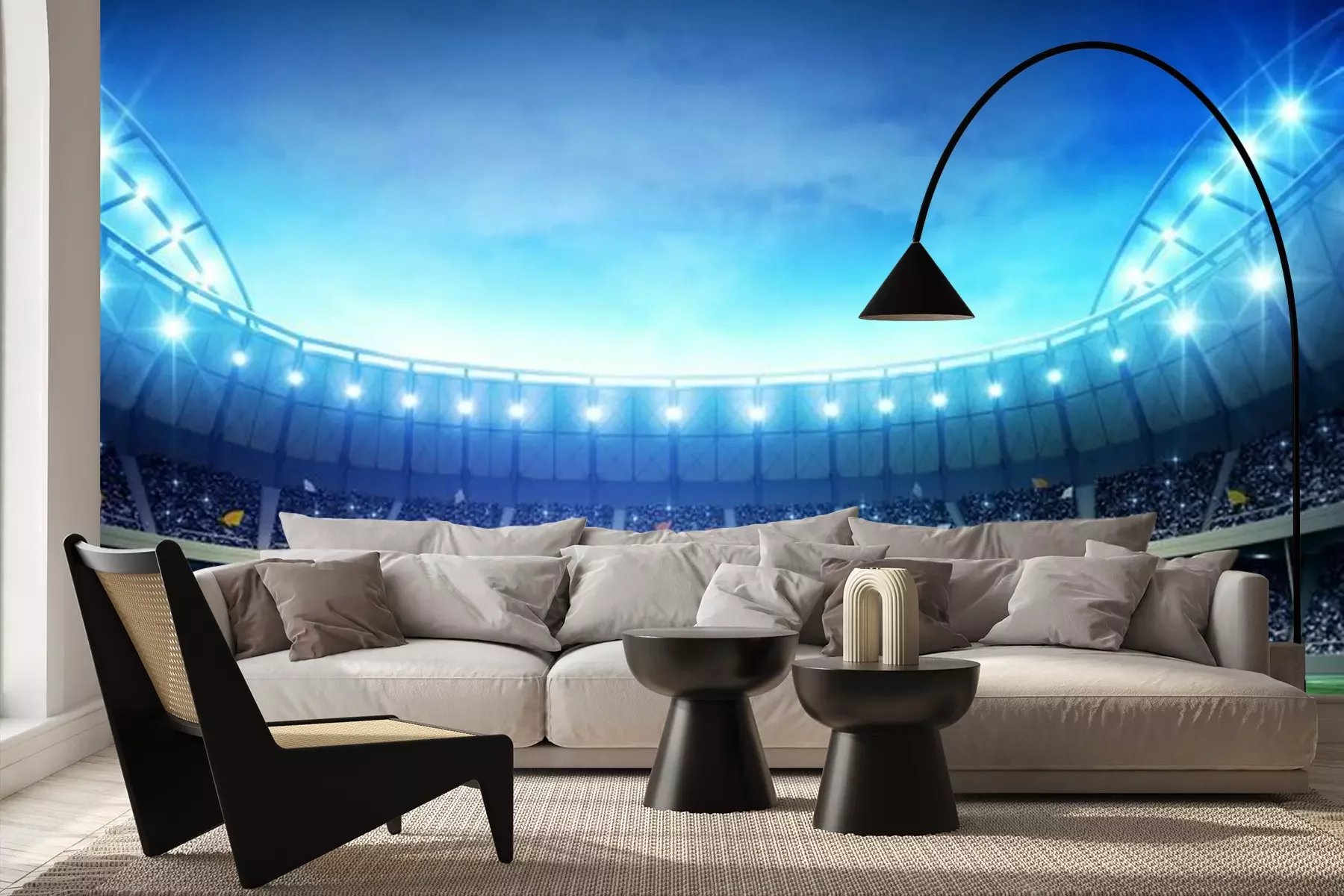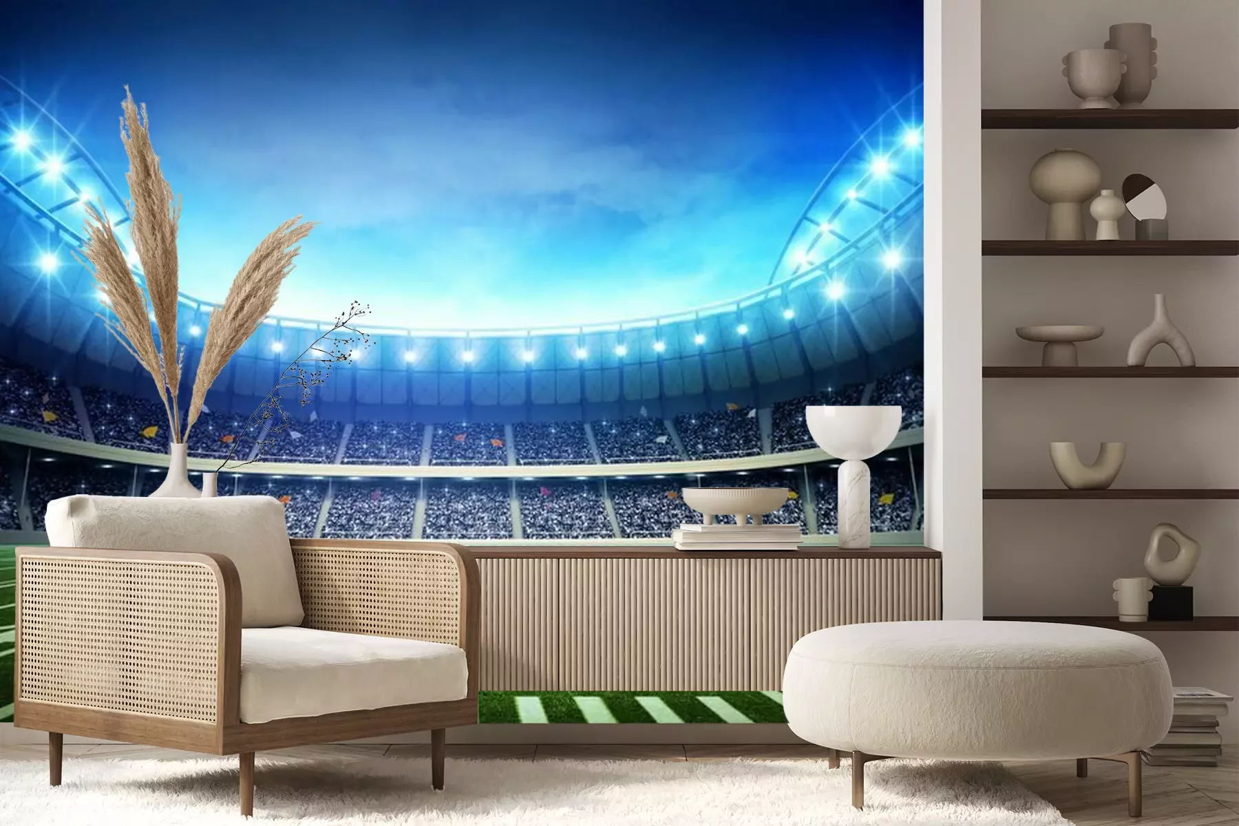 Verlicht voetbalveldFotobehang
