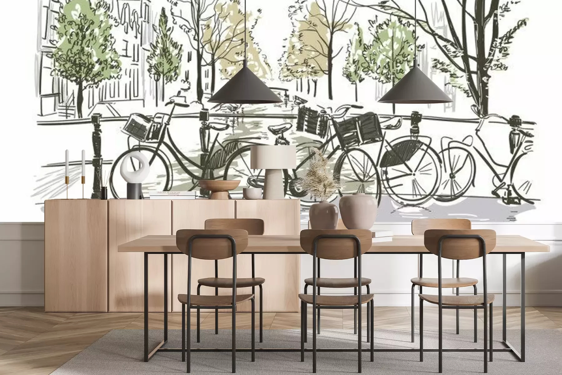 Het materiaal Premium is een glad vinyl op vlies, dat bestand is tegen uitrekken en vervorming. Het is dampdoorlatend – de muren kunnen vrij ademen – waardoor het geschikt is voor gebruik in de keuken en badkamer. Bij vervuiling kan het materiaal worden afgenomen met een vochtige doek. De maximale breedte van één baan bedraagt 95 of 105 cm, afhankelijk van de beschikbaarheid. Montage vindt plaats met de rand-aan-rand methode, wat een esthetisch resultaat zonder zichtbare naden oplevert. Omdat de lijm rechtstreeks op de muur wordt aangebracht, verloopt de installatie van het fotobehang snel en eenvoudig.