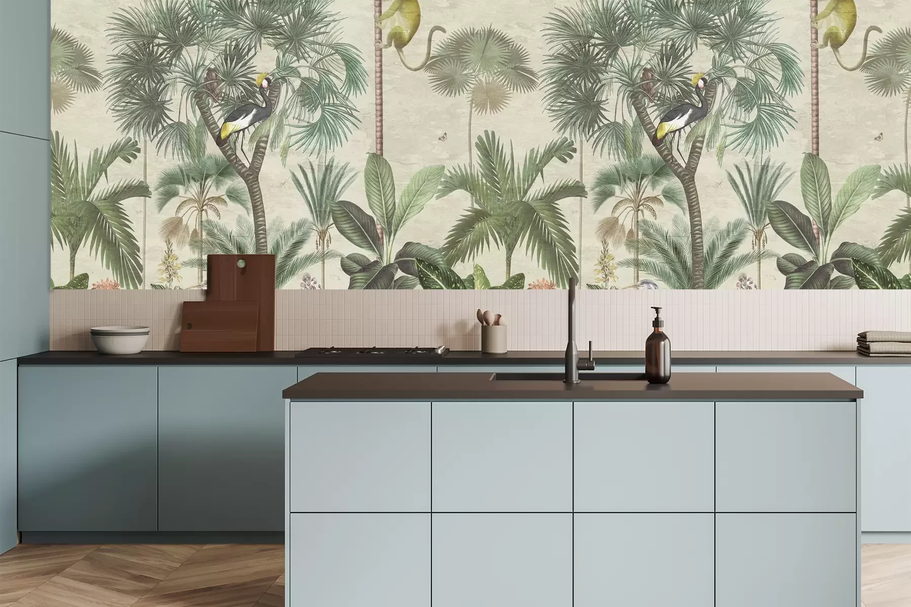 Het materiaal Premium is een glad vinyl op vlies, dat bestand is tegen uitrekken en vervorming. Het is dampdoorlatend – de muren kunnen vrij ademen – waardoor het geschikt is voor gebruik in de keuken en badkamer. Bij vervuiling kan het materiaal worden afgenomen met een vochtige doek. De maximale breedte van één baan bedraagt 95 of 105 cm, afhankelijk van de beschikbaarheid. Montage vindt plaats met de rand-aan-rand methode, wat een esthetisch resultaat zonder zichtbare naden oplevert. Omdat de lijm rechtstreeks op de muur wordt aangebracht, verloopt de installatie van het fotobehang snel en eenvoudig.