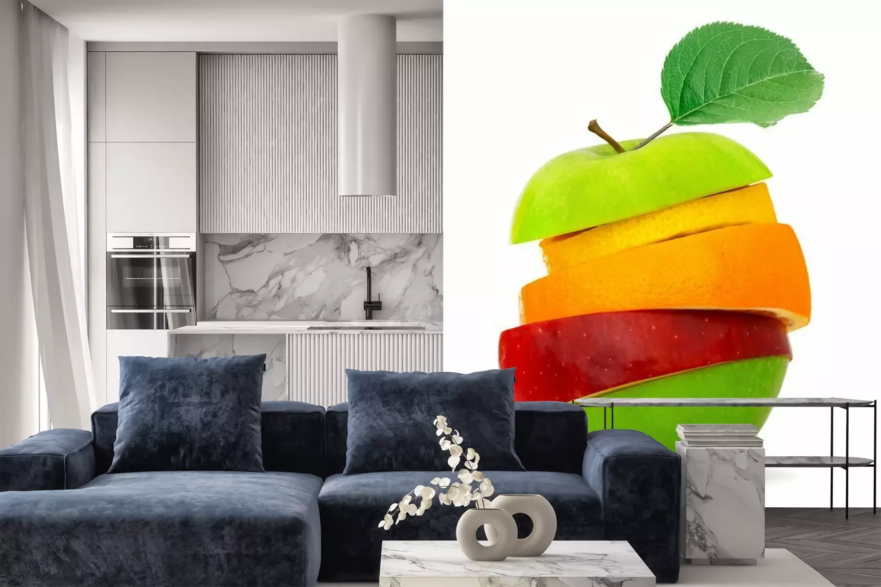 Het materiaal Premium is een glad vinyl op vlies, dat bestand is tegen uitrekken en vervorming. Het is dampdoorlatend – de muren kunnen vrij ademen – waardoor het geschikt is voor gebruik in de keuken en badkamer. Bij vervuiling kan het materiaal worden afgenomen met een vochtige doek. De maximale breedte van één baan bedraagt 95 of 105 cm, afhankelijk van de beschikbaarheid. Montage vindt plaats met de rand-aan-rand methode, wat een esthetisch resultaat zonder zichtbare naden oplevert. Omdat de lijm rechtstreeks op de muur wordt aangebracht, verloopt de installatie van het fotobehang snel en eenvoudig.