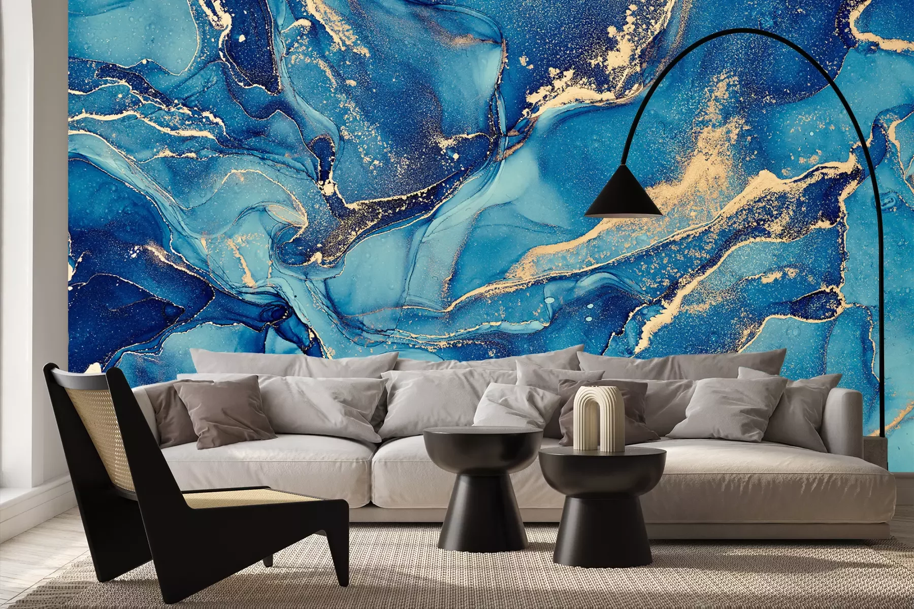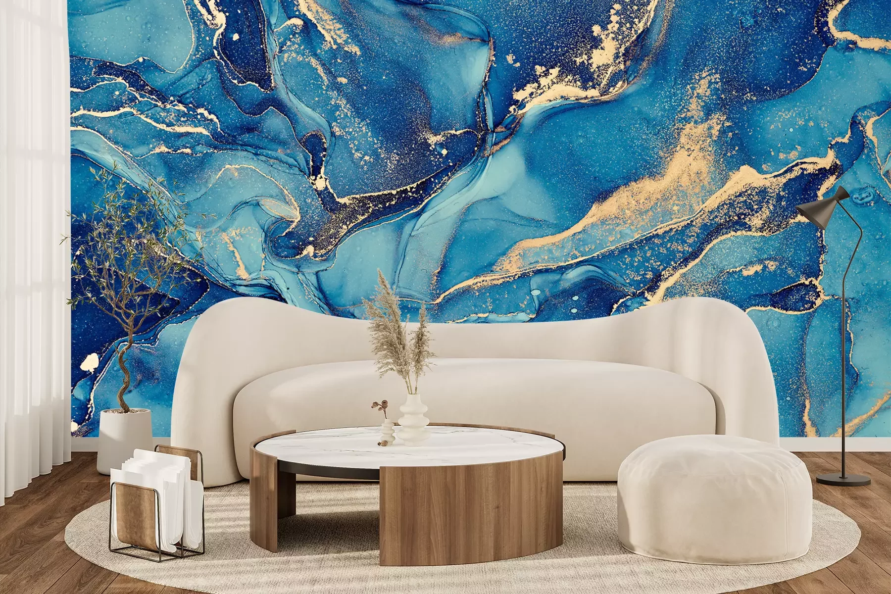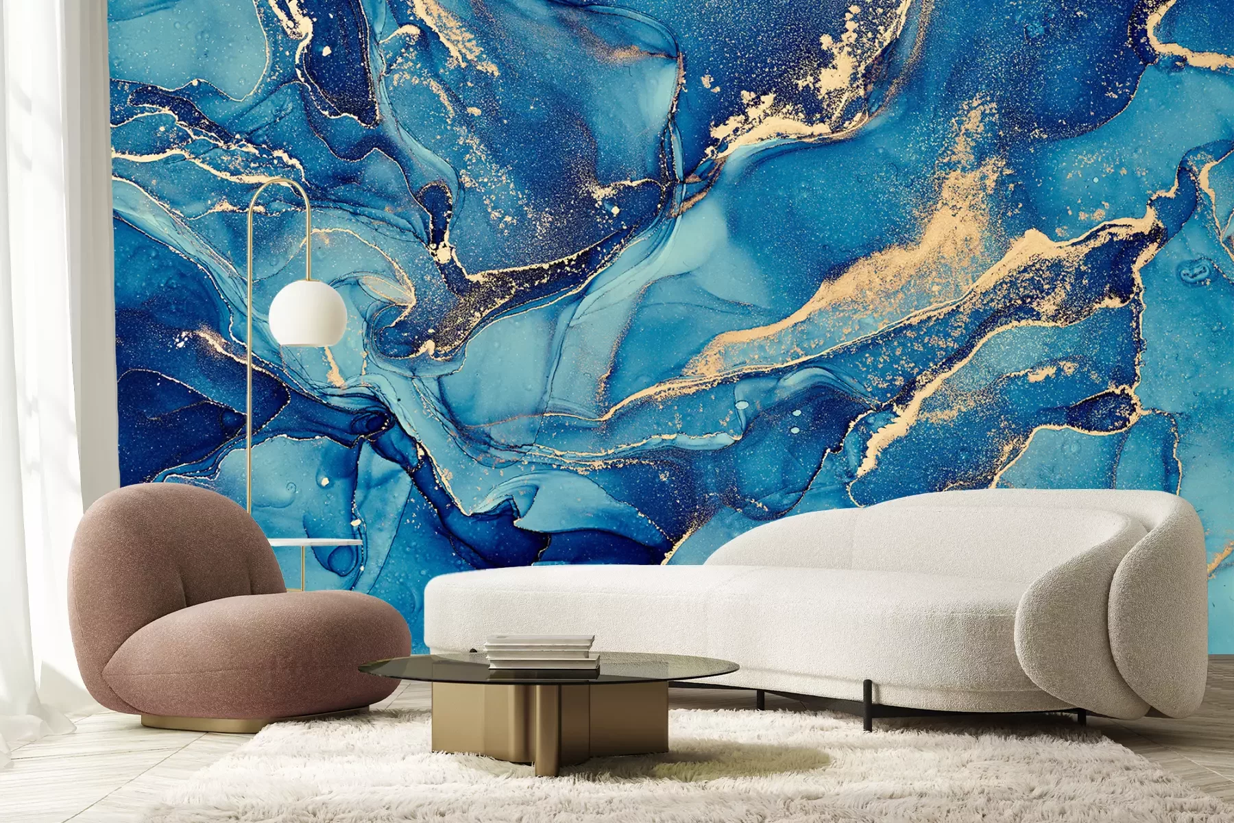 Turkoois aquarel marmeringFotobehang
