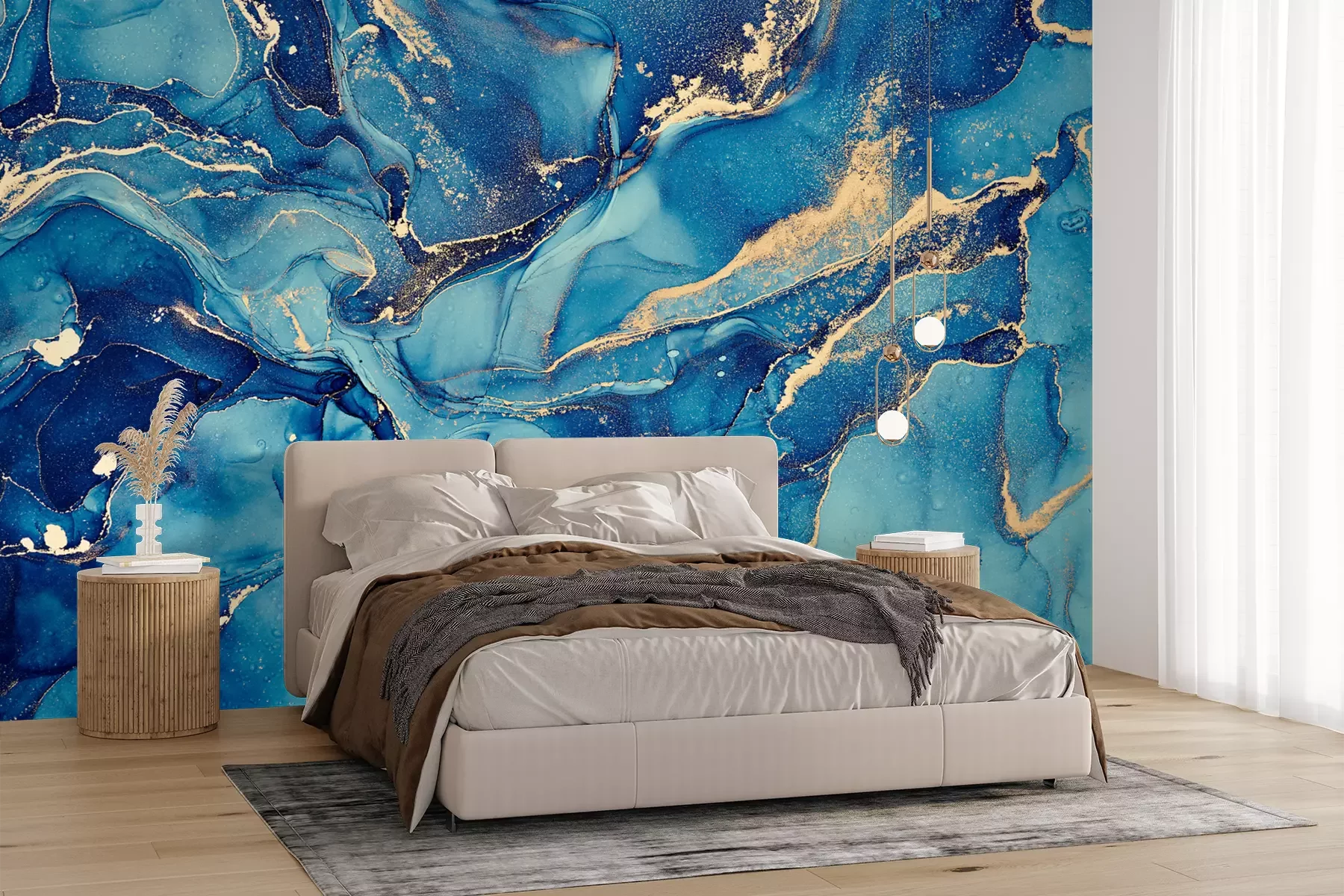 Het materiaal Premium+ is een gestructureerd vinyl op vlies met een gewicht van 255 g/m², dat kleine oneffenheden in de muur effectief camoufleert. De subtiele structuur van fijn zand geeft het oppervlak een exclusieve uitstraling, terwijl de halfmatte afwerking de diepte van de kleuren benadrukt. Het materiaal is dampdoorlatend, waardoor het ook in de keuken en badkamer kan worden gebruikt. De maximale breedte van één baan bedraagt 100 cm – bij grotere afmetingen wordt het fotobehang in meerdere gelijke banen verdeeld. De lijm wordt direct op de muur aangebracht en het behang wordt rand-aan-rand geplakt, wat zorgt voor een esthetisch resultaat zonder zichtbare naden. Het oppervlak kan gemakkelijk worden schoongemaakt door het voorzichtig af te nemen met een vochtige doek.