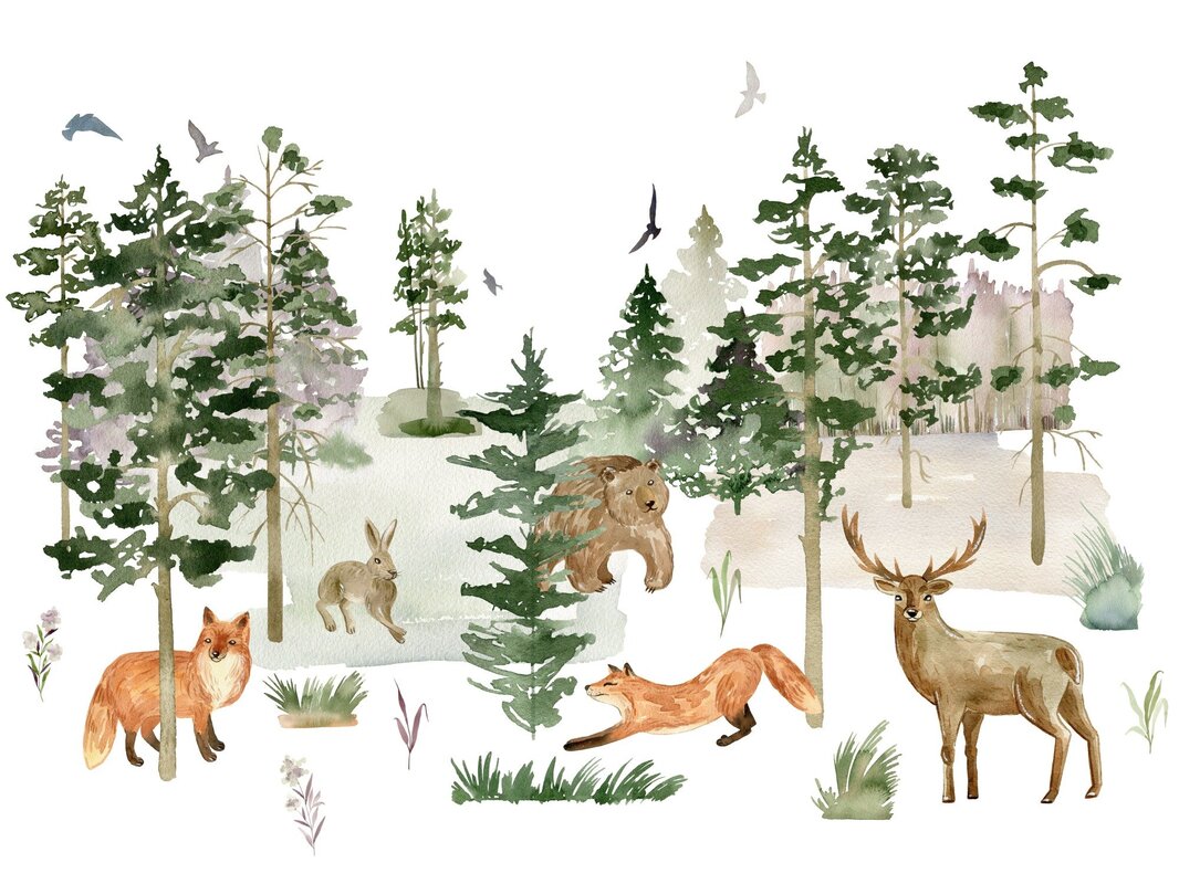 Fotobehang: Aquarel bosdieren met vossen voor kinderen