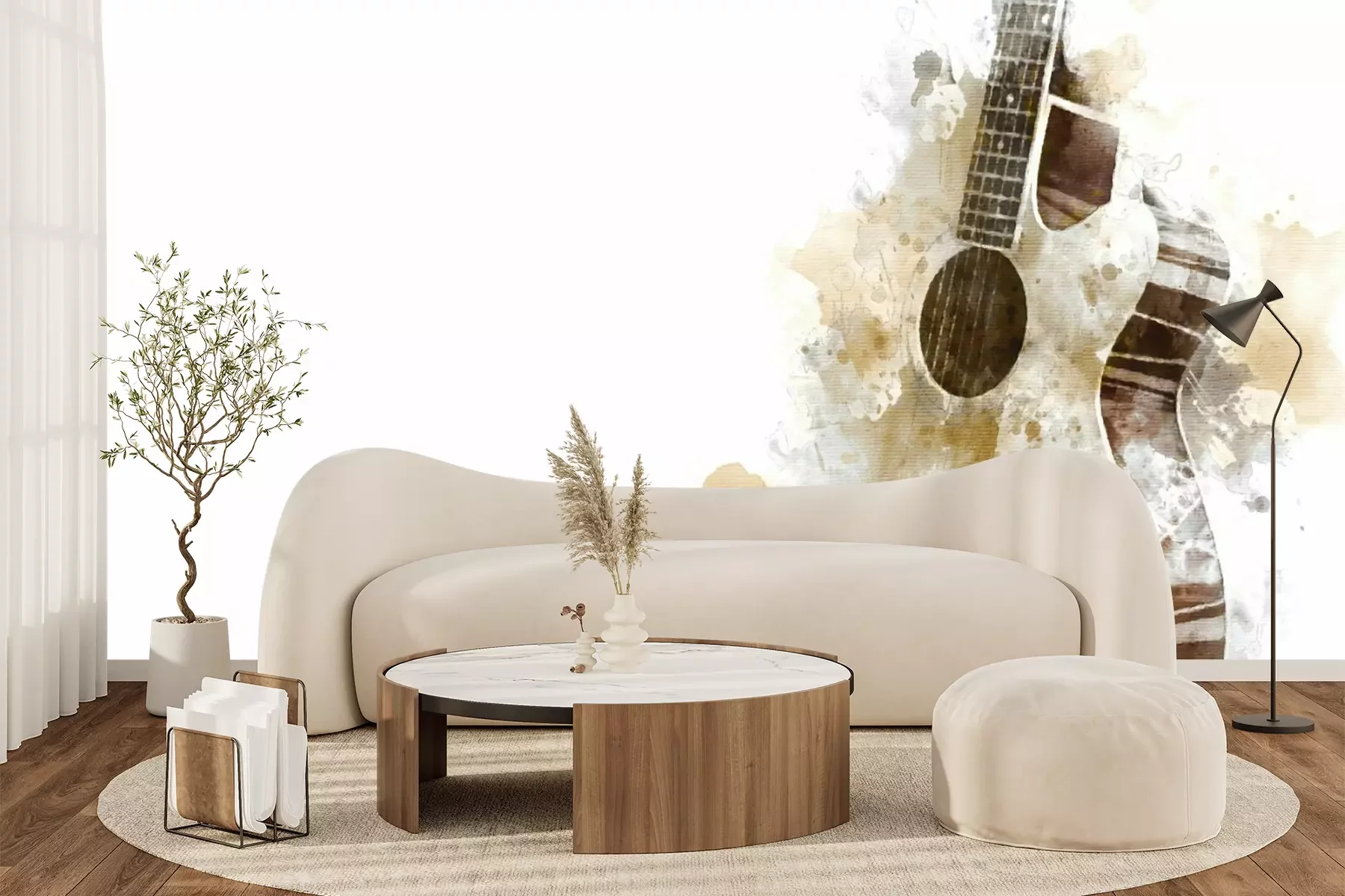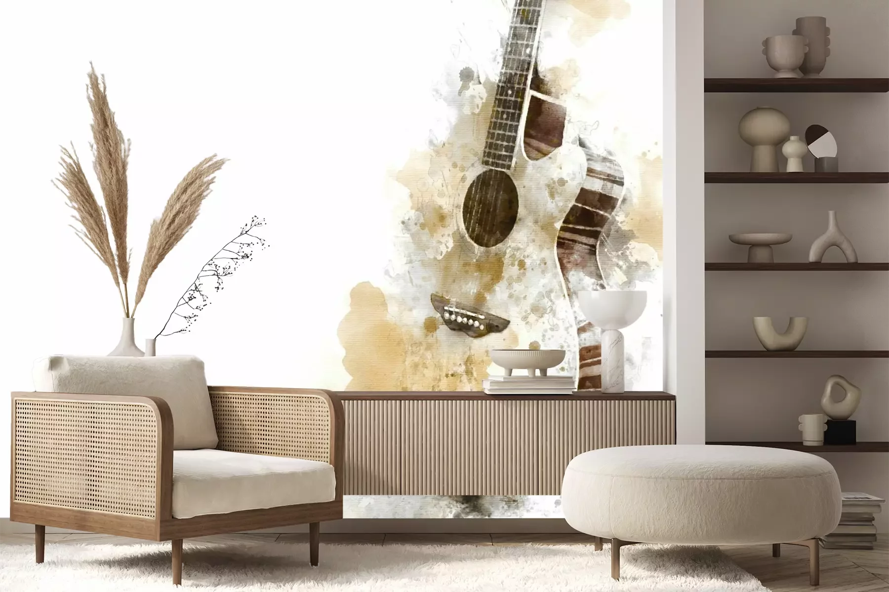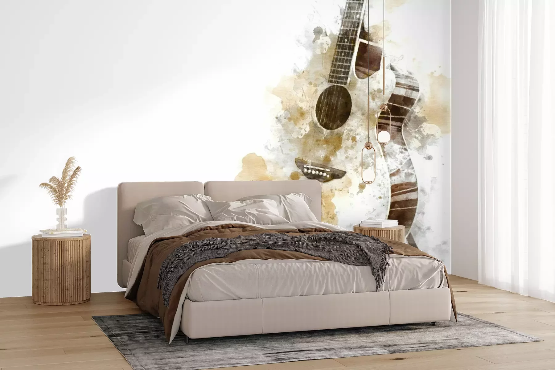 Het materiaal Premium+ is een gestructureerd vinyl op vlies met een gewicht van 255 g/m², dat kleine oneffenheden in de muur effectief camoufleert. De subtiele structuur van fijn zand geeft het oppervlak een exclusieve uitstraling, terwijl de halfmatte afwerking de diepte van de kleuren benadrukt. Het materiaal is dampdoorlatend, waardoor het ook in de keuken en badkamer kan worden gebruikt. De maximale breedte van één baan bedraagt 100 cm – bij grotere afmetingen wordt het fotobehang in meerdere gelijke banen verdeeld. De lijm wordt direct op de muur aangebracht en het behang wordt rand-aan-rand geplakt, wat zorgt voor een esthetisch resultaat zonder zichtbare naden. Het oppervlak kan gemakkelijk worden schoongemaakt door het voorzichtig af te nemen met een vochtige doek.