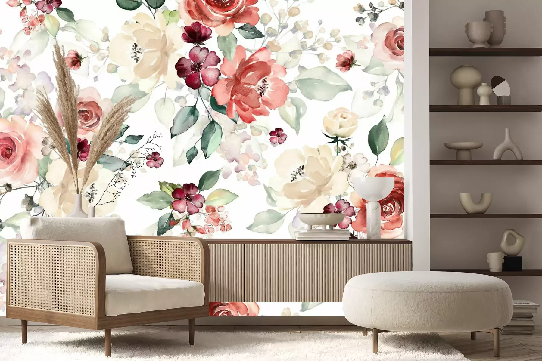 Het materiaal Premium+ is een gestructureerd vinyl op vlies met een gewicht van 255 g/m², dat kleine oneffenheden in de muur effectief camoufleert. De subtiele structuur van fijn zand geeft het oppervlak een exclusieve uitstraling, terwijl de halfmatte afwerking de diepte van de kleuren benadrukt. Het materiaal is dampdoorlatend, waardoor het ook in de keuken en badkamer kan worden gebruikt. De maximale breedte van één baan bedraagt 100 cm – bij grotere afmetingen wordt het fotobehang in meerdere gelijke banen verdeeld. De lijm wordt direct op de muur aangebracht en het behang wordt rand-aan-rand geplakt, wat zorgt voor een esthetisch resultaat zonder zichtbare naden. Het oppervlak kan gemakkelijk worden schoongemaakt door het voorzichtig af te nemen met een vochtige doek.