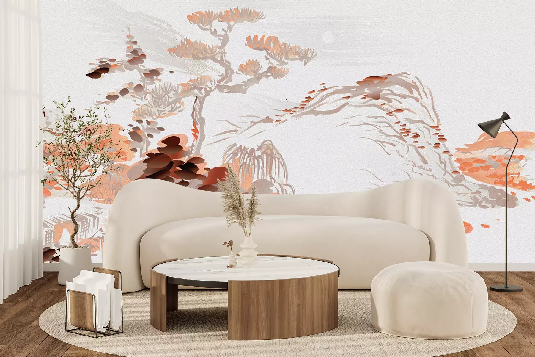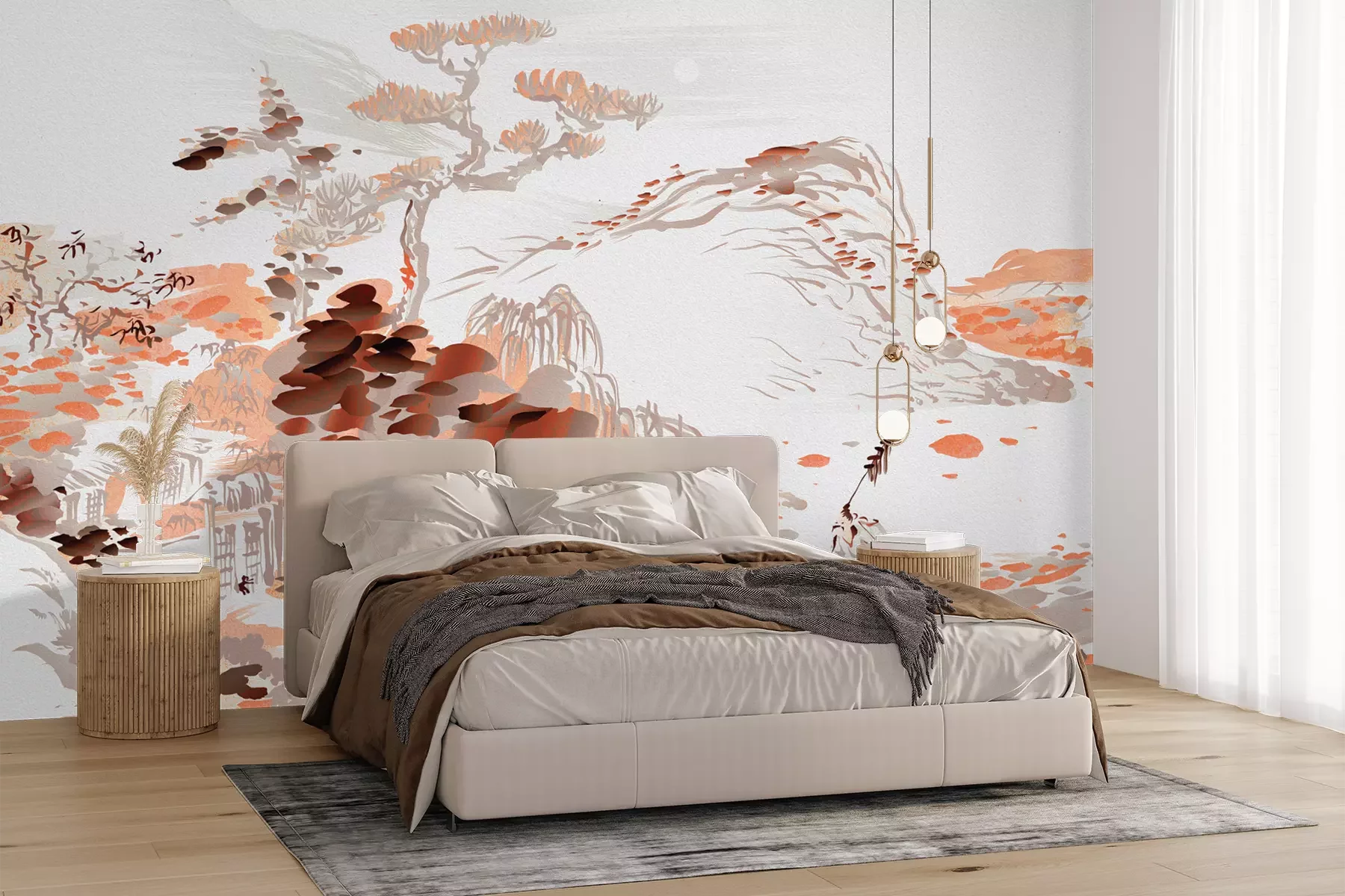 Het materiaal Premium+ is een gestructureerd vinyl op vlies met een gewicht van 255 g/m², dat kleine oneffenheden in de muur effectief camoufleert. De subtiele structuur van fijn zand geeft het oppervlak een exclusieve uitstraling, terwijl de halfmatte afwerking de diepte van de kleuren benadrukt. Het materiaal is dampdoorlatend, waardoor het ook in de keuken en badkamer kan worden gebruikt. De maximale breedte van één baan bedraagt 100 cm – bij grotere afmetingen wordt het fotobehang in meerdere gelijke banen verdeeld. De lijm wordt direct op de muur aangebracht en het behang wordt rand-aan-rand geplakt, wat zorgt voor een esthetisch resultaat zonder zichtbare naden. Het oppervlak kan gemakkelijk worden schoongemaakt door het voorzichtig af te nemen met een vochtige doek.