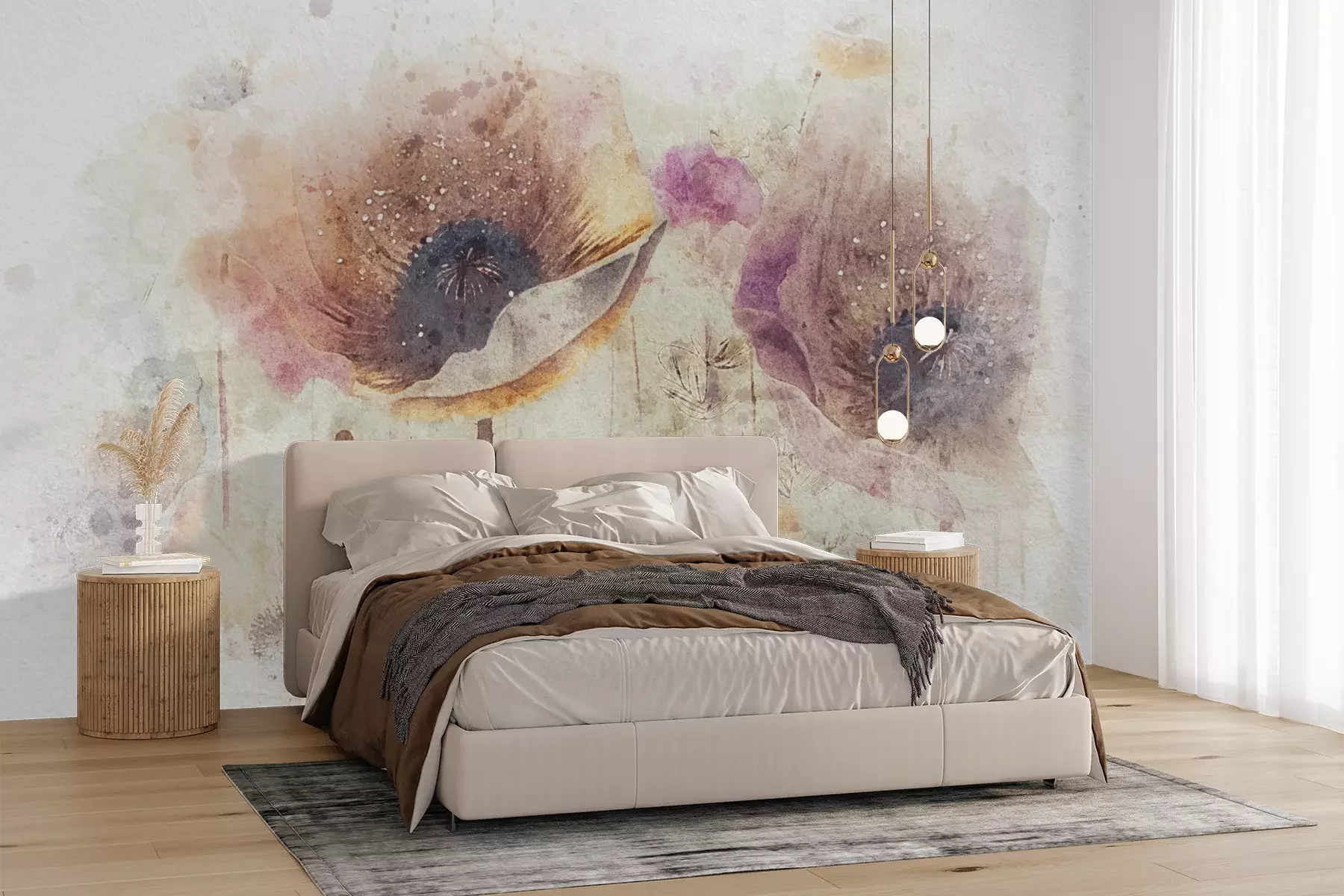 Het materiaal Premium+ is een gestructureerd vinyl op vlies met een gewicht van 255 g/m², dat kleine oneffenheden in de muur effectief camoufleert. De subtiele structuur van fijn zand geeft het oppervlak een exclusieve uitstraling, terwijl de halfmatte afwerking de diepte van de kleuren benadrukt. Het materiaal is dampdoorlatend, waardoor het ook in de keuken en badkamer kan worden gebruikt. De maximale breedte van één baan bedraagt 100 cm – bij grotere afmetingen wordt het fotobehang in meerdere gelijke banen verdeeld. De lijm wordt direct op de muur aangebracht en het behang wordt rand-aan-rand geplakt, wat zorgt voor een esthetisch resultaat zonder zichtbare naden. Het oppervlak kan gemakkelijk worden schoongemaakt door het voorzichtig af te nemen met een vochtige doek.