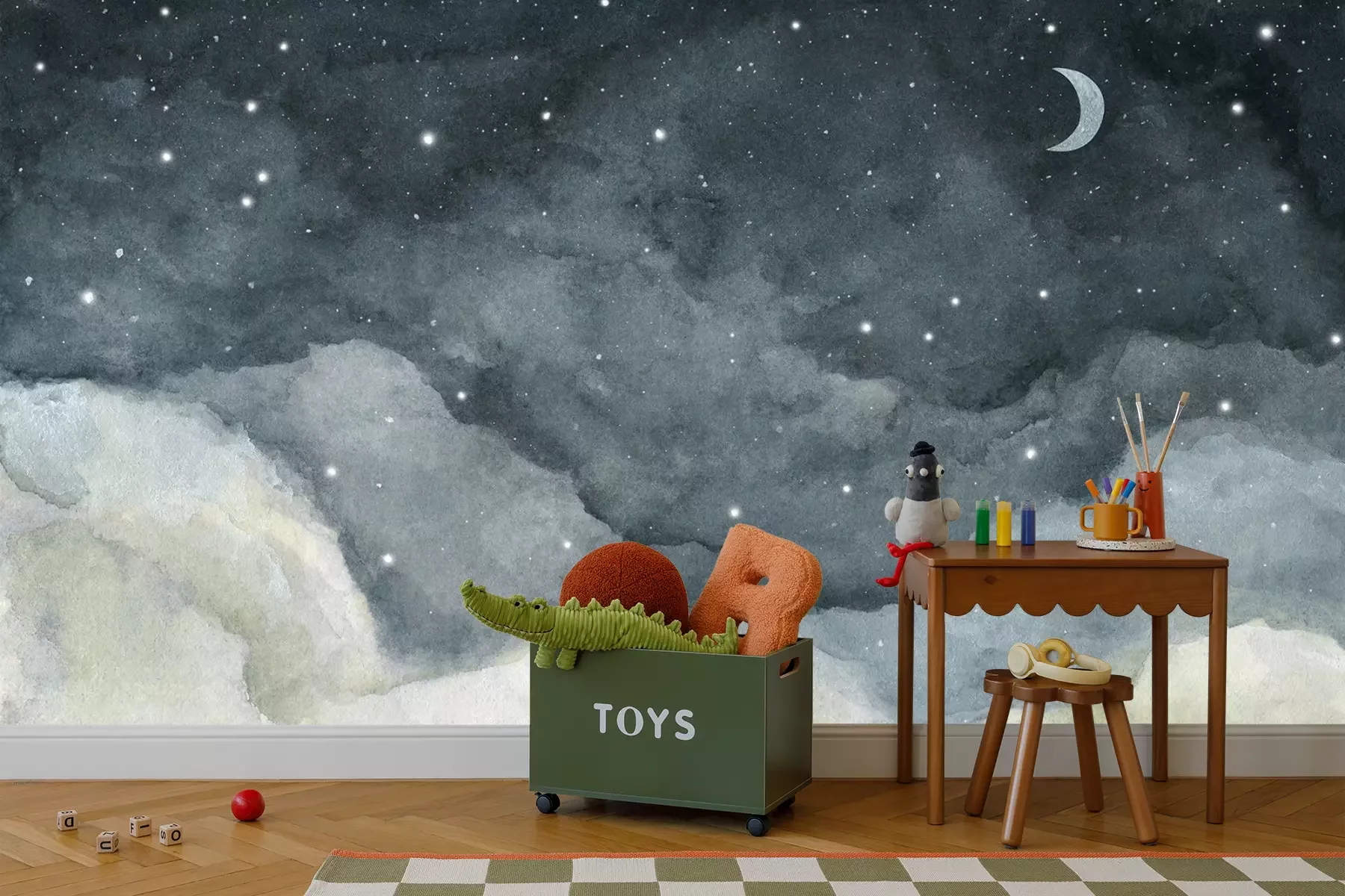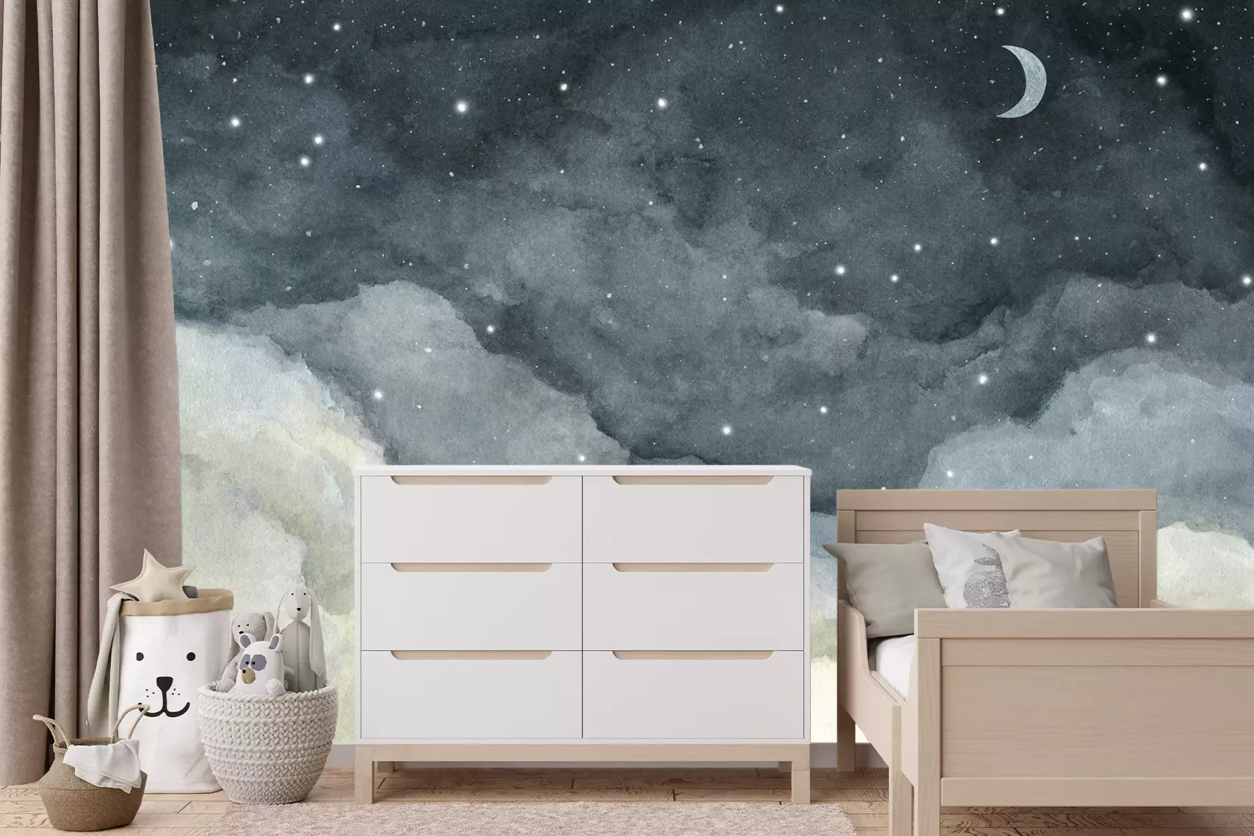 Het materiaal Premium+ is een gestructureerd vinyl op vlies met een gewicht van 255 g/m², dat kleine oneffenheden in de muur effectief camoufleert. De subtiele structuur van fijn zand geeft het oppervlak een exclusieve uitstraling, terwijl de halfmatte afwerking de diepte van de kleuren benadrukt. Het materiaal is dampdoorlatend, waardoor het ook in de keuken en badkamer kan worden gebruikt. De maximale breedte van één baan bedraagt 100 cm – bij grotere afmetingen wordt het fotobehang in meerdere gelijke banen verdeeld. De lijm wordt direct op de muur aangebracht en het behang wordt rand-aan-rand geplakt, wat zorgt voor een esthetisch resultaat zonder zichtbare naden. Het oppervlak kan gemakkelijk worden schoongemaakt door het voorzichtig af te nemen met een vochtige doek.