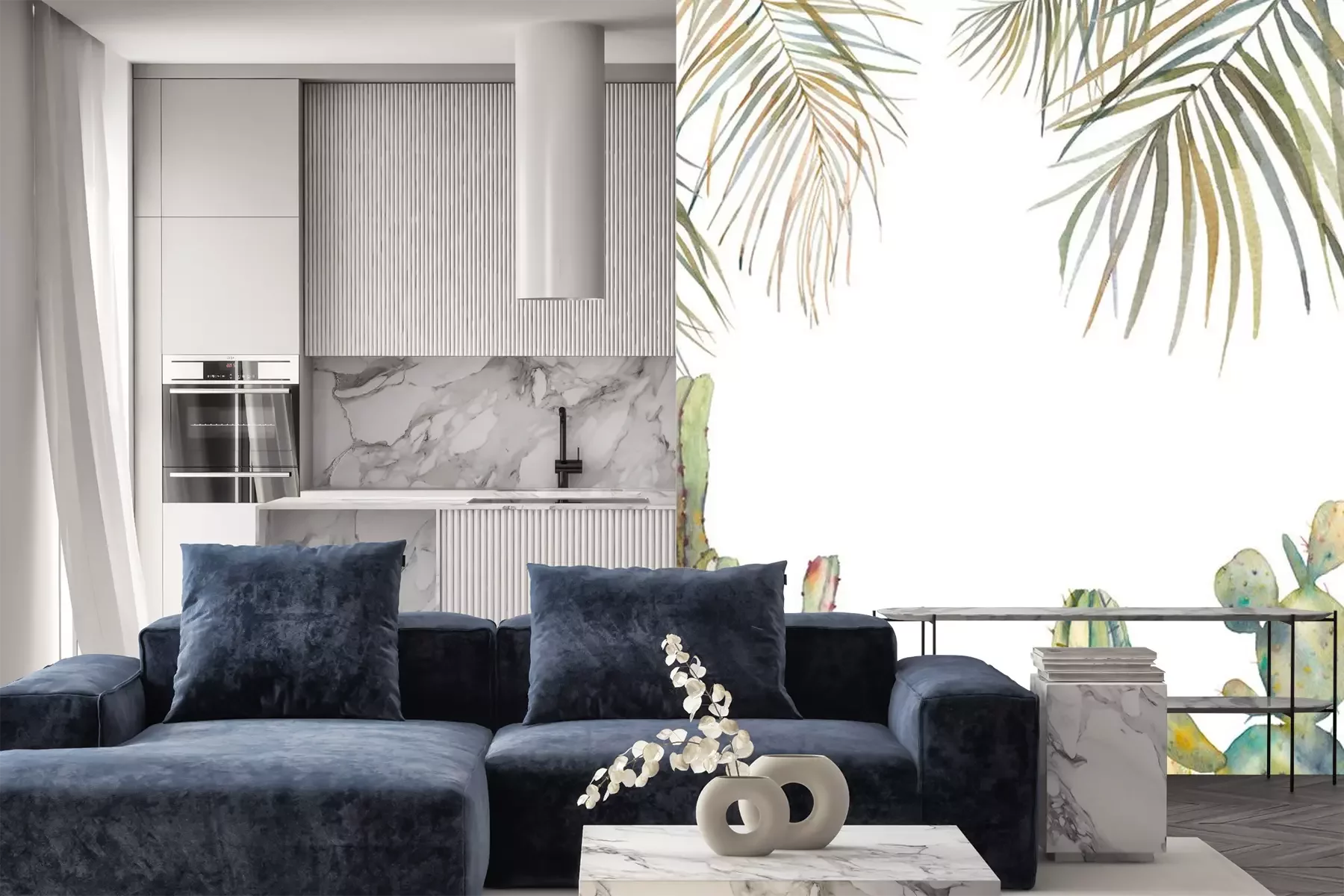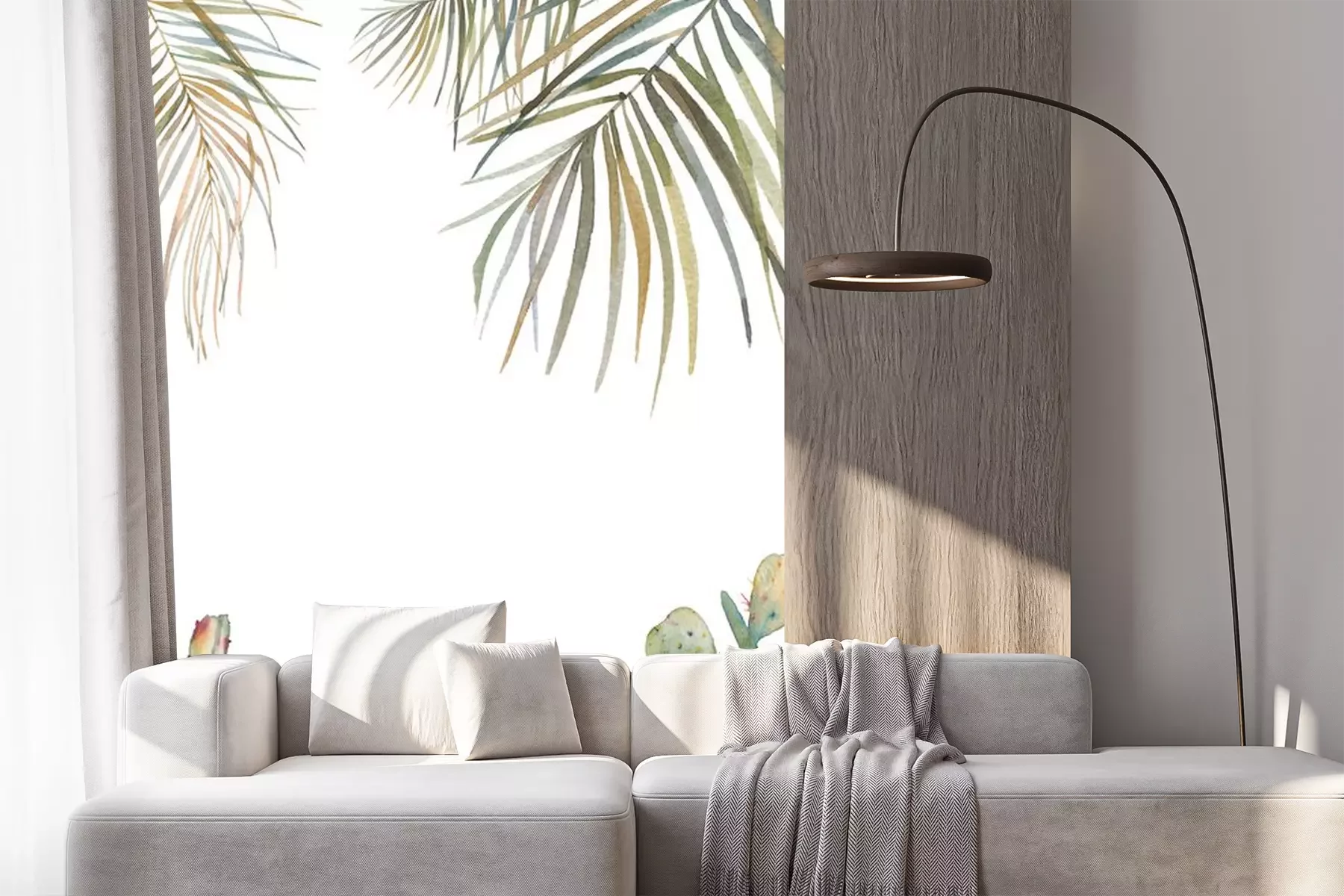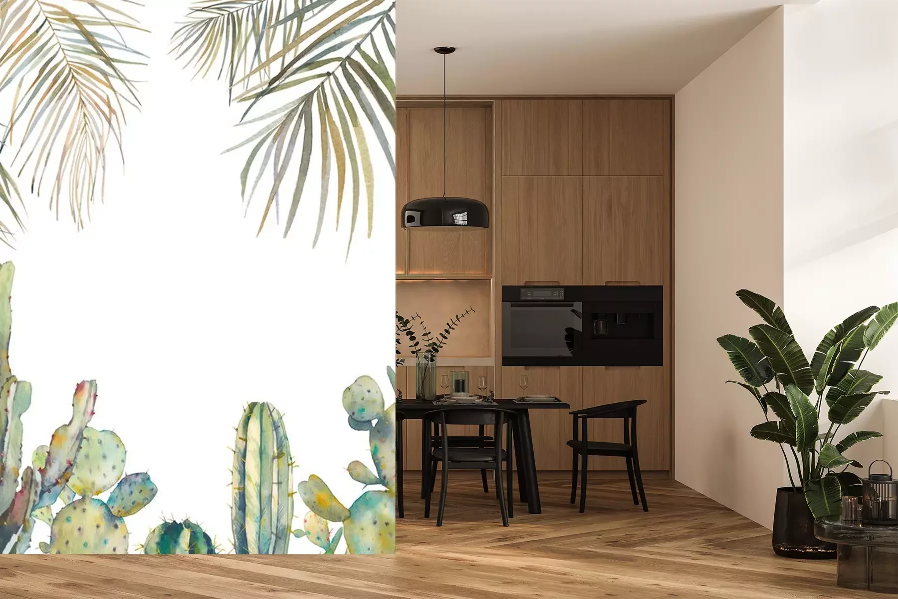 Fotobehang Aquarel palmbladeren en cactussen