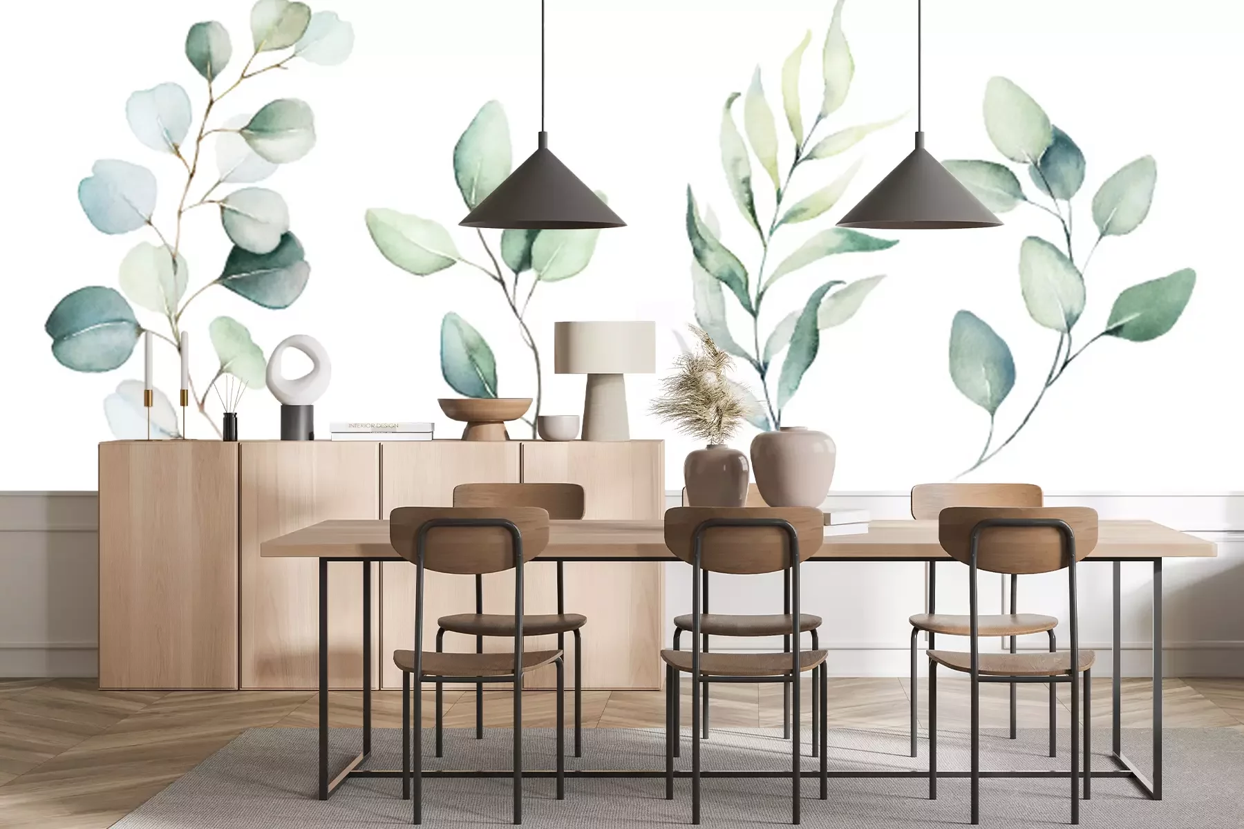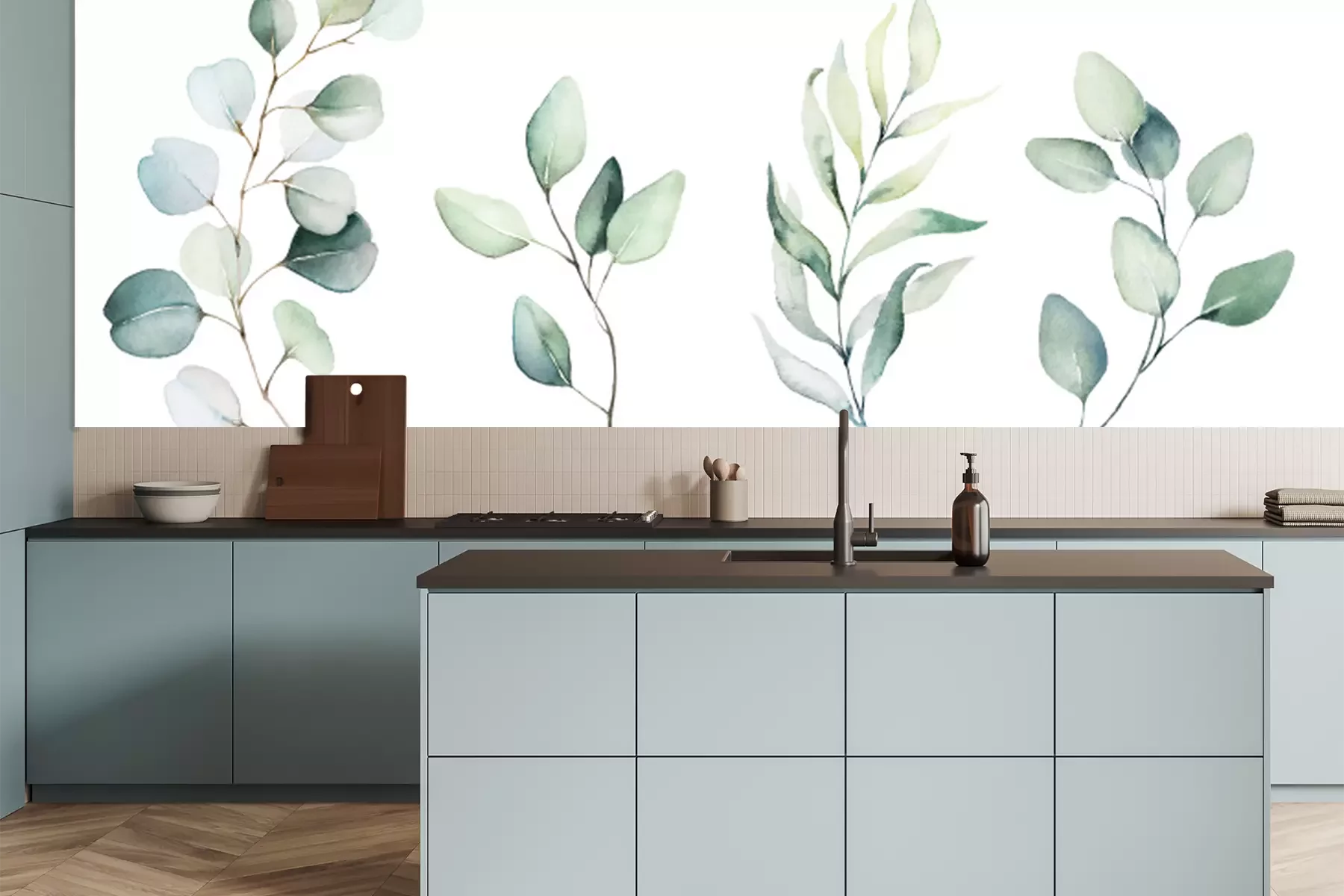 Eucalyptus planten geschilderd in aquarelFotobehang