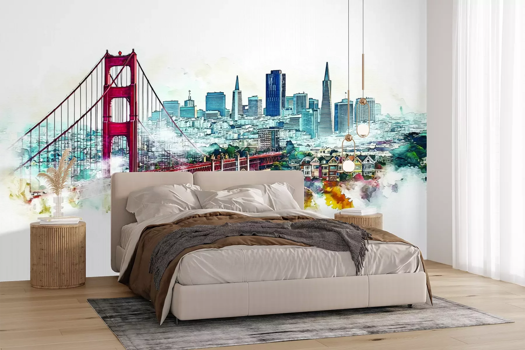 Het materiaal Premium+ is een gestructureerd vinyl op vlies met een gewicht van 255 g/m², dat kleine oneffenheden in de muur effectief camoufleert. De subtiele structuur van fijn zand geeft het oppervlak een exclusieve uitstraling, terwijl de halfmatte afwerking de diepte van de kleuren benadrukt. Het materiaal is dampdoorlatend, waardoor het ook in de keuken en badkamer kan worden gebruikt. De maximale breedte van één baan bedraagt 100 cm – bij grotere afmetingen wordt het fotobehang in meerdere gelijke banen verdeeld. De lijm wordt direct op de muur aangebracht en het behang wordt rand-aan-rand geplakt, wat zorgt voor een esthetisch resultaat zonder zichtbare naden. Het oppervlak kan gemakkelijk worden schoongemaakt door het voorzichtig af te nemen met een vochtige doek.