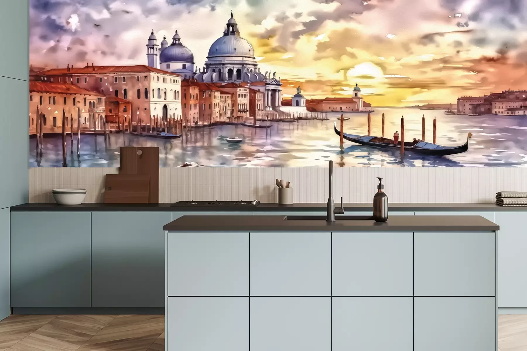 Het materiaal Premium is een glad vinyl op vlies, dat bestand is tegen uitrekken en vervorming. Het is dampdoorlatend – de muren kunnen vrij ademen – waardoor het geschikt is voor gebruik in de keuken en badkamer. Bij vervuiling kan het materiaal worden afgenomen met een vochtige doek. De maximale breedte van één baan bedraagt 95 of 105 cm, afhankelijk van de beschikbaarheid. Montage vindt plaats met de rand-aan-rand methode, wat een esthetisch resultaat zonder zichtbare naden oplevert. Omdat de lijm rechtstreeks op de muur wordt aangebracht, verloopt de installatie van het fotobehang snel en eenvoudig.