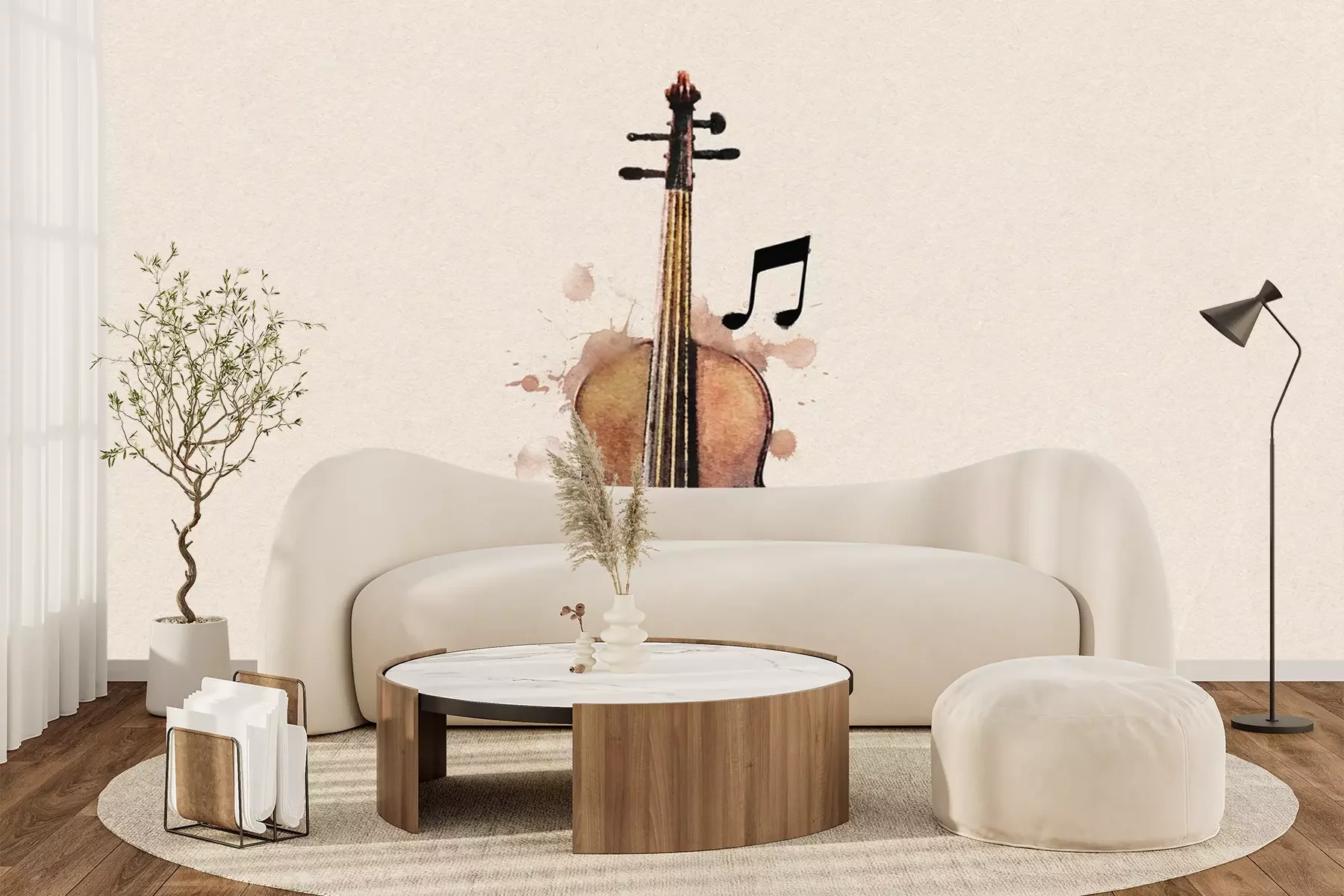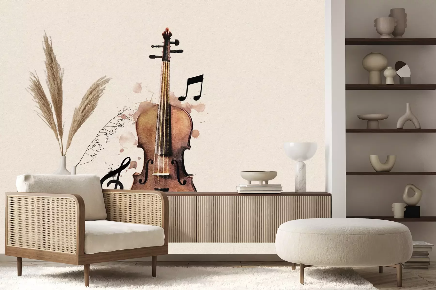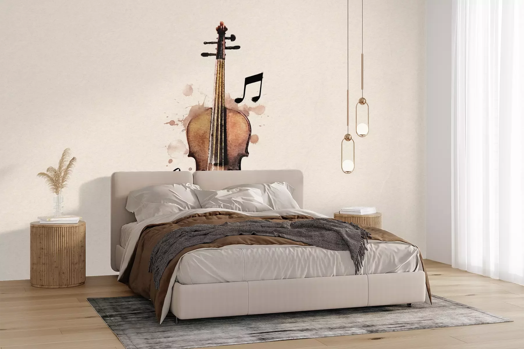Het materiaal Premium+ is een gestructureerd vinyl op vlies met een gewicht van 255 g/m², dat kleine oneffenheden in de muur effectief camoufleert. De subtiele structuur van fijn zand geeft het oppervlak een exclusieve uitstraling, terwijl de halfmatte afwerking de diepte van de kleuren benadrukt. Het materiaal is dampdoorlatend, waardoor het ook in de keuken en badkamer kan worden gebruikt. De maximale breedte van één baan bedraagt 100 cm – bij grotere afmetingen wordt het fotobehang in meerdere gelijke banen verdeeld. De lijm wordt direct op de muur aangebracht en het behang wordt rand-aan-rand geplakt, wat zorgt voor een esthetisch resultaat zonder zichtbare naden. Het oppervlak kan gemakkelijk worden schoongemaakt door het voorzichtig af te nemen met een vochtige doek.