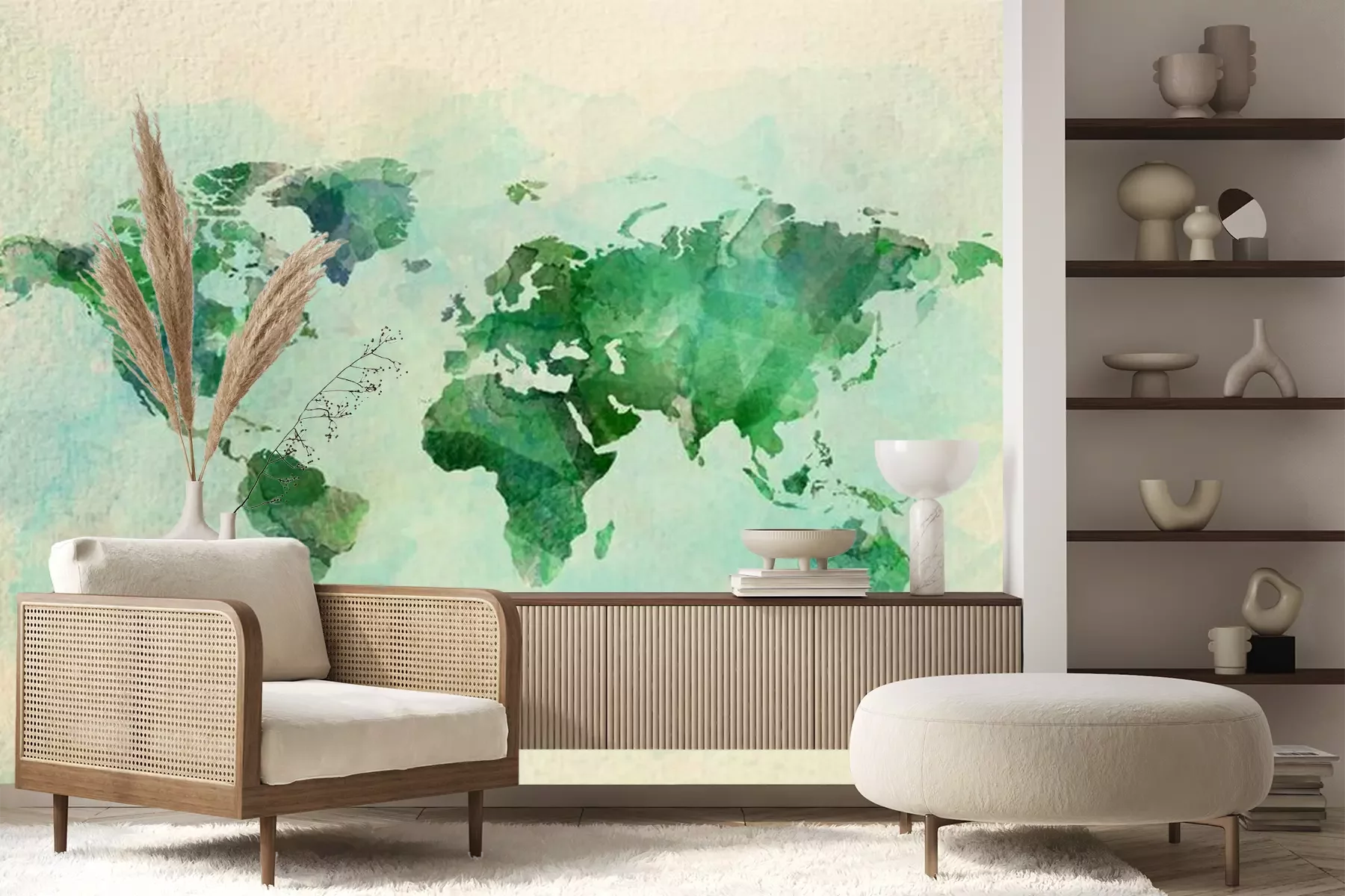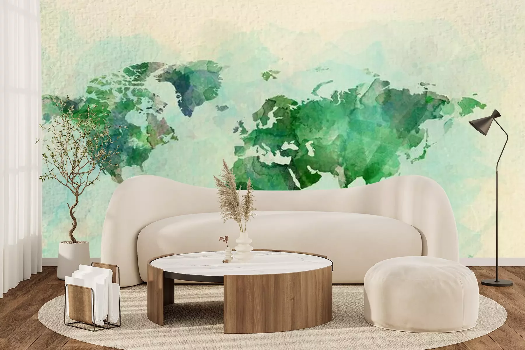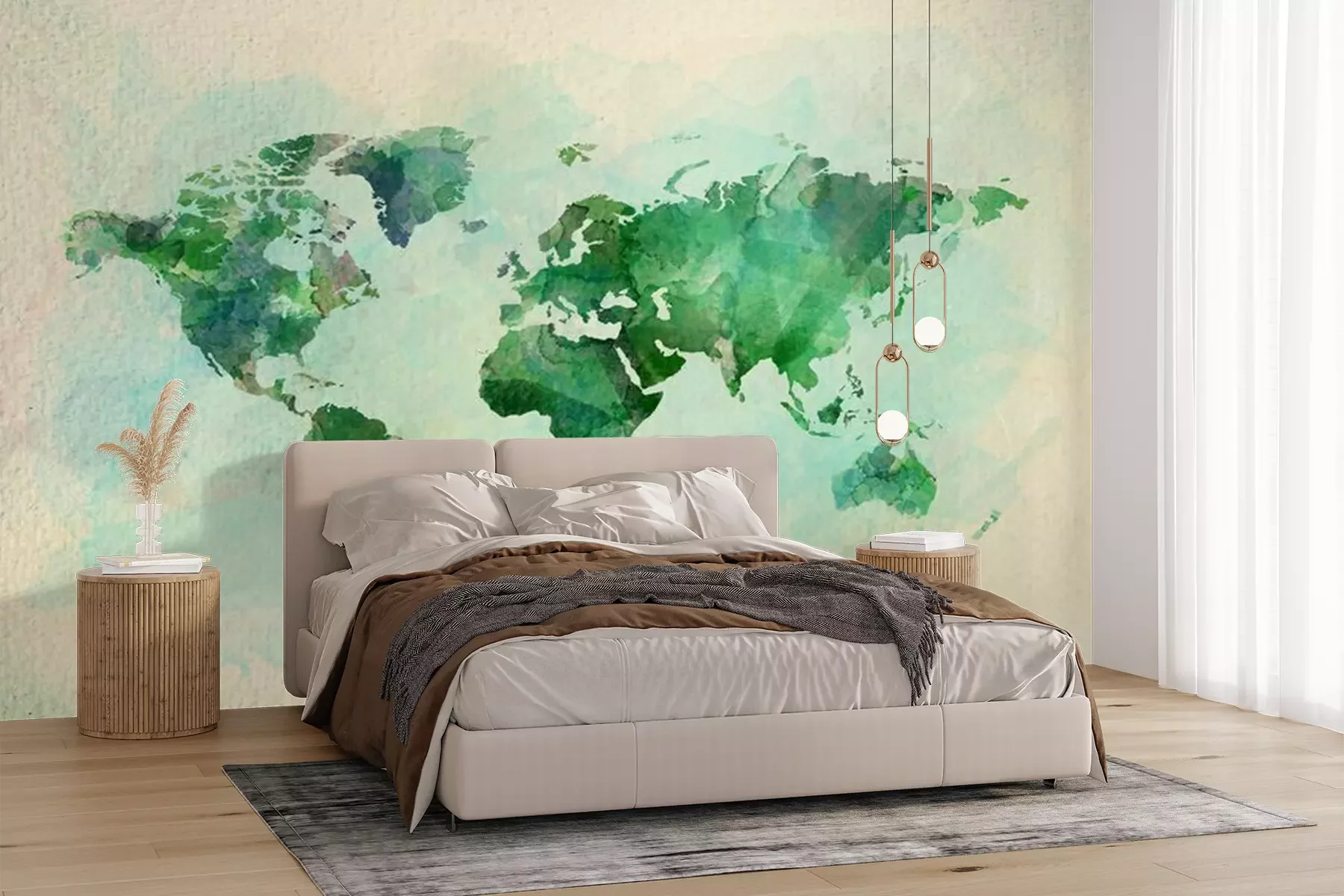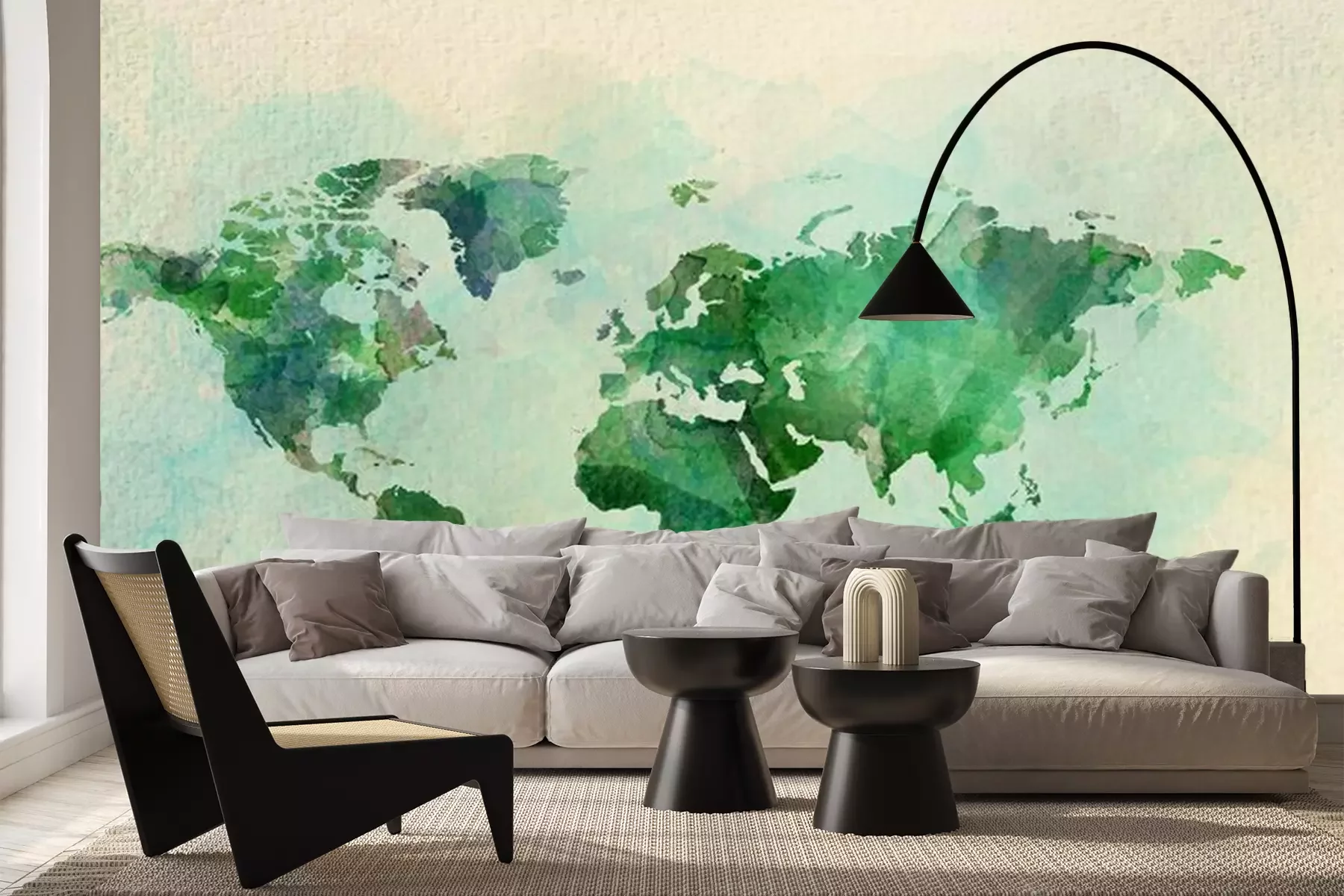 Fotobehang Aquarel wereldkaart in vintage stijl