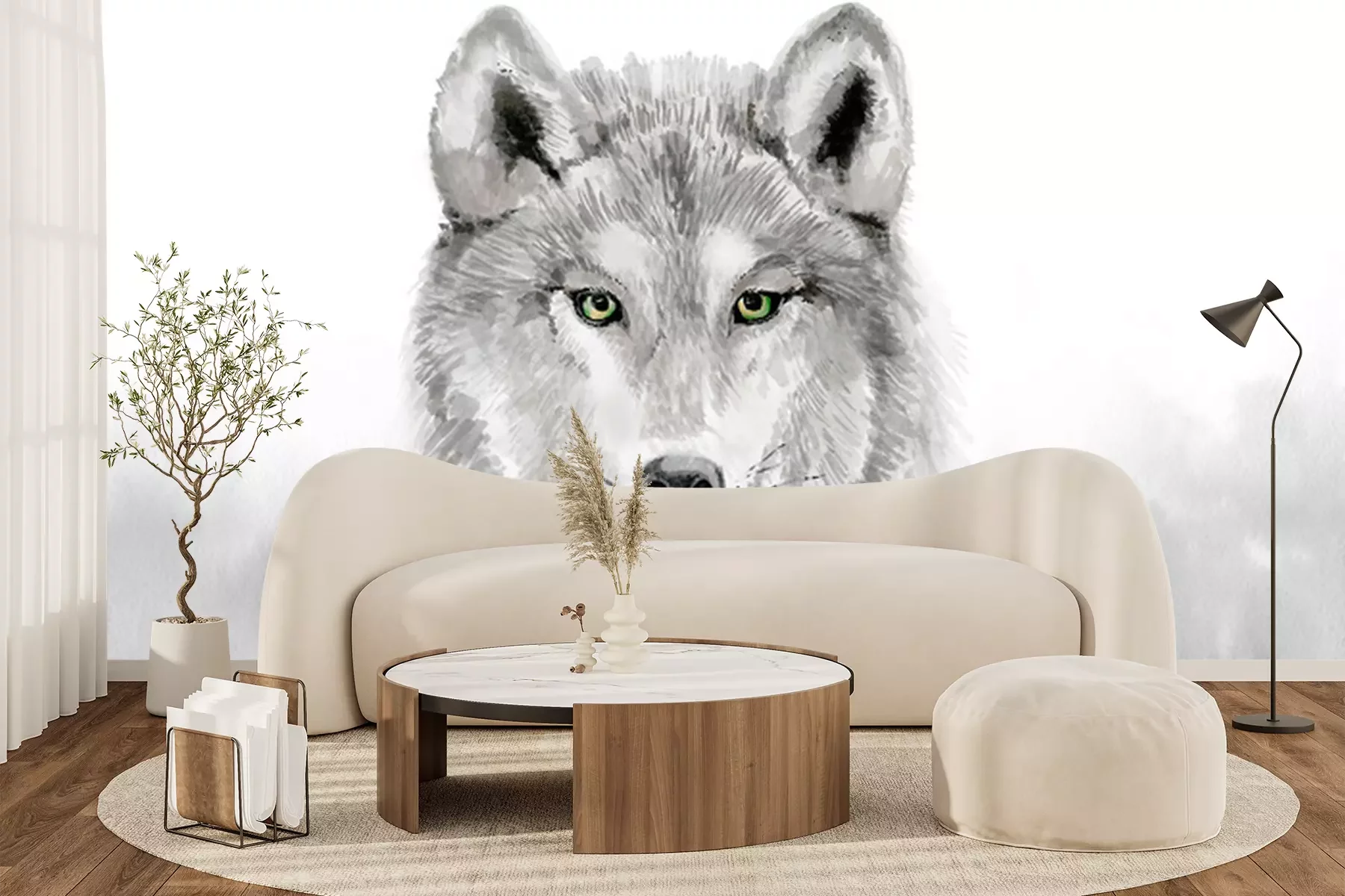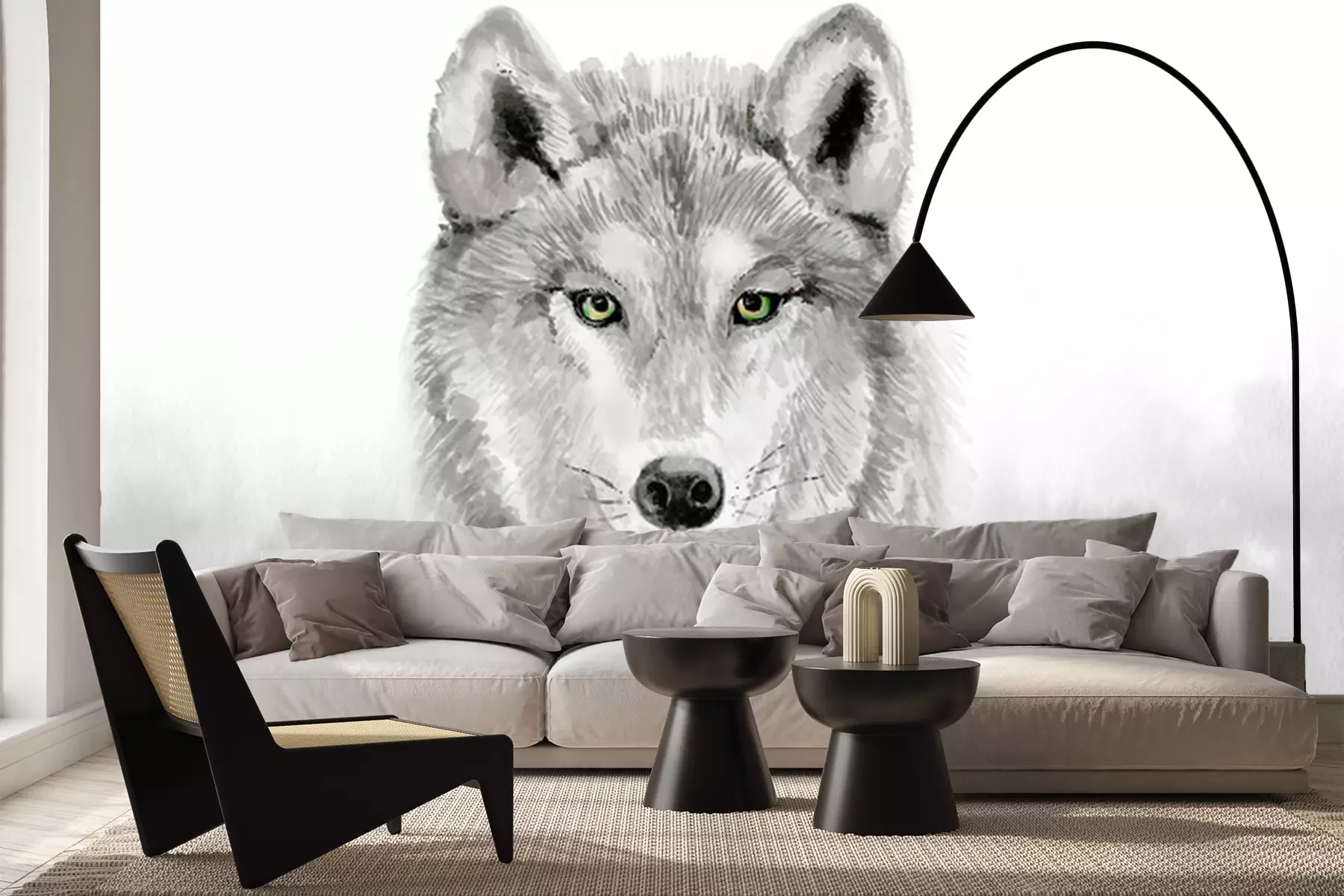 Fotobehang Aquarel wolf in grijstinten