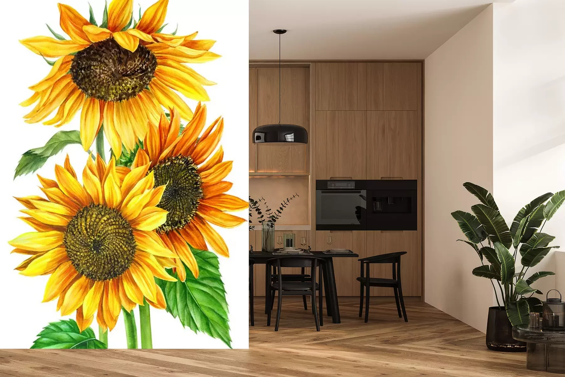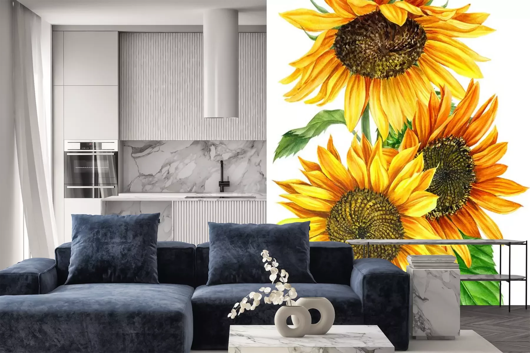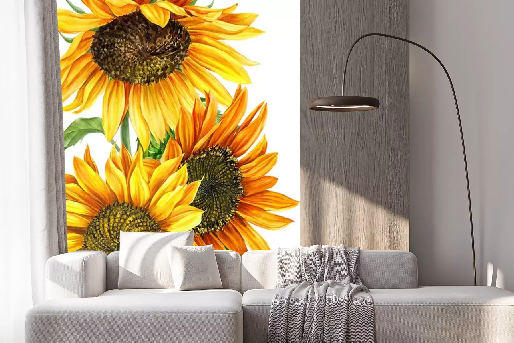 Fotobehang Aquarel zonnebloemen op witte achtergrond