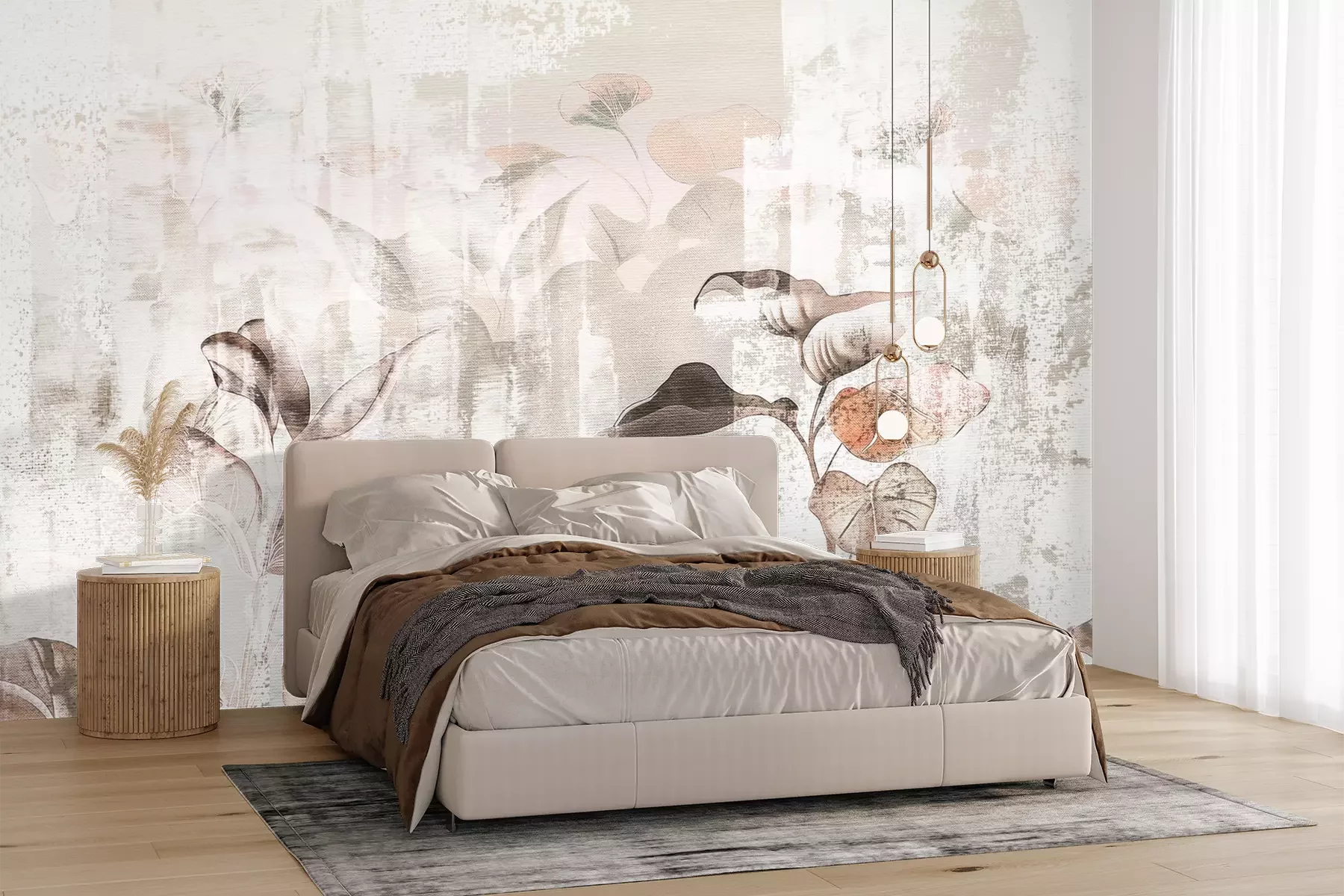 Het materiaal Premium+ is een gestructureerd vinyl op vlies met een gewicht van 255 g/m², dat kleine oneffenheden in de muur effectief camoufleert. De subtiele structuur van fijn zand geeft het oppervlak een exclusieve uitstraling, terwijl de halfmatte afwerking de diepte van de kleuren benadrukt. Het materiaal is dampdoorlatend, waardoor het ook in de keuken en badkamer kan worden gebruikt. De maximale breedte van één baan bedraagt 100 cm – bij grotere afmetingen wordt het fotobehang in meerdere gelijke banen verdeeld. De lijm wordt direct op de muur aangebracht en het behang wordt rand-aan-rand geplakt, wat zorgt voor een esthetisch resultaat zonder zichtbare naden. Het oppervlak kan gemakkelijk worden schoongemaakt door het voorzichtig af te nemen met een vochtige doek.