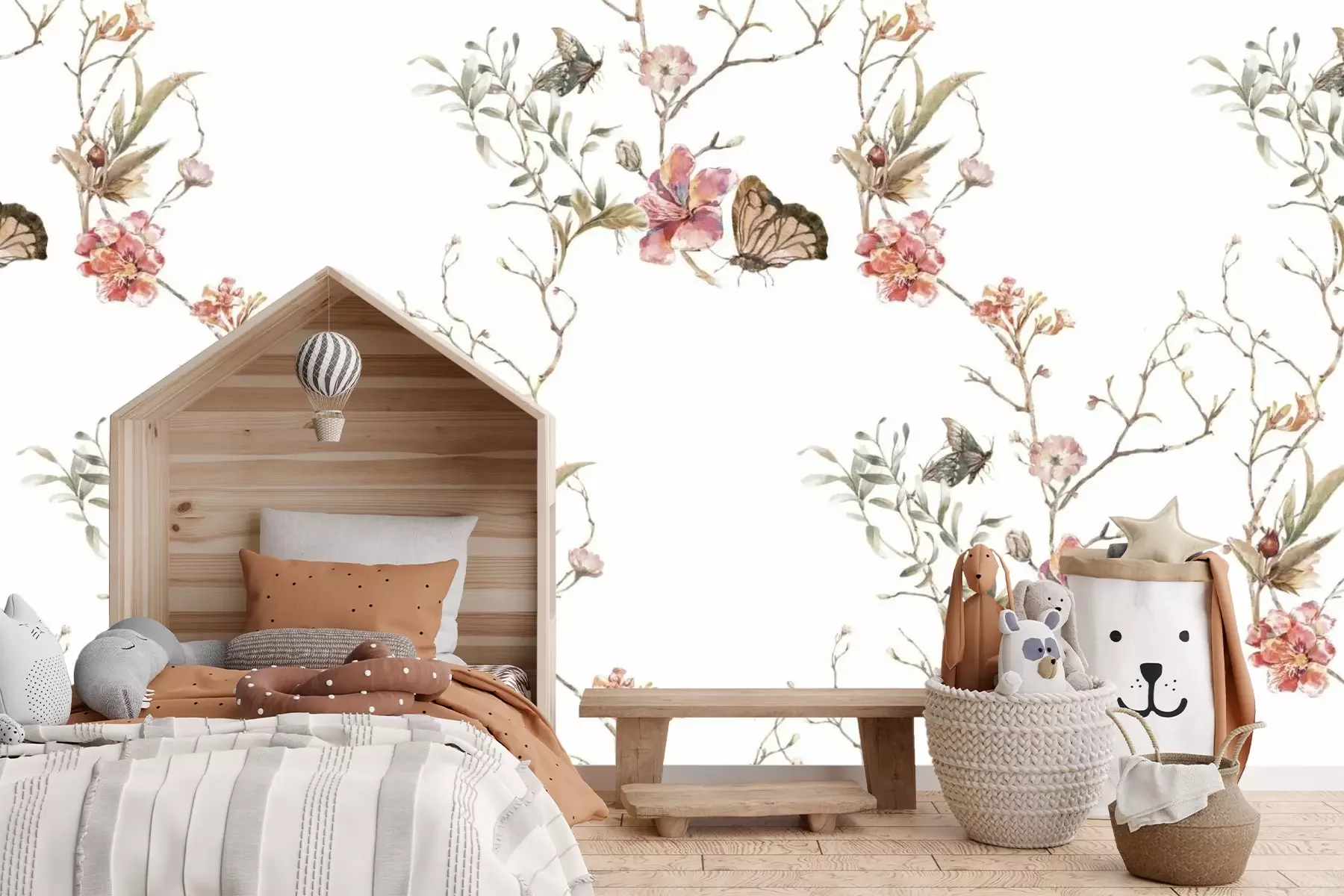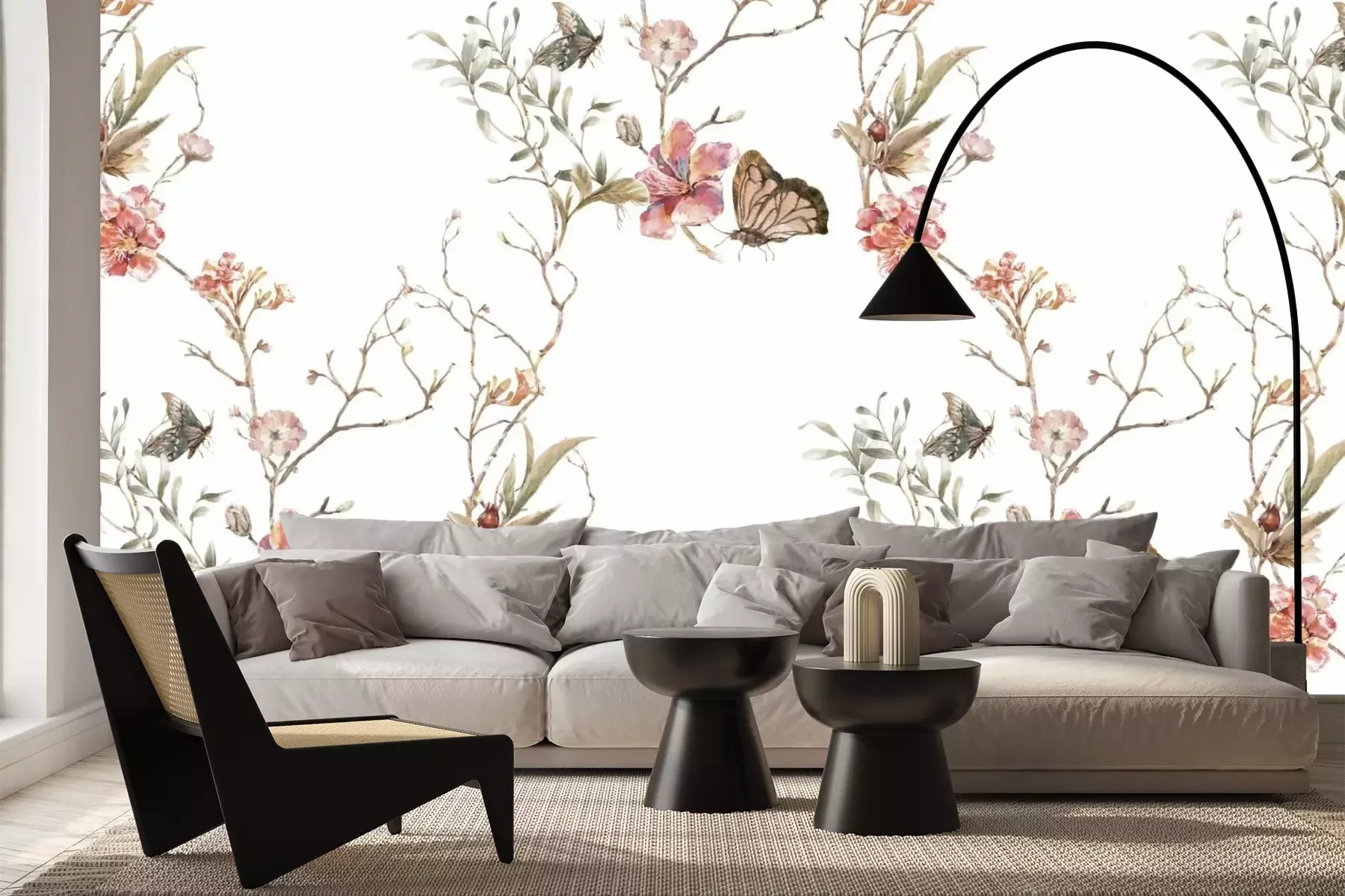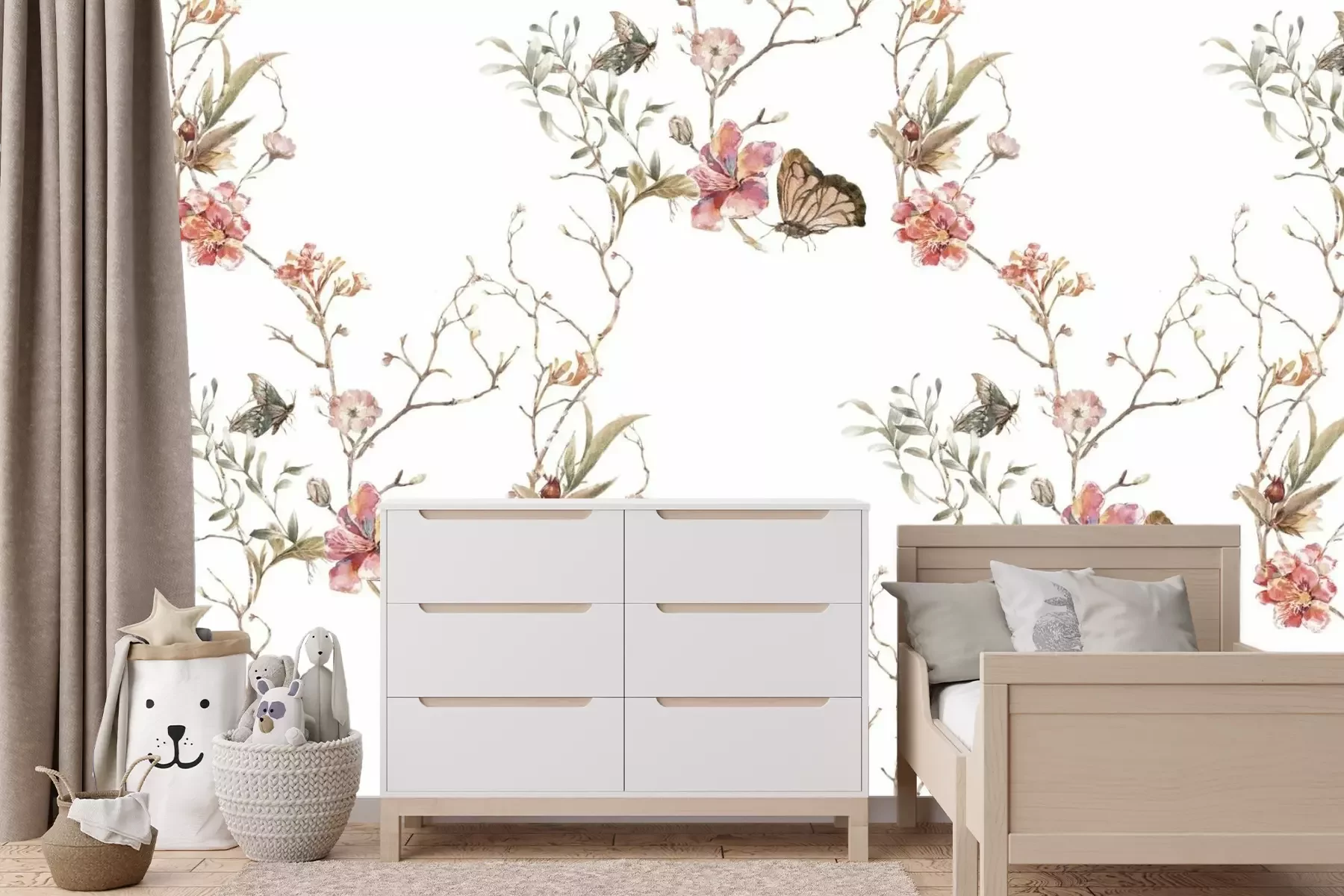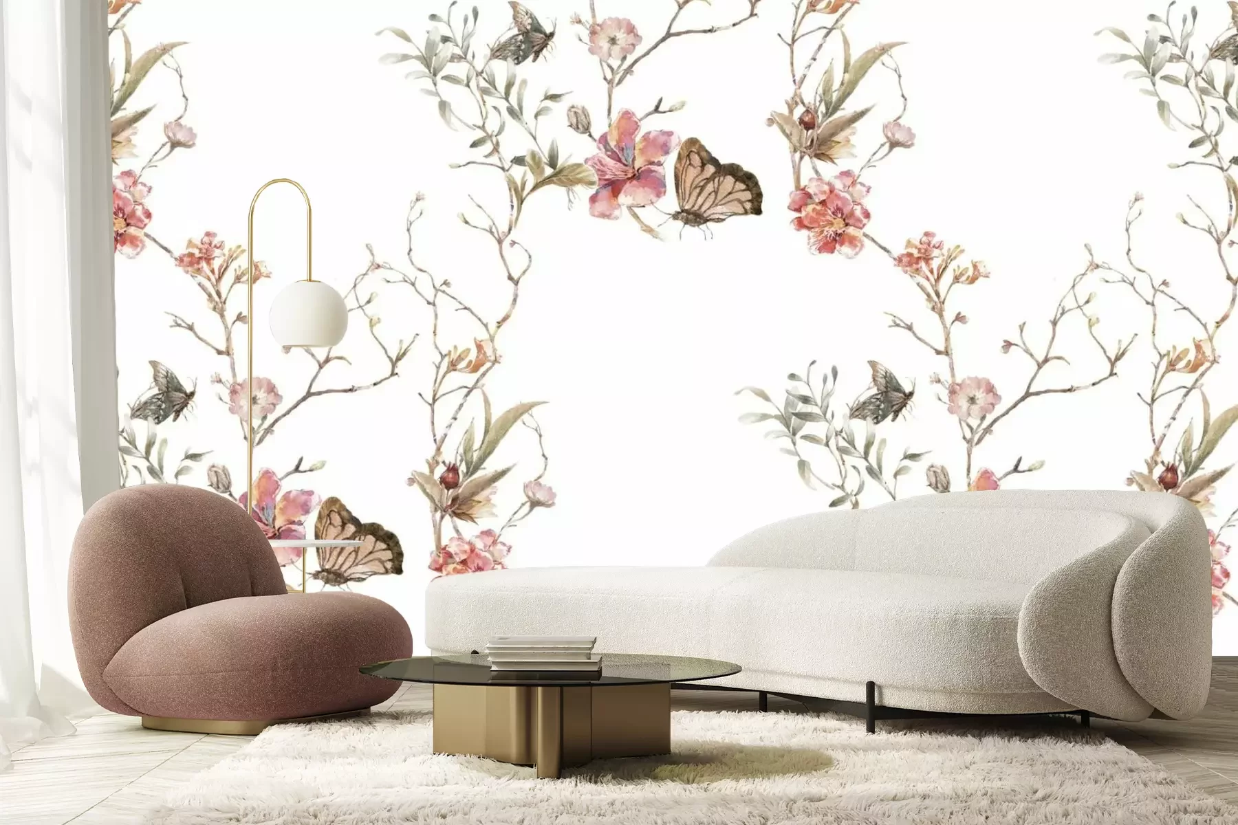 Aquarelbloemen op takken en vlinders botanisch patroon