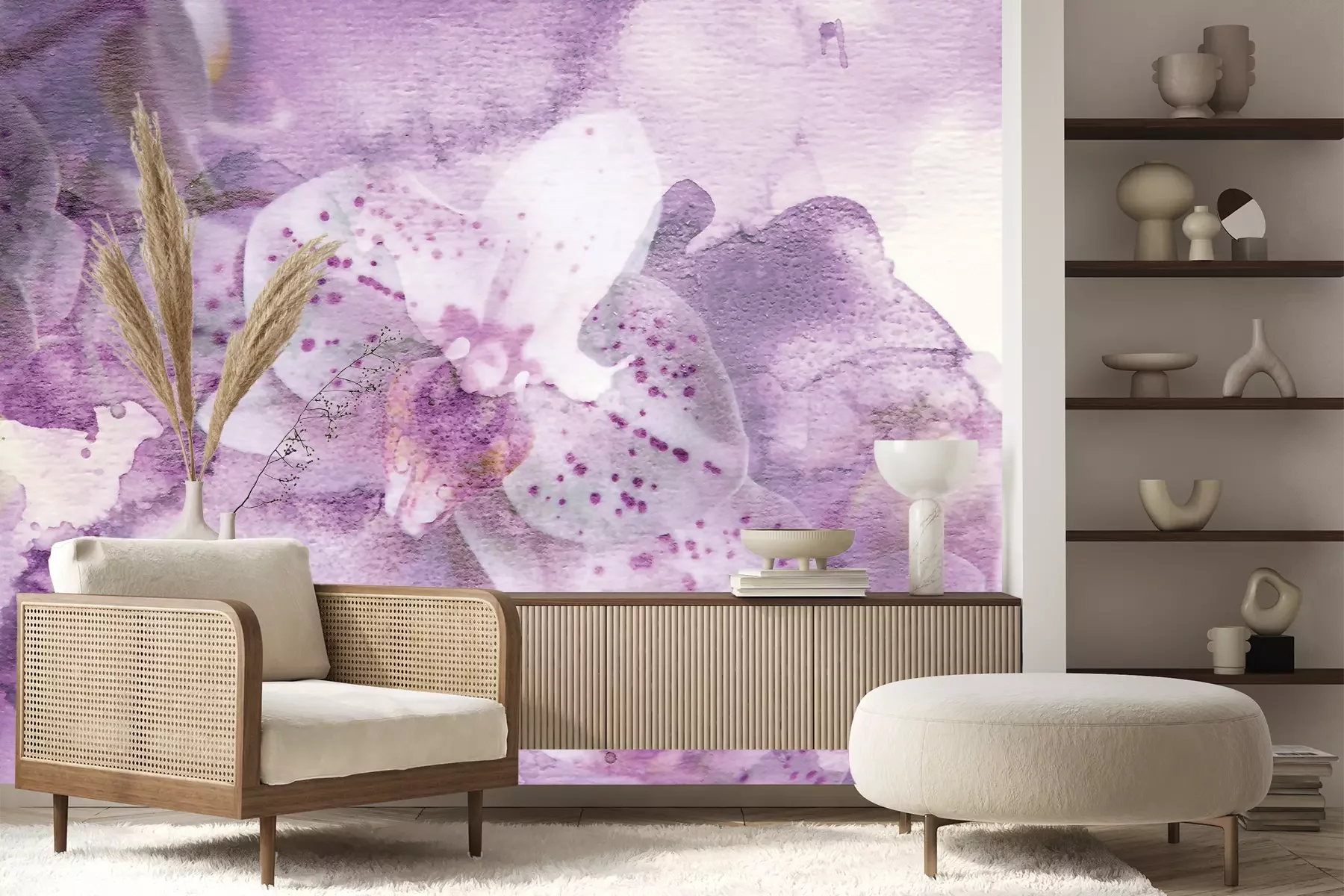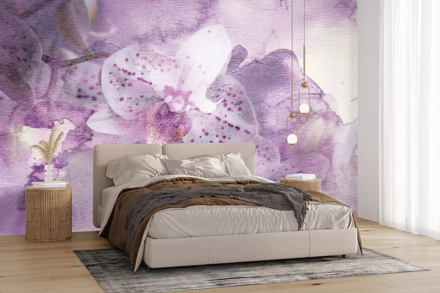 Het materiaal Premium+ is een gestructureerd vinyl op vlies met een gewicht van 255 g/m², dat kleine oneffenheden in de muur effectief camoufleert. De subtiele structuur van fijn zand geeft het oppervlak een exclusieve uitstraling, terwijl de halfmatte afwerking de diepte van de kleuren benadrukt. Het materiaal is dampdoorlatend, waardoor het ook in de keuken en badkamer kan worden gebruikt. De maximale breedte van één baan bedraagt 100 cm – bij grotere afmetingen wordt het fotobehang in meerdere gelijke banen verdeeld. De lijm wordt direct op de muur aangebracht en het behang wordt rand-aan-rand geplakt, wat zorgt voor een esthetisch resultaat zonder zichtbare naden. Het oppervlak kan gemakkelijk worden schoongemaakt door het voorzichtig af te nemen met een vochtige doek.