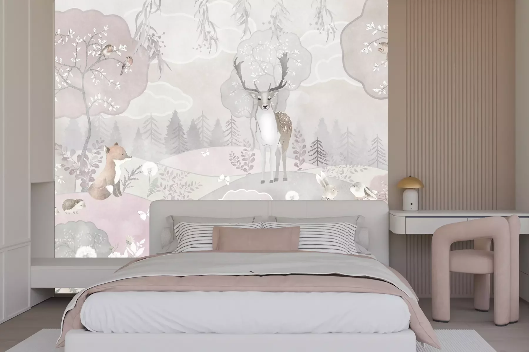 Het materiaal Premium+ is een gestructureerd vinyl op vlies met een gewicht van 255 g/m², dat kleine oneffenheden in de muur effectief camoufleert. De subtiele structuur van fijn zand geeft het oppervlak een exclusieve uitstraling, terwijl de halfmatte afwerking de diepte van de kleuren benadrukt. Het materiaal is dampdoorlatend, waardoor het ook in de keuken en badkamer kan worden gebruikt. De maximale breedte van één baan bedraagt 100 cm – bij grotere afmetingen wordt het fotobehang in meerdere gelijke banen verdeeld. De lijm wordt direct op de muur aangebracht en het behang wordt rand-aan-rand geplakt, wat zorgt voor een esthetisch resultaat zonder zichtbare naden. Het oppervlak kan gemakkelijk worden schoongemaakt door het voorzichtig af te nemen met een vochtige doek.