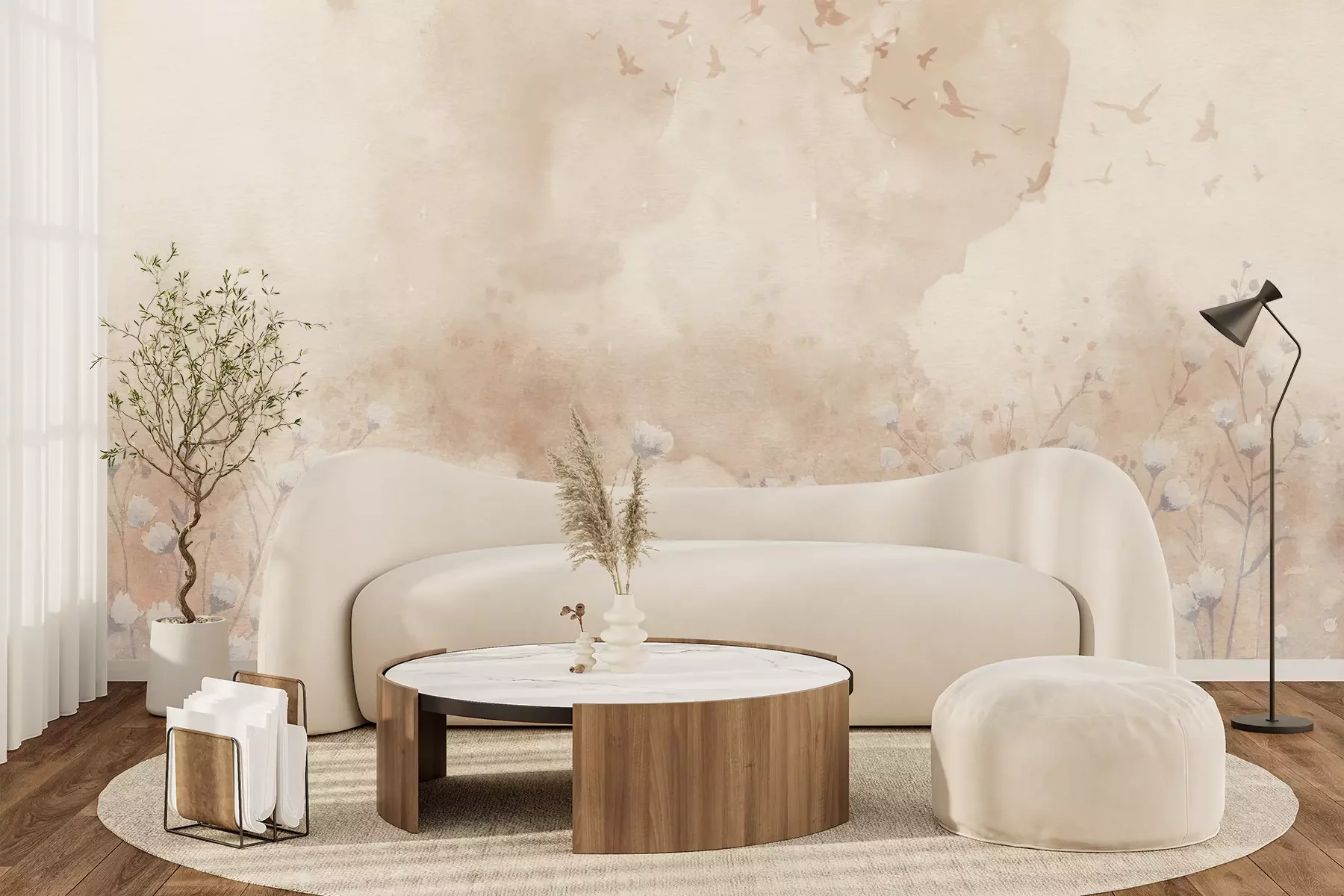 Het materiaal Premium+ is een gestructureerd vinyl op vlies met een gewicht van 255 g/m², dat kleine oneffenheden in de muur effectief camoufleert. De subtiele structuur van fijn zand geeft het oppervlak een exclusieve uitstraling, terwijl de halfmatte afwerking de diepte van de kleuren benadrukt. Het materiaal is dampdoorlatend, waardoor het ook in de keuken en badkamer kan worden gebruikt. De maximale breedte van één baan bedraagt 100 cm – bij grotere afmetingen wordt het fotobehang in meerdere gelijke banen verdeeld. De lijm wordt direct op de muur aangebracht en het behang wordt rand-aan-rand geplakt, wat zorgt voor een esthetisch resultaat zonder zichtbare naden. Het oppervlak kan gemakkelijk worden schoongemaakt door het voorzichtig af te nemen met een vochtige doek.