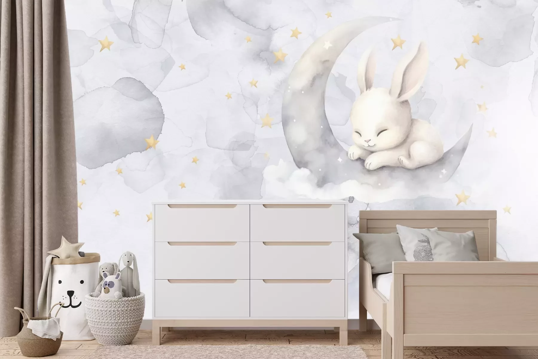 Het materiaal Premium+ is een gestructureerd vinyl op vlies met een gewicht van 255 g/m², dat kleine oneffenheden in de muur effectief camoufleert. De subtiele structuur van fijn zand geeft het oppervlak een exclusieve uitstraling, terwijl de halfmatte afwerking de diepte van de kleuren benadrukt. Het materiaal is dampdoorlatend, waardoor het ook in de keuken en badkamer kan worden gebruikt. De maximale breedte van één baan bedraagt 100 cm – bij grotere afmetingen wordt het fotobehang in meerdere gelijke banen verdeeld. De lijm wordt direct op de muur aangebracht en het behang wordt rand-aan-rand geplakt, wat zorgt voor een esthetisch resultaat zonder zichtbare naden. Het oppervlak kan gemakkelijk worden schoongemaakt door het voorzichtig af te nemen met een vochtige doek.
